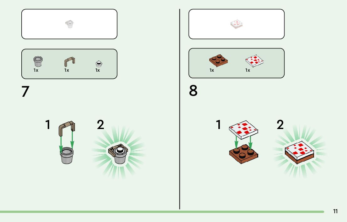 The assembly guide is prepared in a very understandable way for children and adult LEGO enthusiasts. A total of 124 picture galleries are shown, explaining the step-by-step construction stages for 2 different structures.