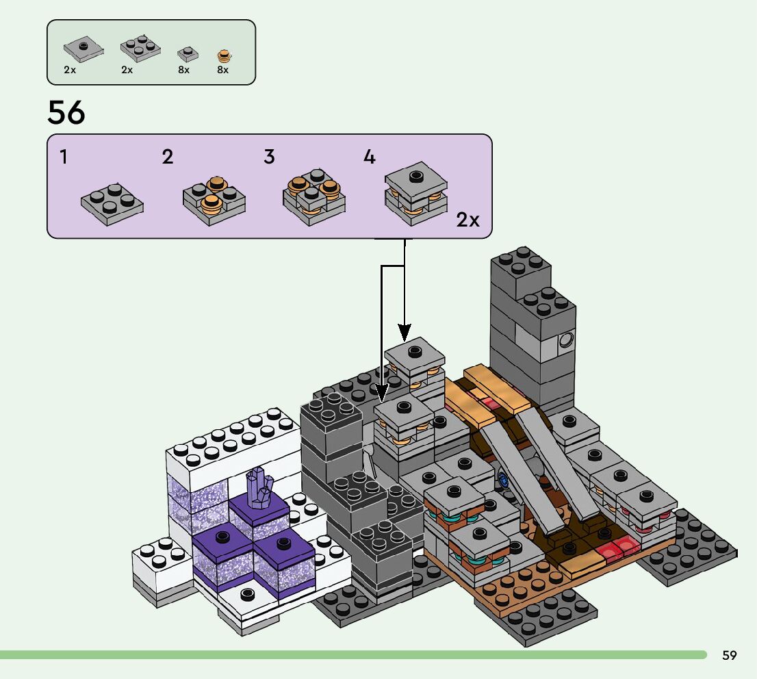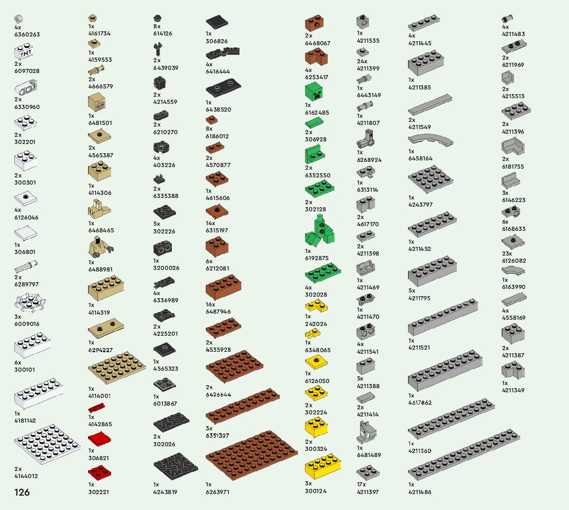 The assembly guide is prepared in a very understandable way for children and adult LEGO enthusiasts. A total of 128 picture galleries are shown, explaining the step-by-step construction stages for 1 different structures.