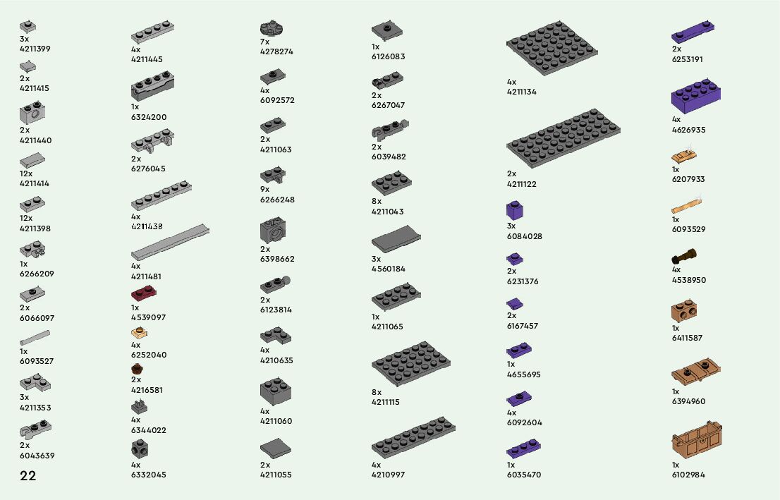 This page shares information about LEGO 21264 The Ender Dragon and End Ship manual, LEGO 21264 PDF instructions, LEGO 21264 The Ender Dragon and End Ship building guide online, How to build 21264 The Ender Dragon and End Ship LEGO.