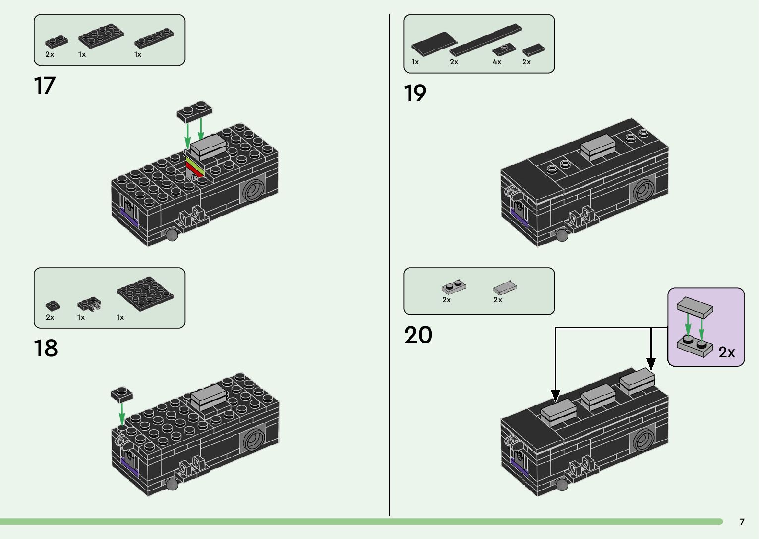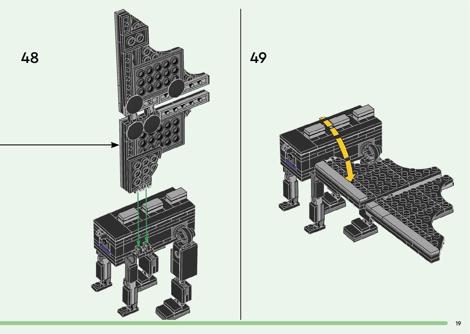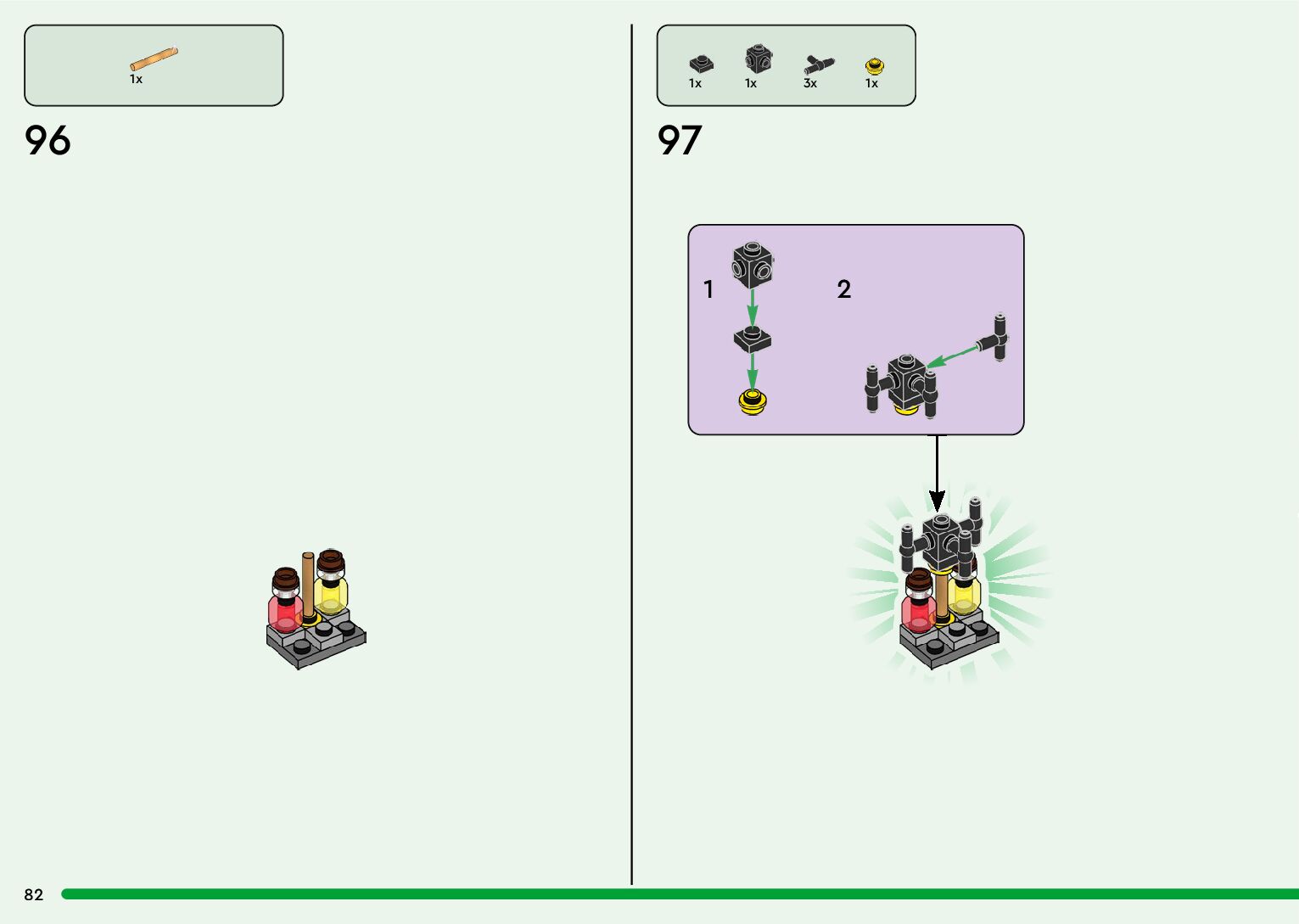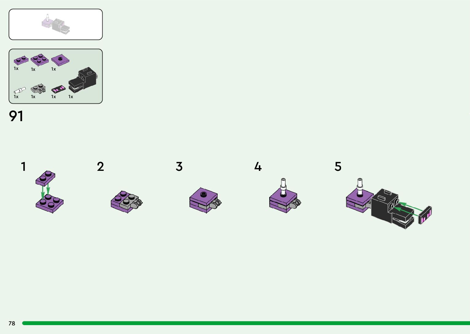 The assembly guide is prepared in a very understandable way for children and adult LEGO enthusiasts. A total of 124 picture galleries are shown, explaining the step-by-step construction stages for 2 different structures.