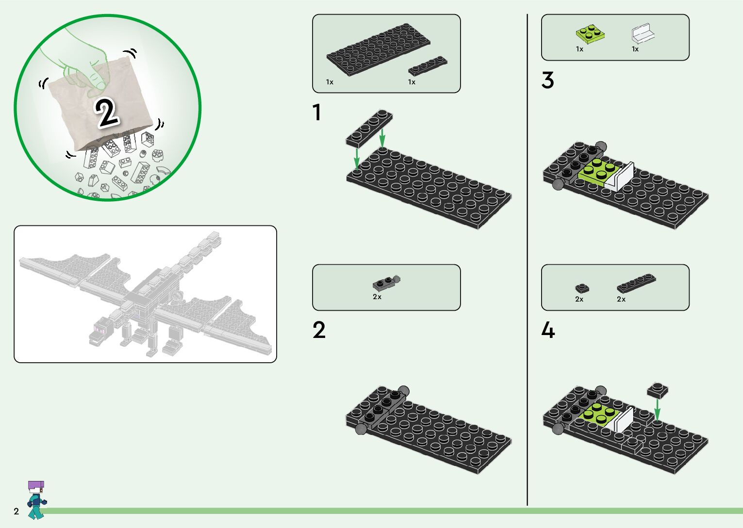 On this page you can find the original construction manual for the LEGO 21264 set. With the assembly manual you can easily learn how to build the 21264 The Ender Dragon and End Ship step by step. The set was released in 2024.