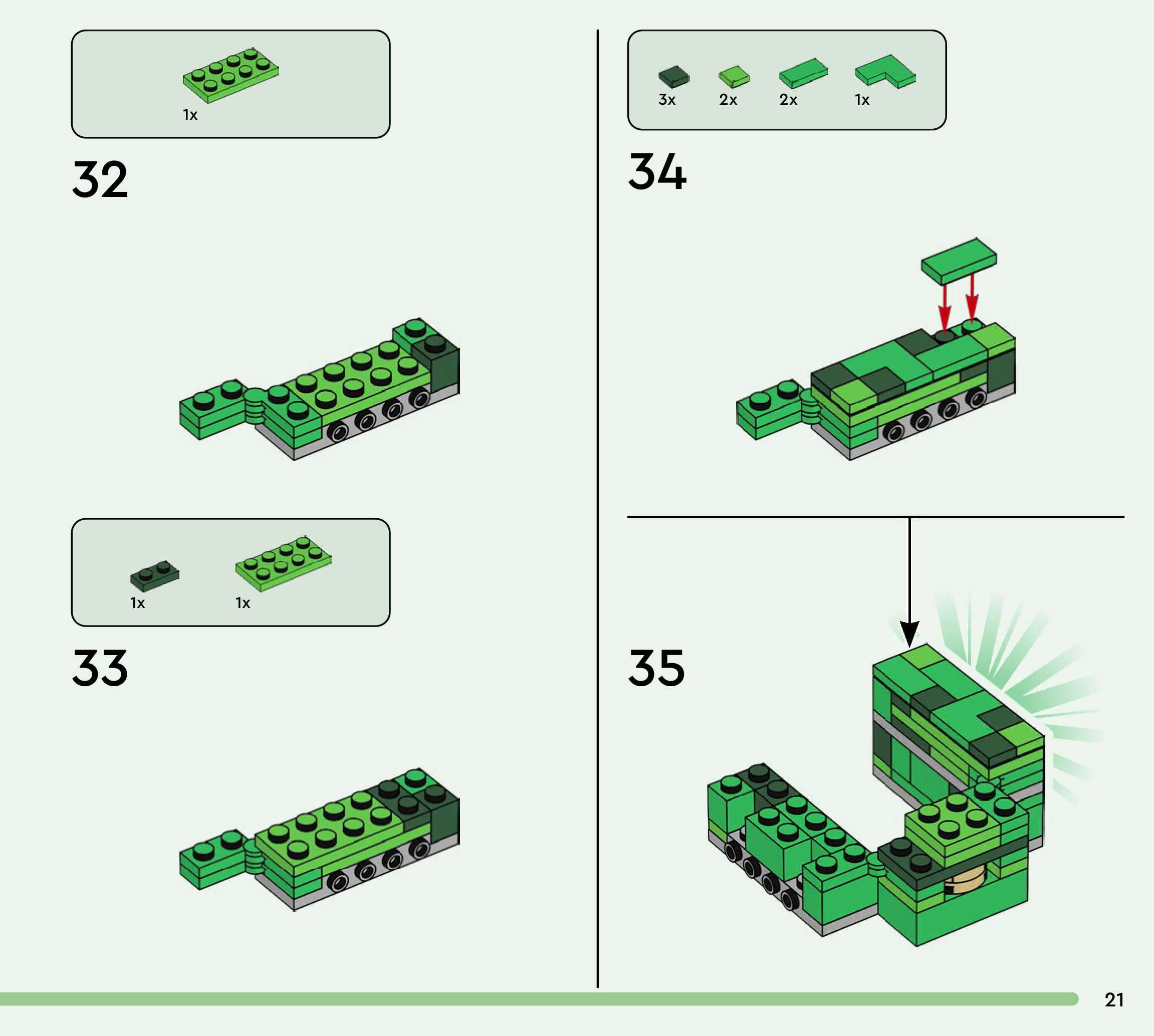 This page shares information about LEGO The Creeper™ manual, LEGO 21276 PDF instructions, LEGO The Creeper™ building guide online, How to build The Creeper™ LEGO.