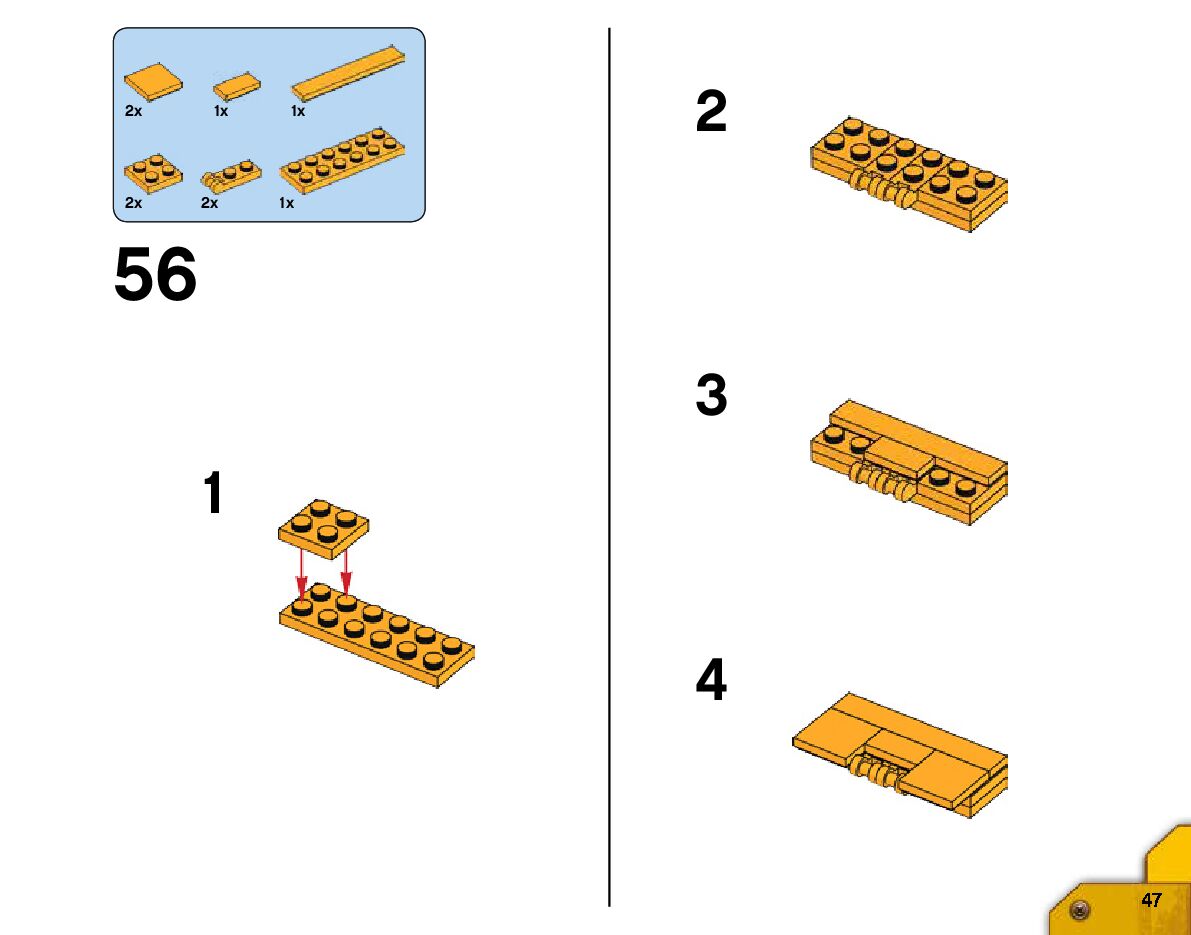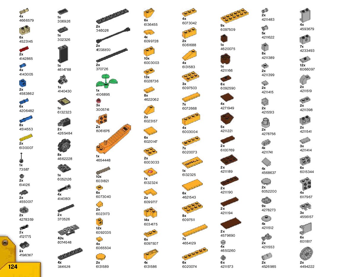 The assembly guide is prepared in a very understandable way for children and adult LEGO enthusiasts. A total of 128 picture galleries are shown, explaining the step-by-step construction stages for 1 different structures.
