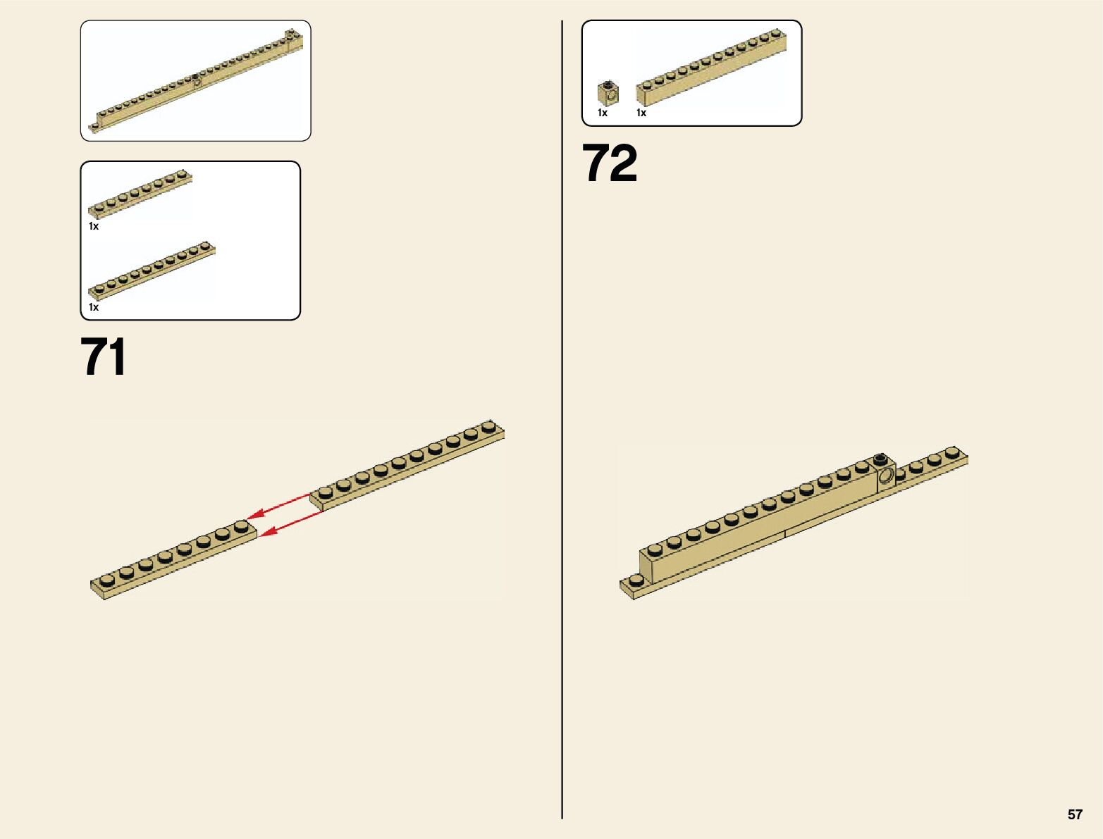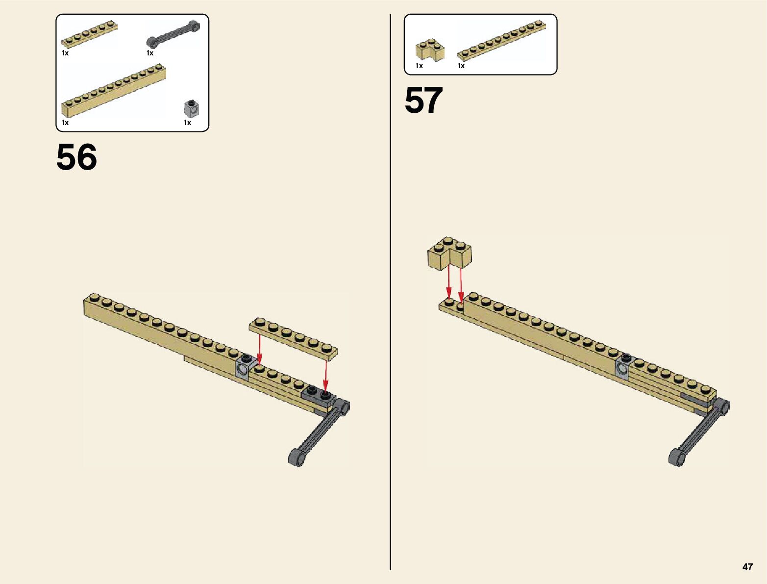 The assembly guide is prepared in a very understandable way for children and adult LEGO enthusiasts. A total of 140 picture galleries are shown, explaining the step-by-step construction stages for 1 different structures.