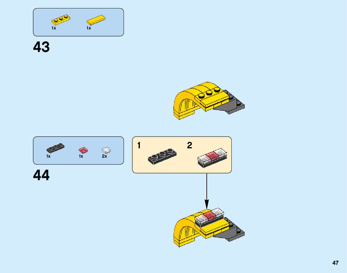 The assembly guide is prepared in a very understandable way for children and adult LEGO enthusiasts. A total of 180 picture galleries are shown, explaining the step-by-step construction stages for 1 different structures.