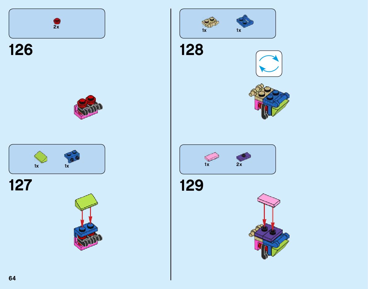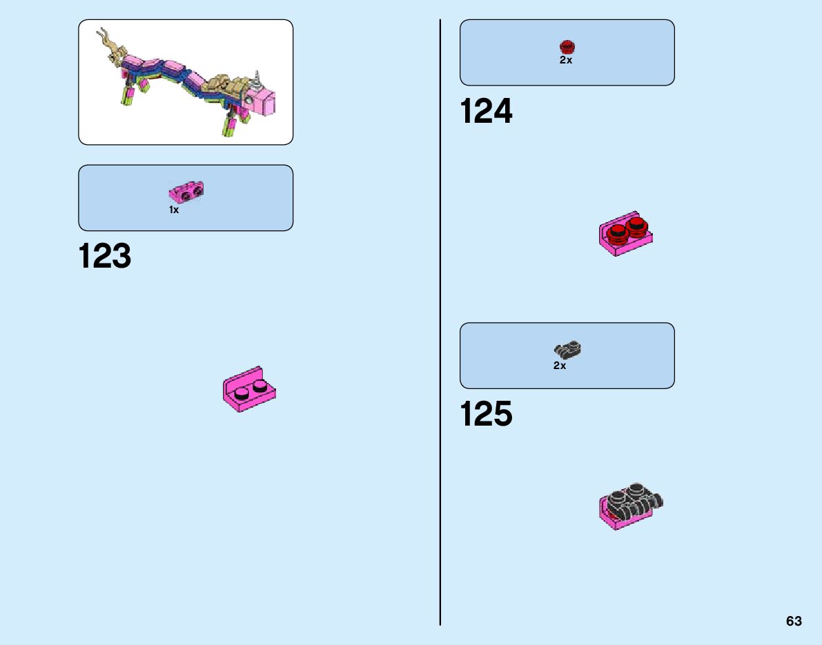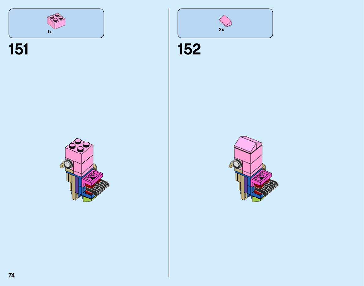 The assembly guide is prepared in a very understandable way for children and adult LEGO enthusiasts. A total of 84 picture galleries are shown, explaining the step-by-step construction stages for 1 different structures.