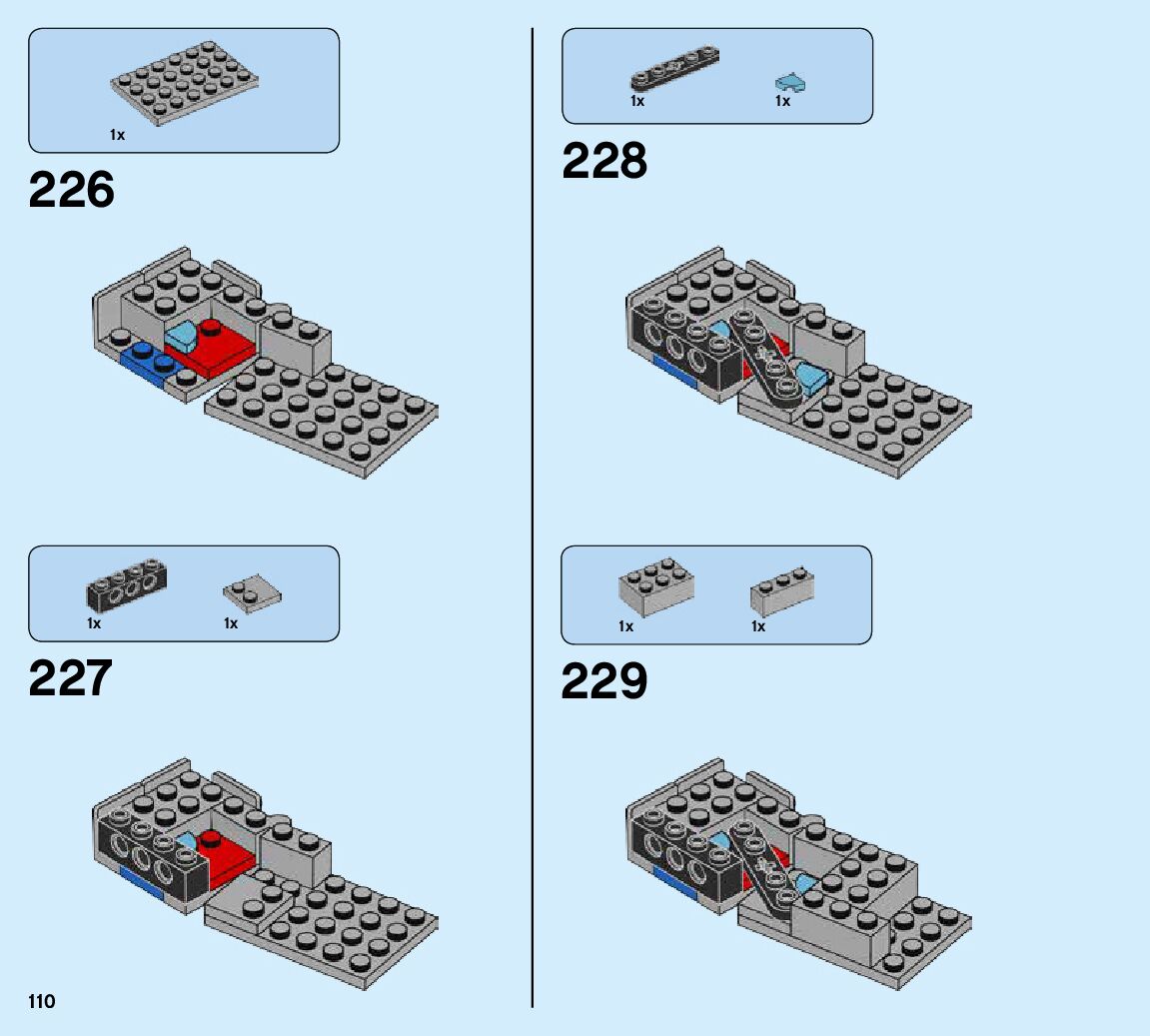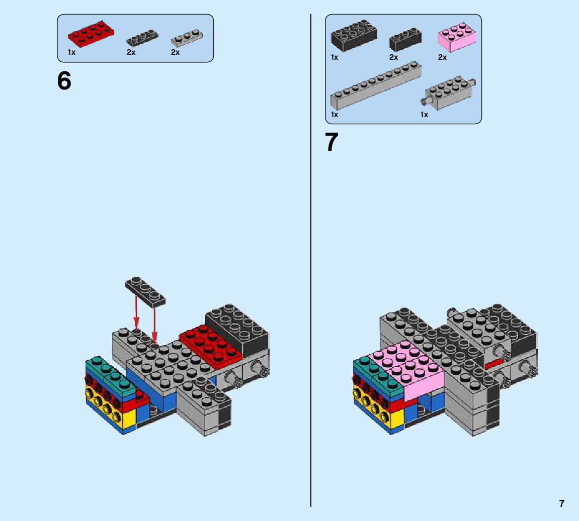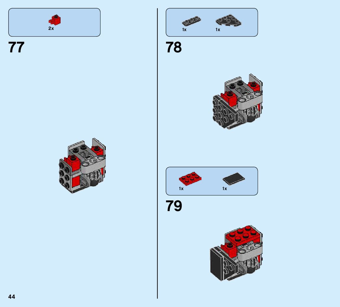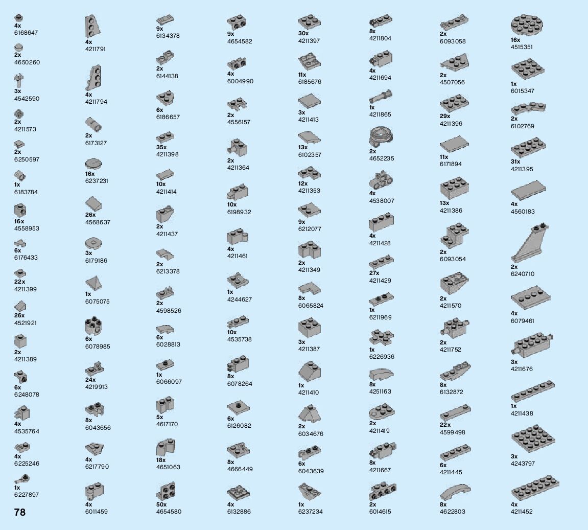 The assembly guide is prepared in a very understandable way for children and adult LEGO enthusiasts. A total of 424 picture galleries are shown, explaining the step-by-step construction stages for 6 different structures.