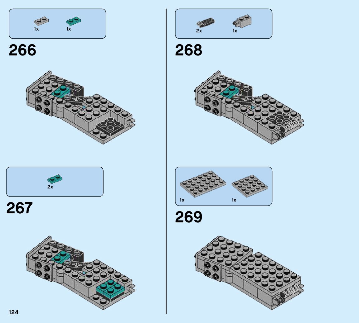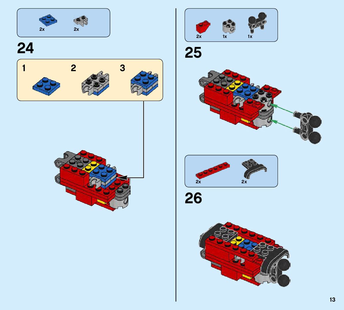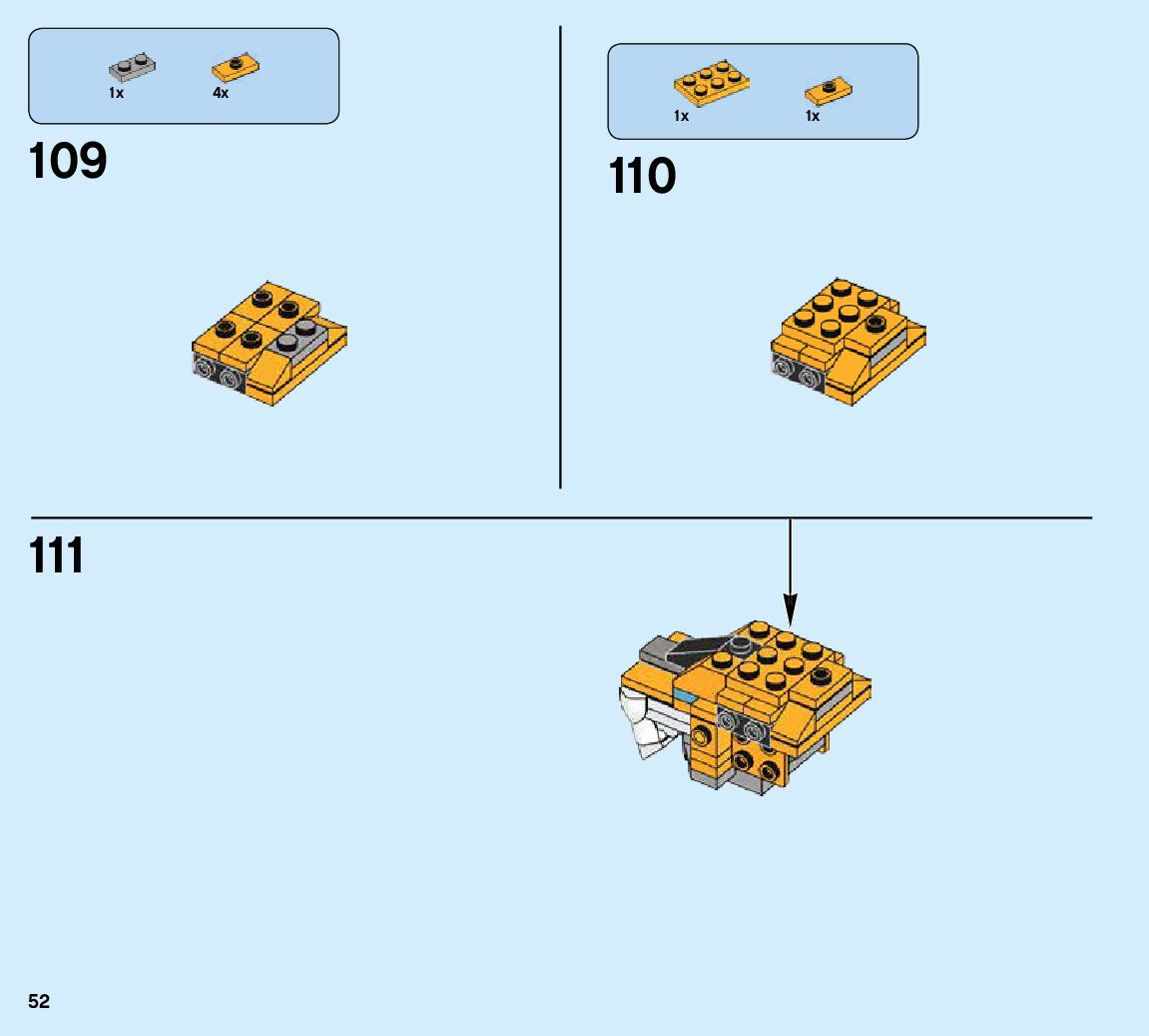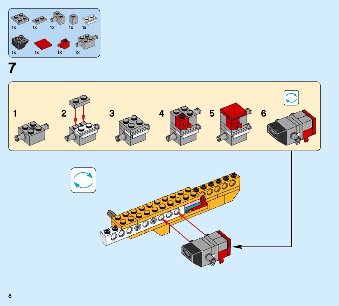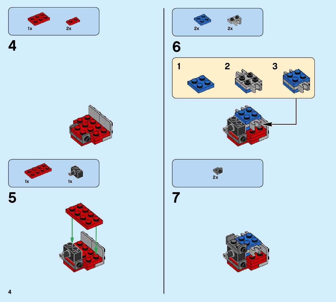 The assembly guide is prepared in a very understandable way for children and adult LEGO enthusiasts. A total of 424 picture galleries are shown, explaining the step-by-step construction stages for 6 different structures.