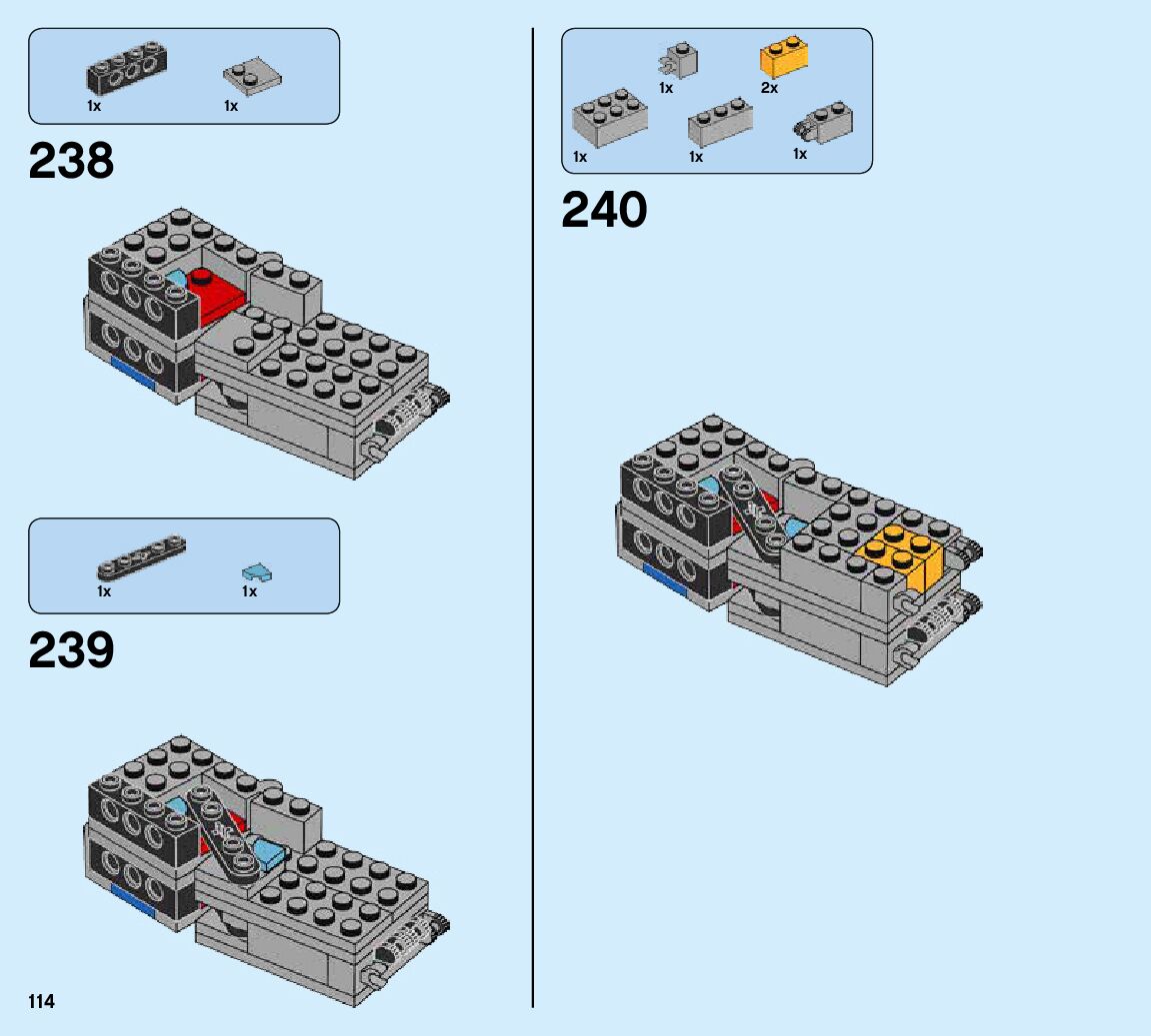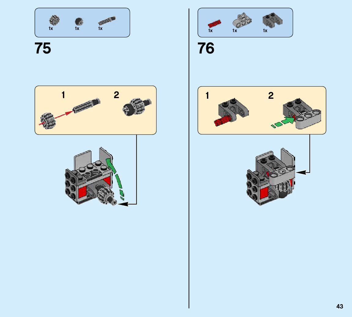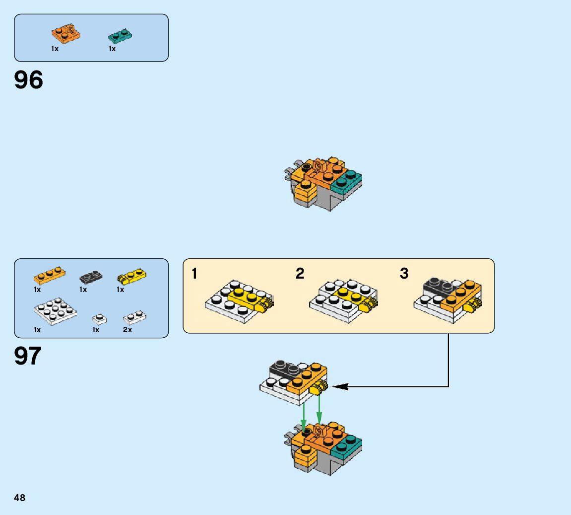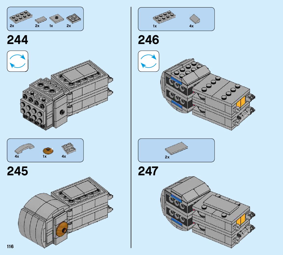 The assembly guide is prepared in a very understandable way for children and adult LEGO enthusiasts. A total of 424 picture galleries are shown, explaining the step-by-step construction stages for 6 different structures.