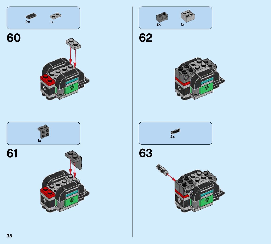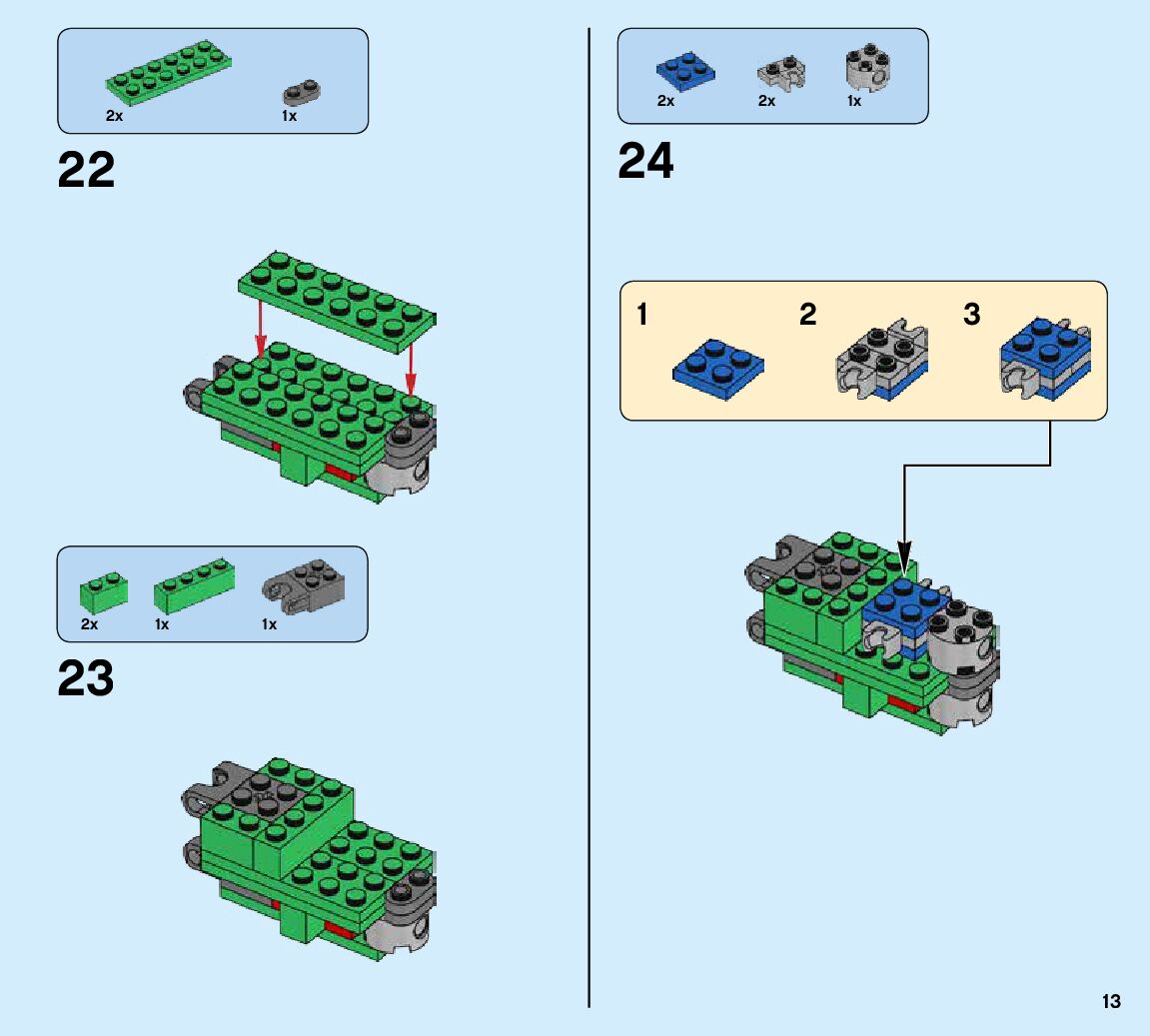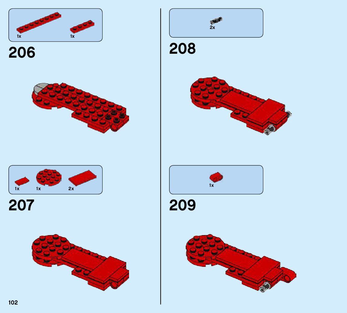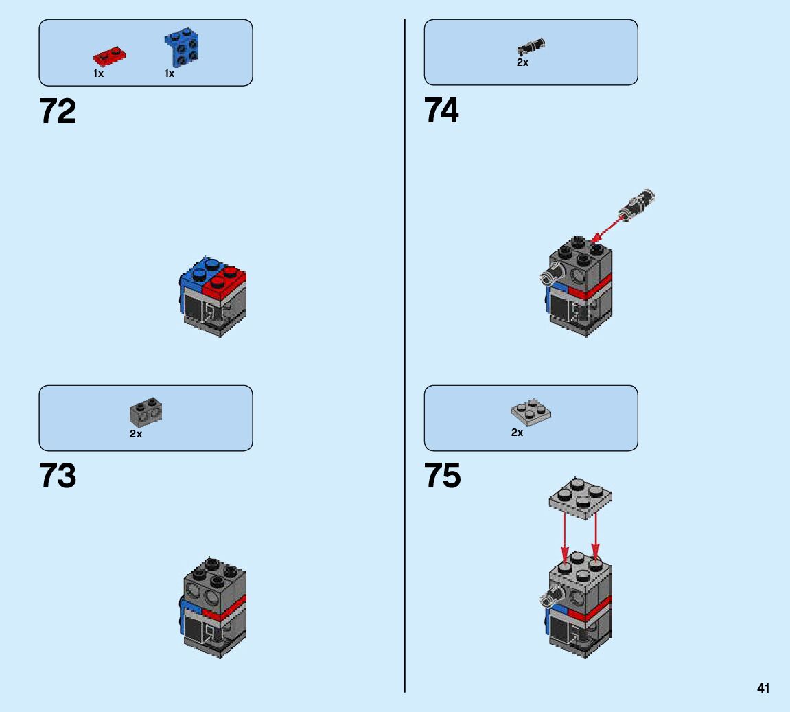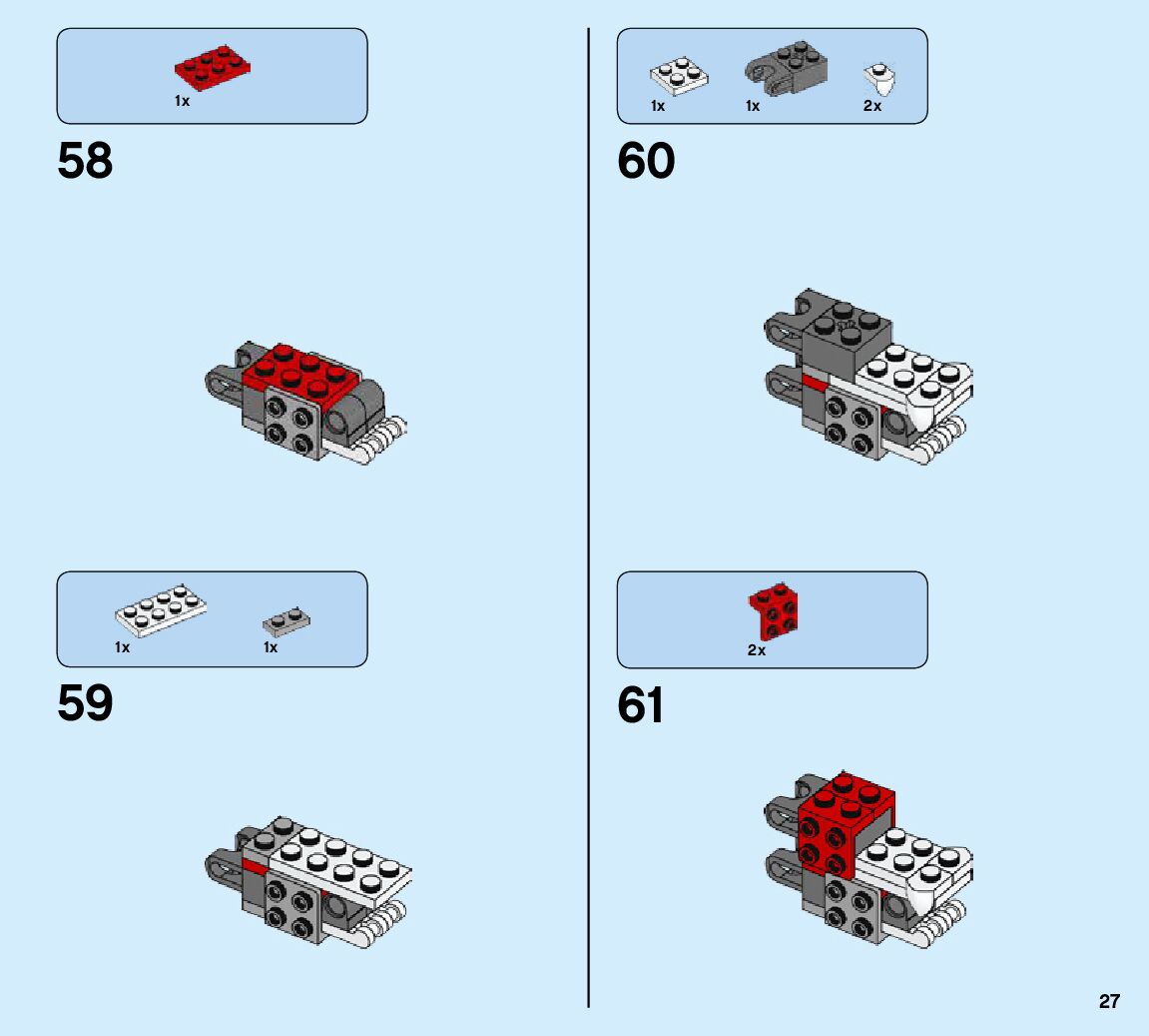 The assembly guide is prepared in a very understandable way for children and adult LEGO enthusiasts. A total of 424 picture galleries are shown, explaining the step-by-step construction stages for 6 different structures.