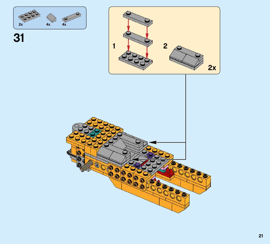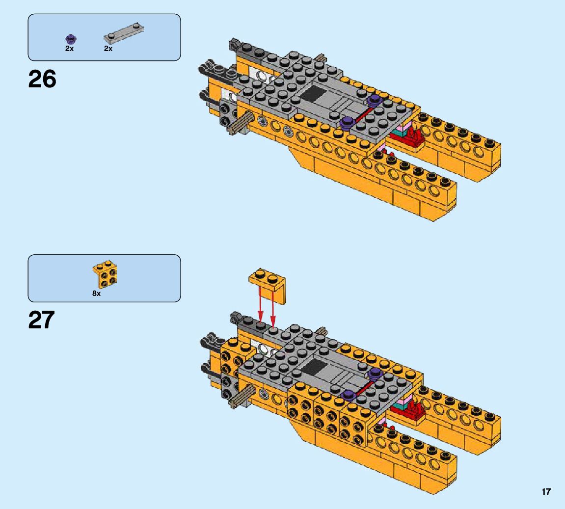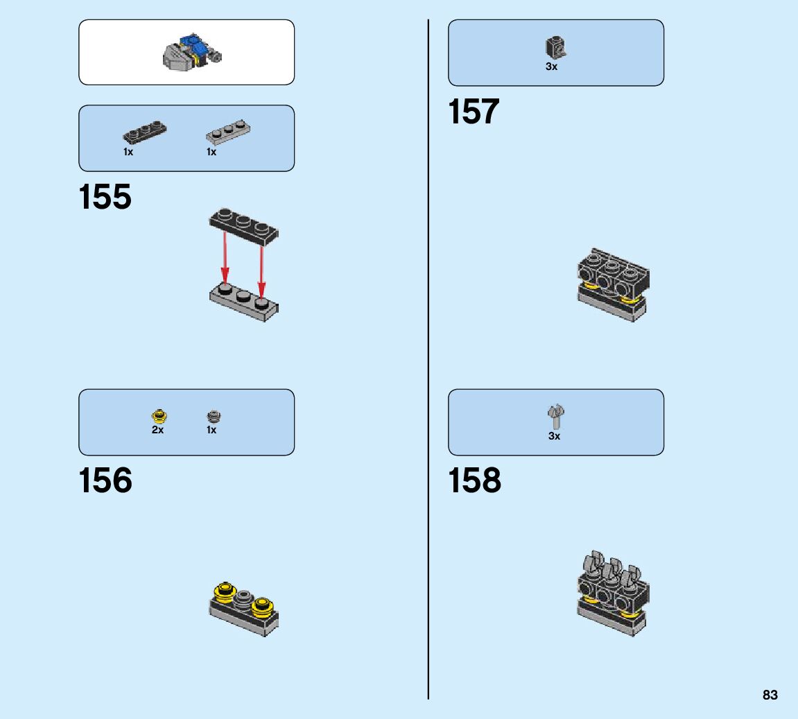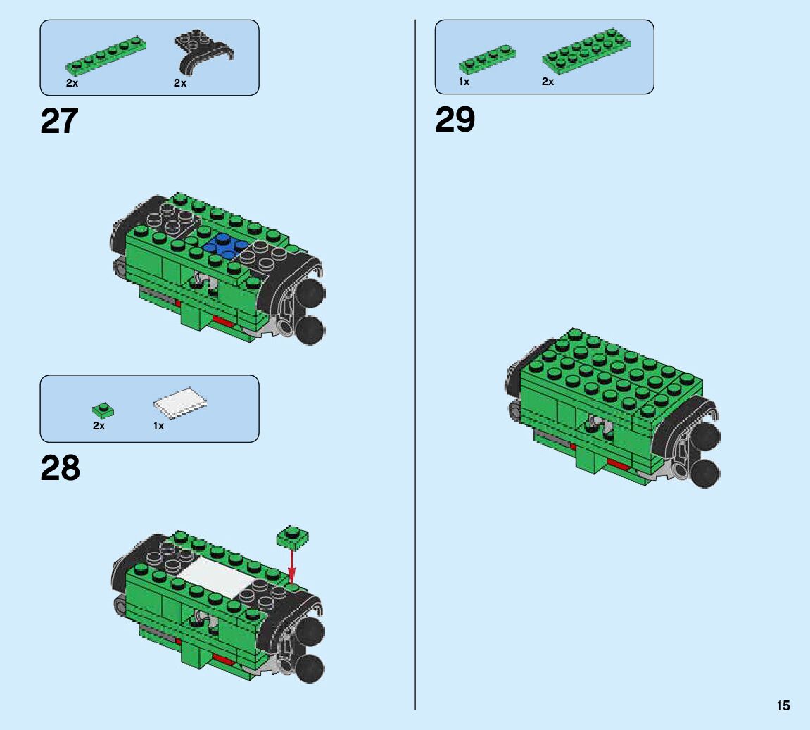 The assembly guide is prepared in a very understandable way for children and adult LEGO enthusiasts. A total of 424 picture galleries are shown, explaining the step-by-step construction stages for 6 different structures.