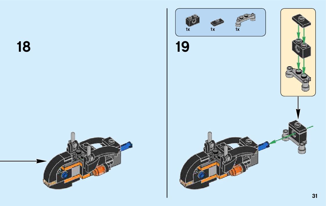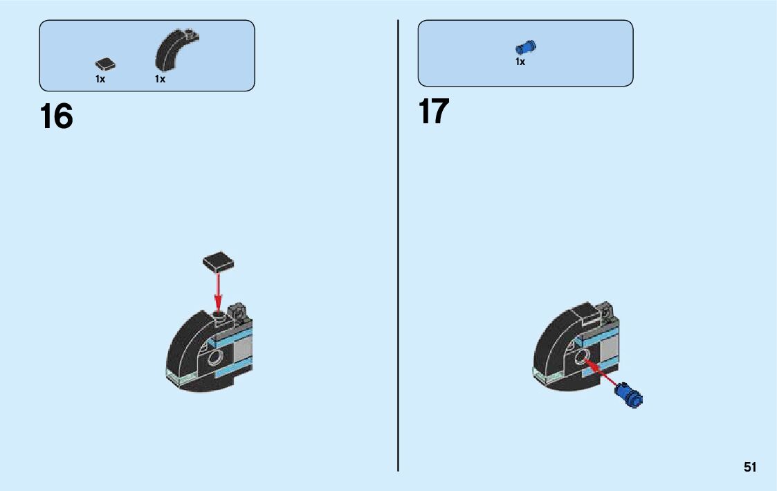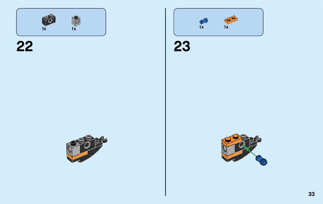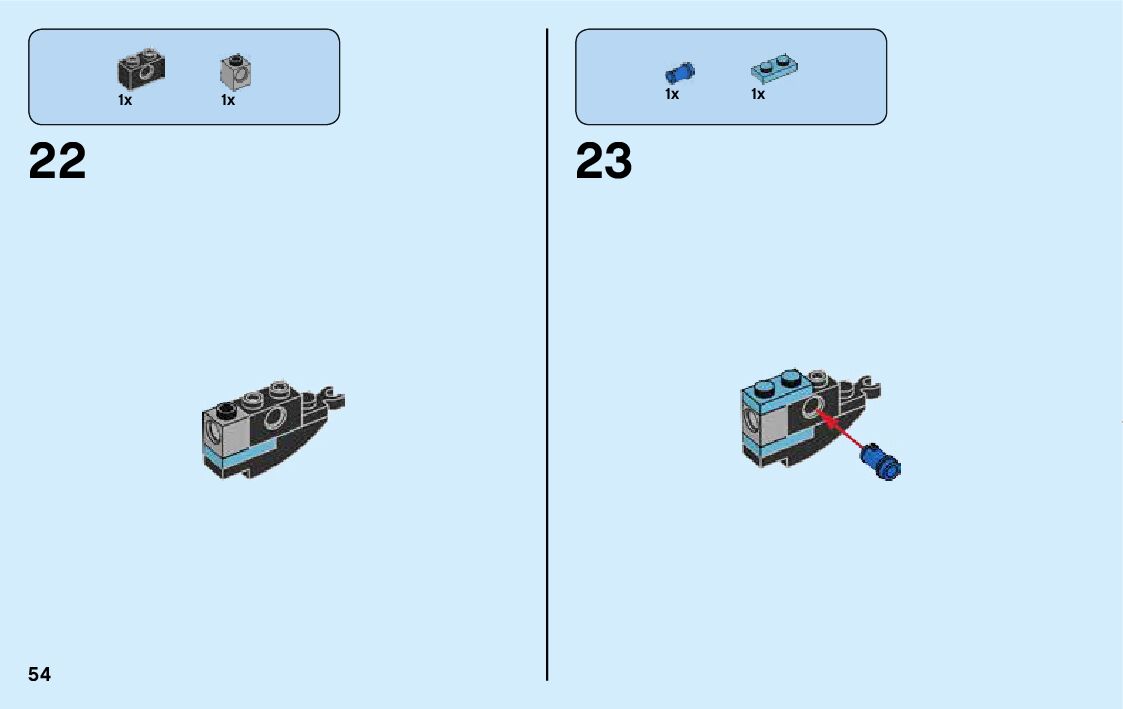 The assembly guide is prepared in a very understandable way for children and adult LEGO enthusiasts. A total of 68 picture galleries are shown, explaining the step-by-step construction stages for 1 different structures.