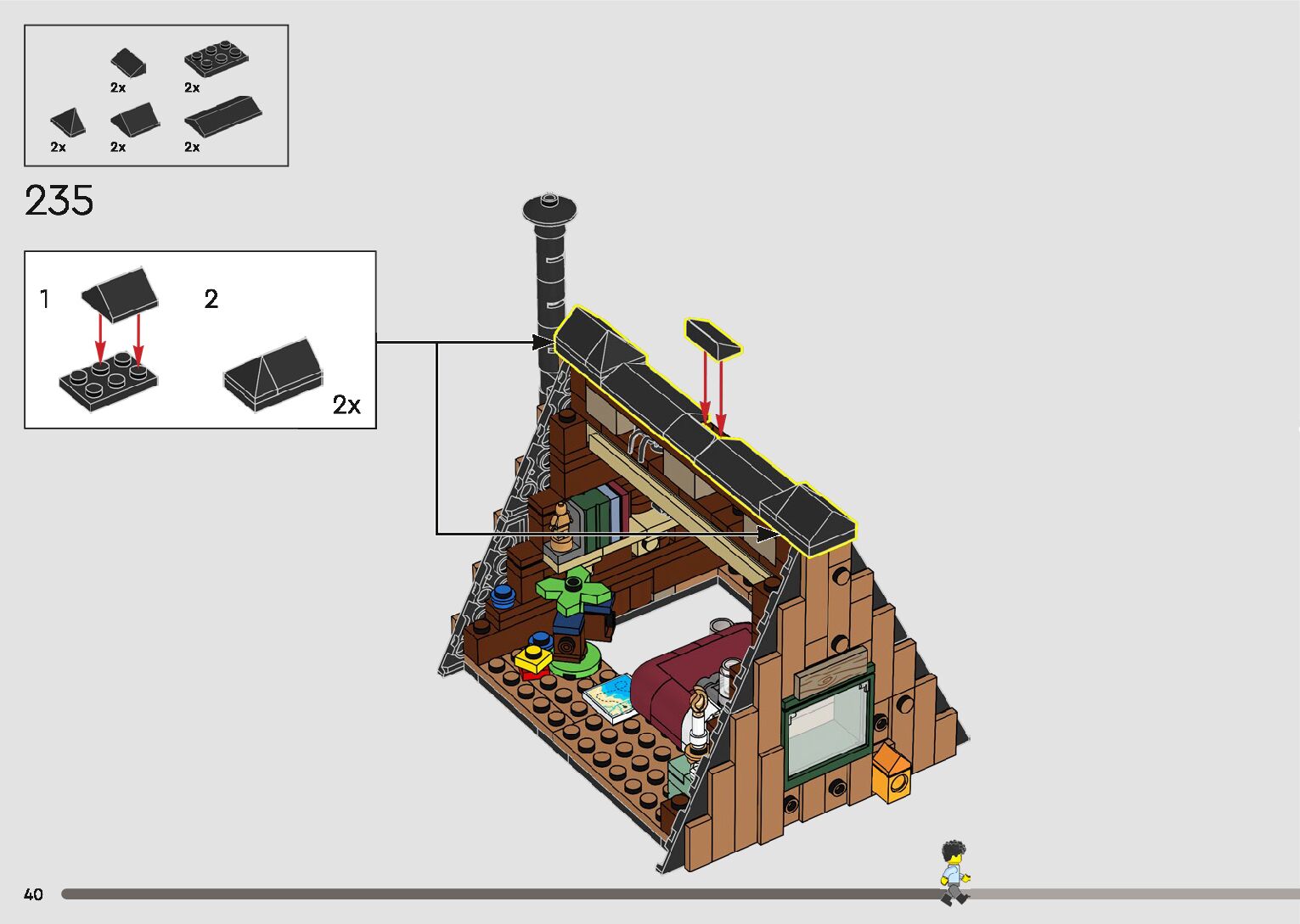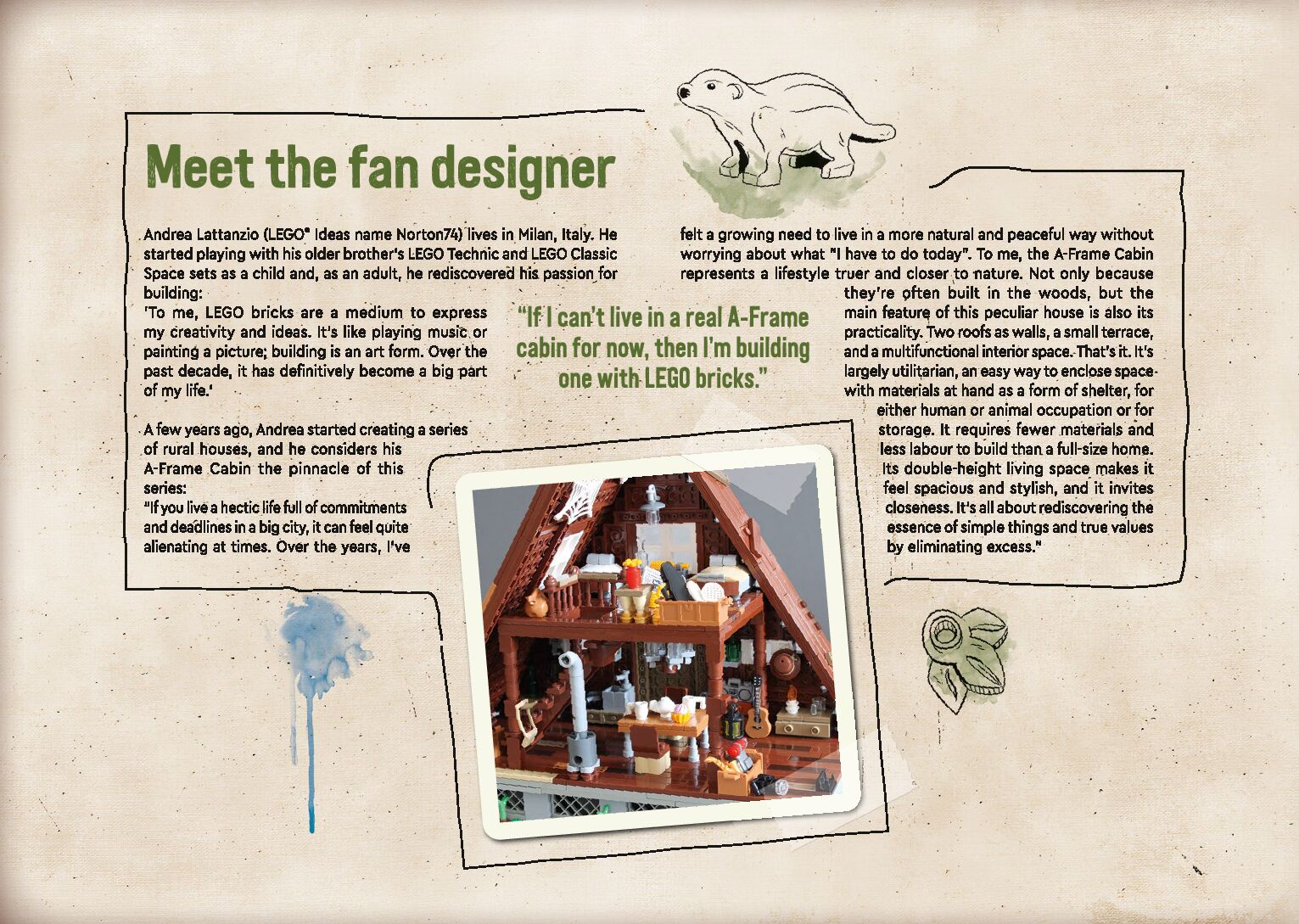 This page shares information about LEGO 21338 A-Frame Cabin manual, LEGO 21338 PDF instructions, LEGO 21338 A-Frame Cabin building guide online, How to build 21338 A-Frame Cabin LEGO.