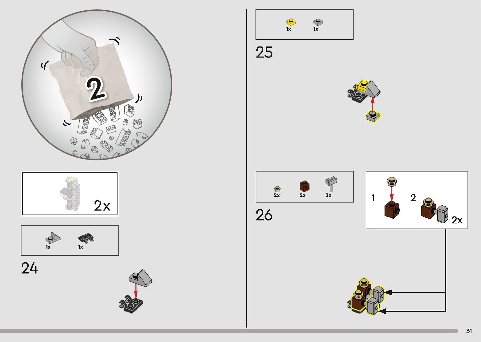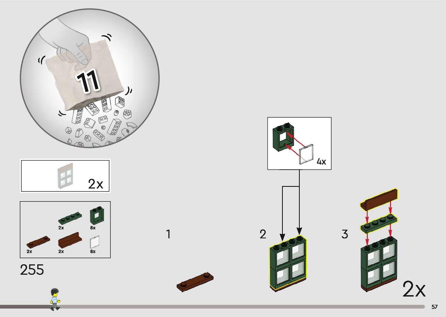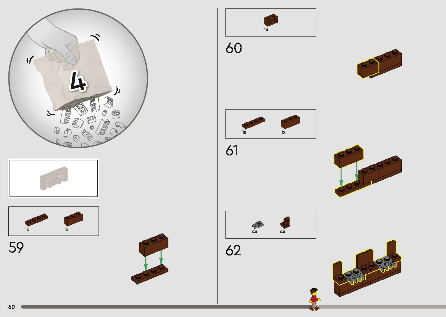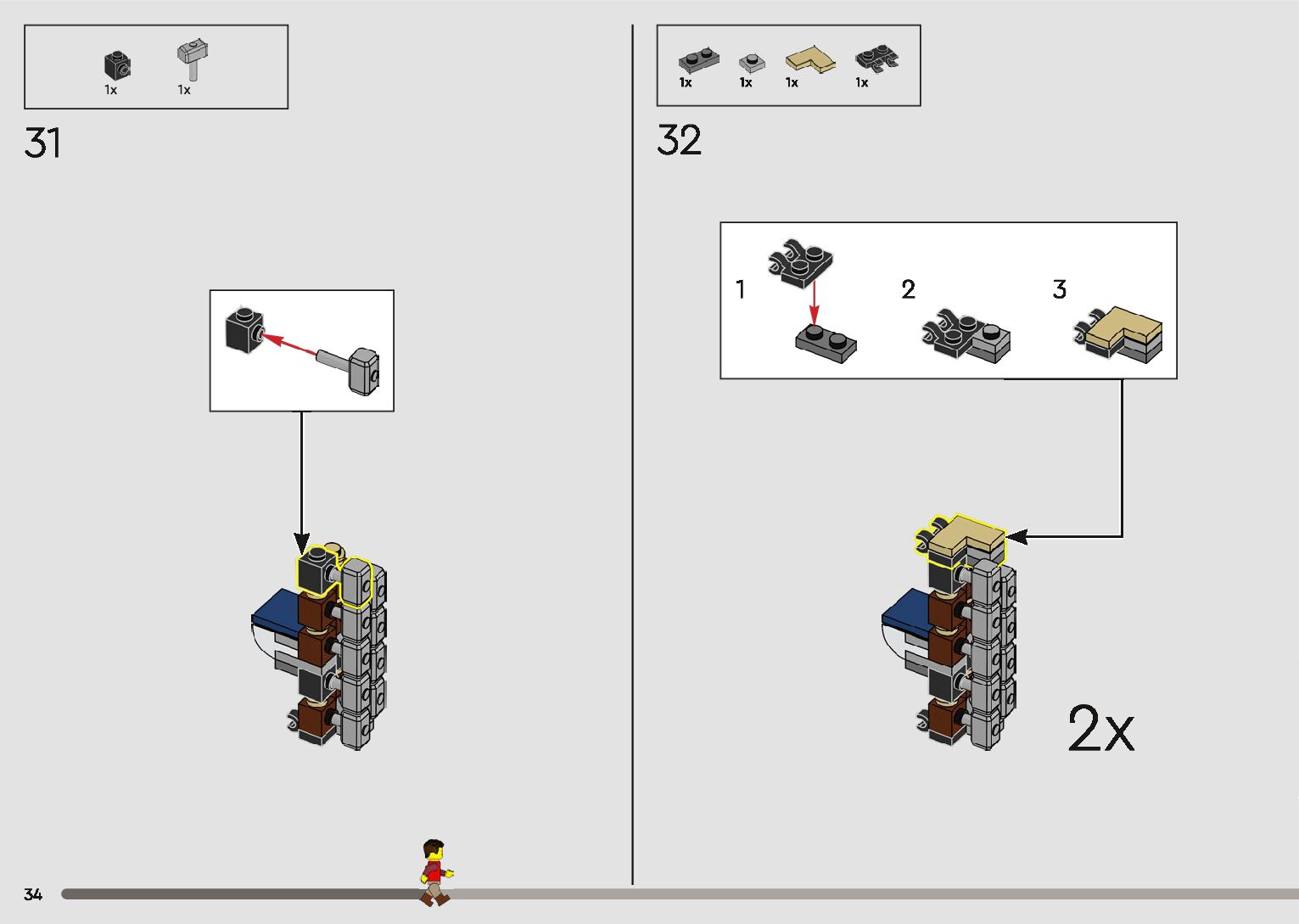 The assembly guide is prepared in a very understandable way for children and adult LEGO enthusiasts. A total of 256 picture galleries are shown, explaining the step-by-step construction stages for 2 different structures.