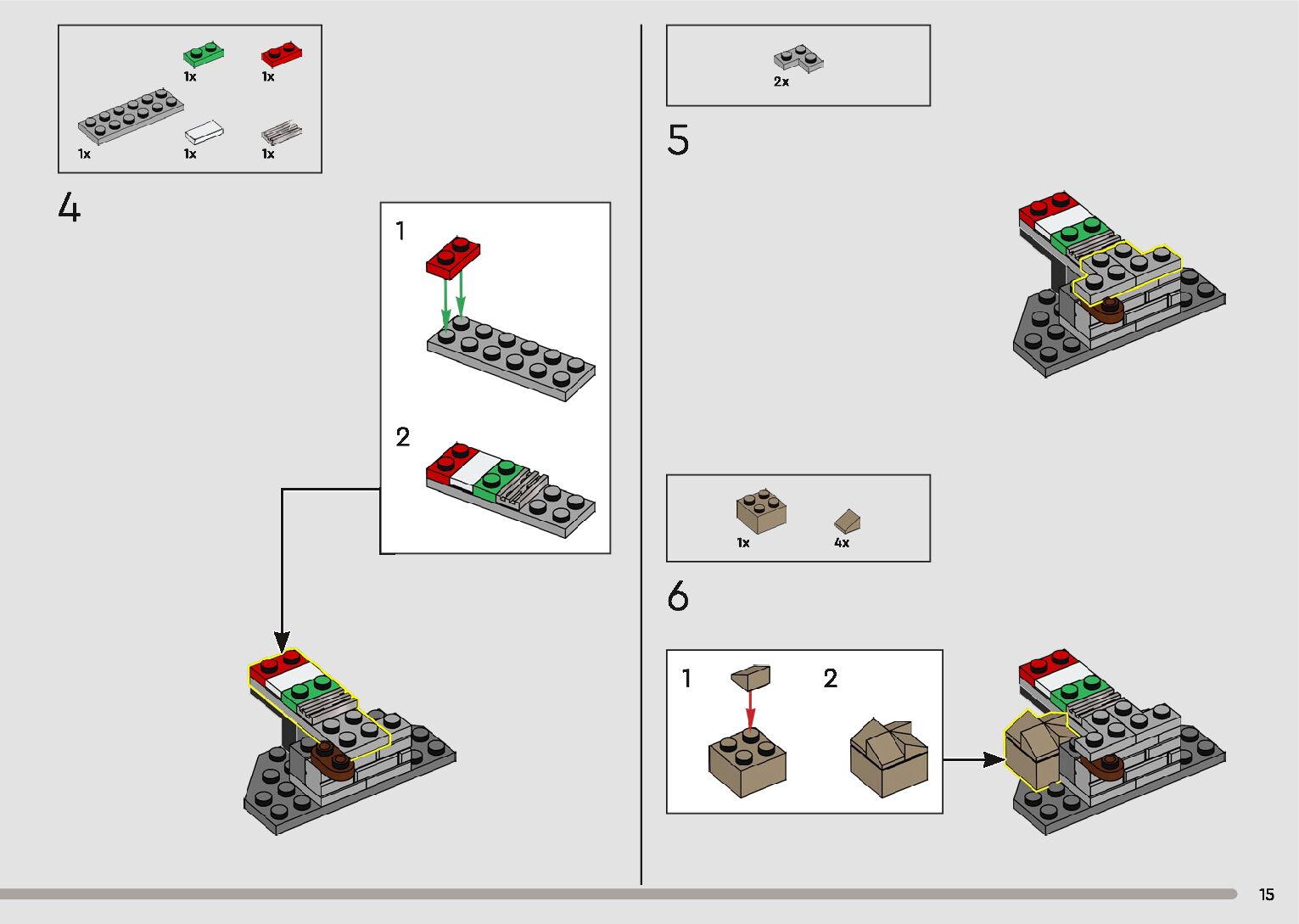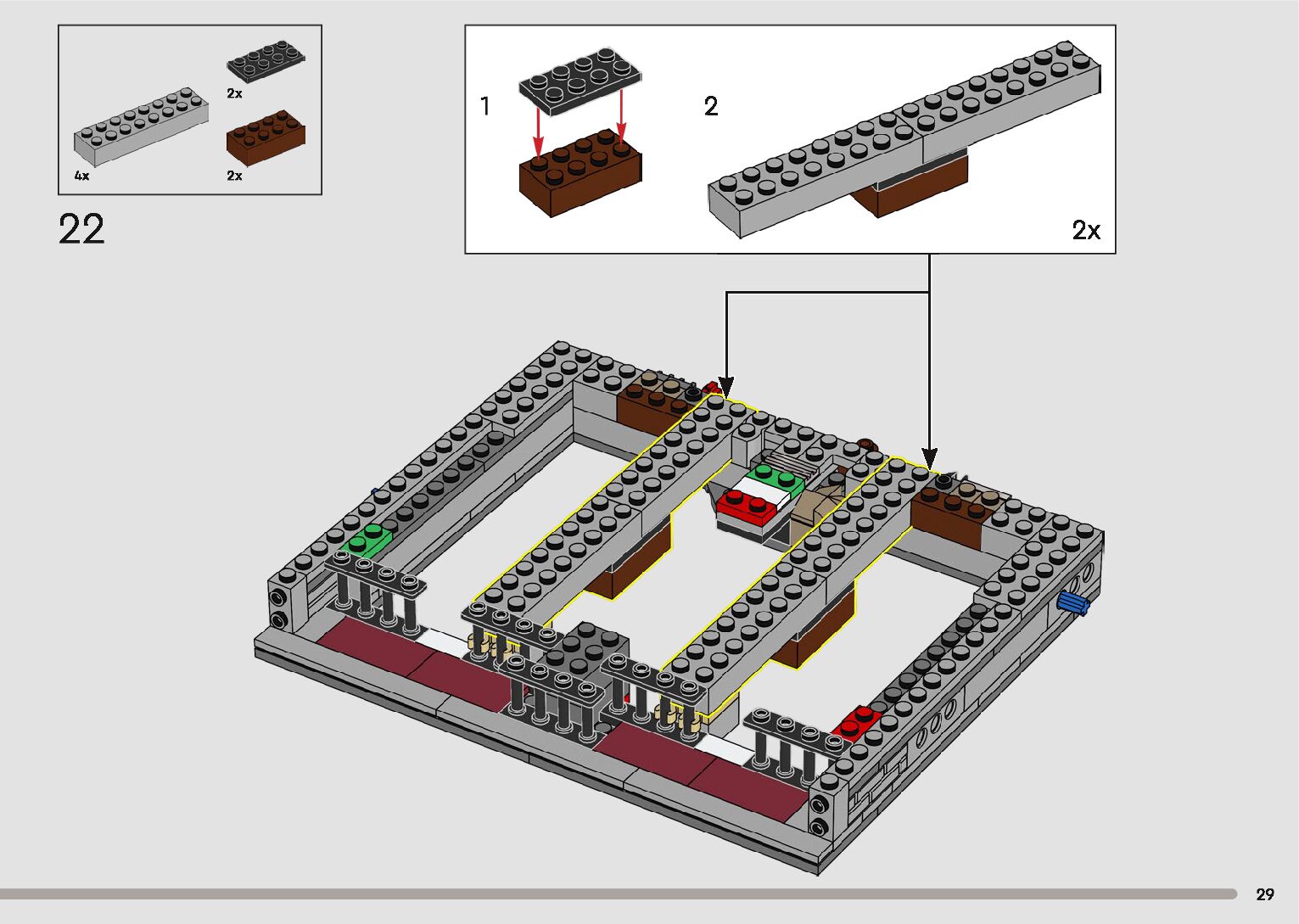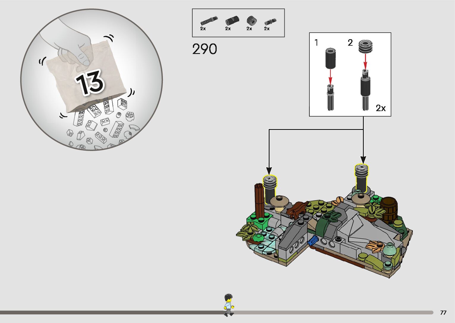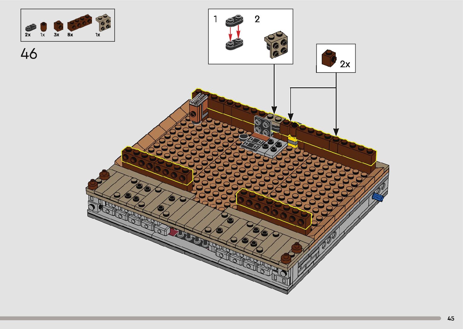 The assembly guide is prepared in a very understandable way for children and adult LEGO enthusiasts. A total of 256 picture galleries are shown, explaining the step-by-step construction stages for 2 different structures.