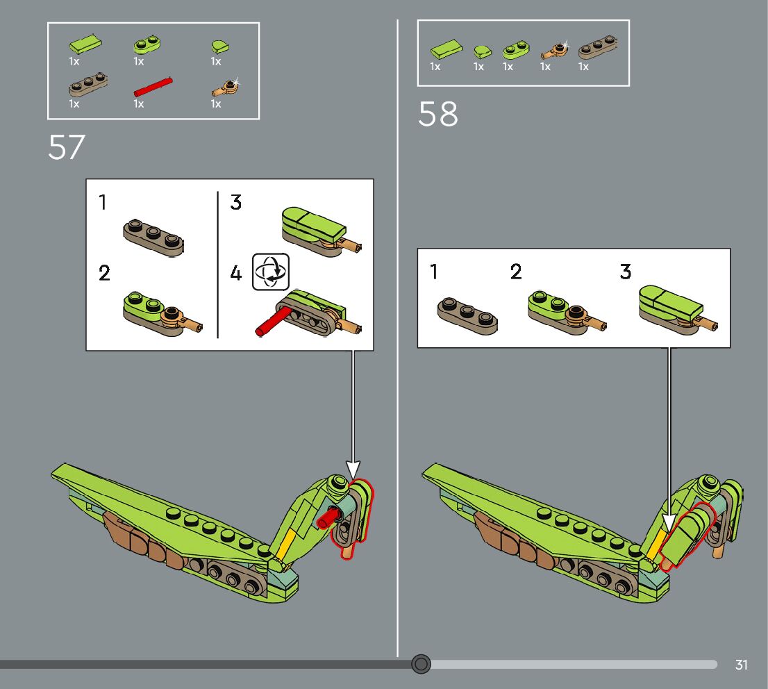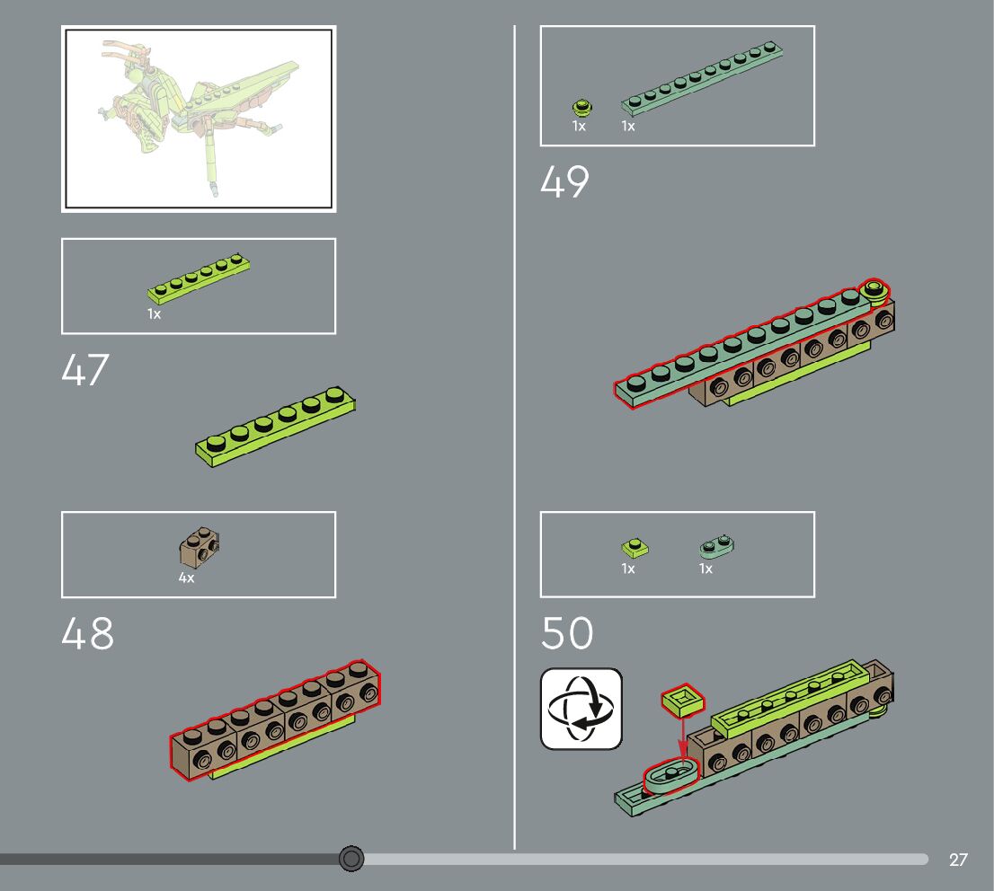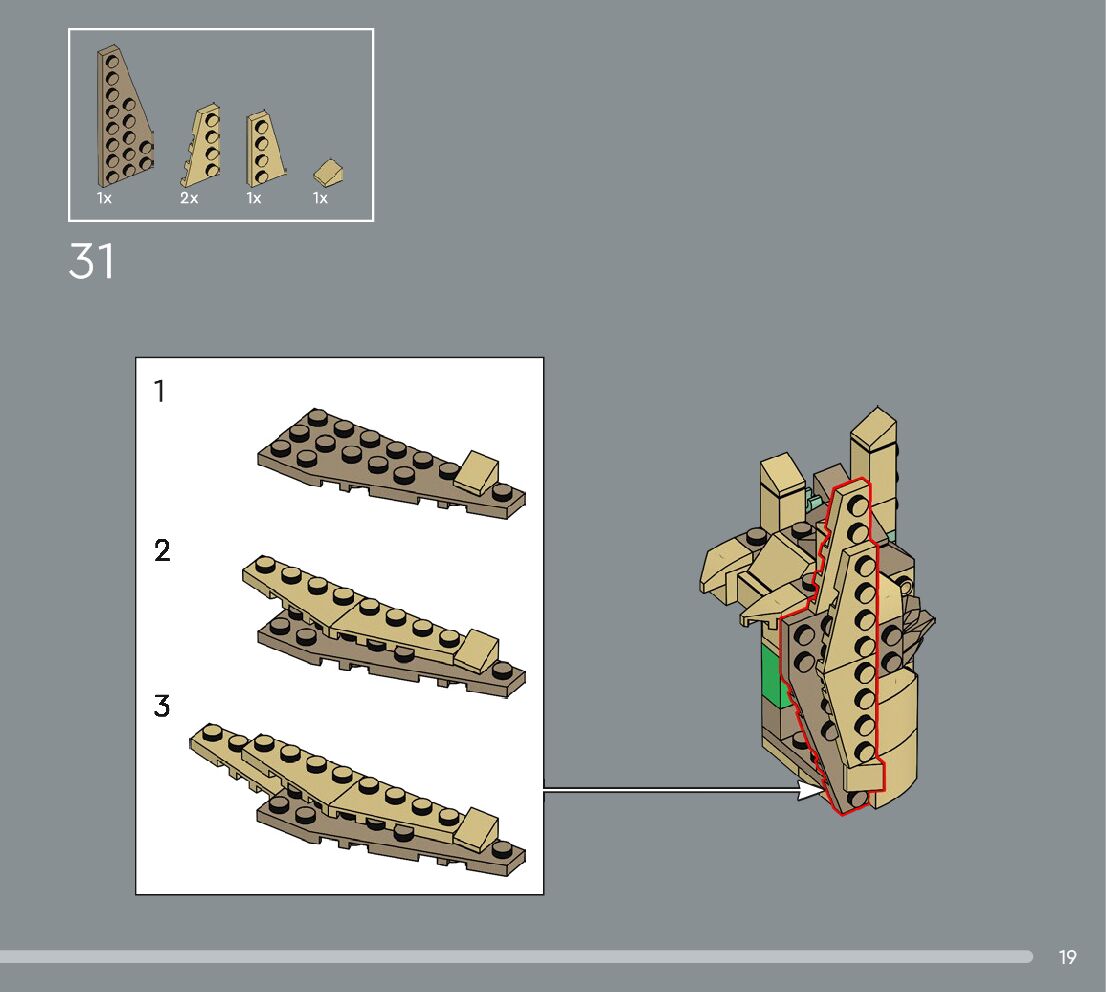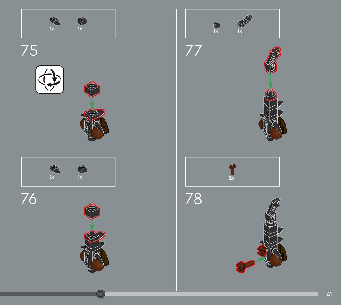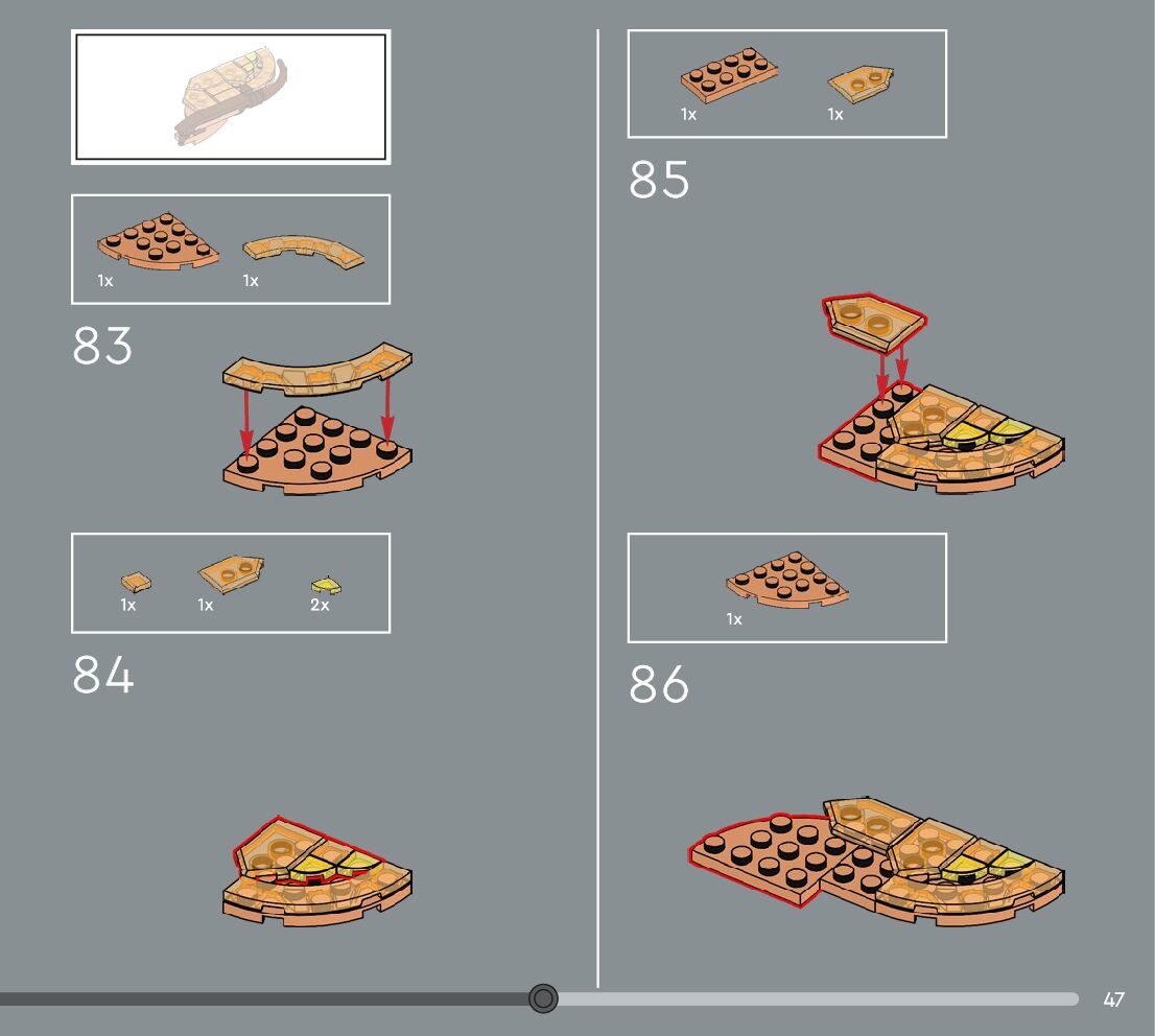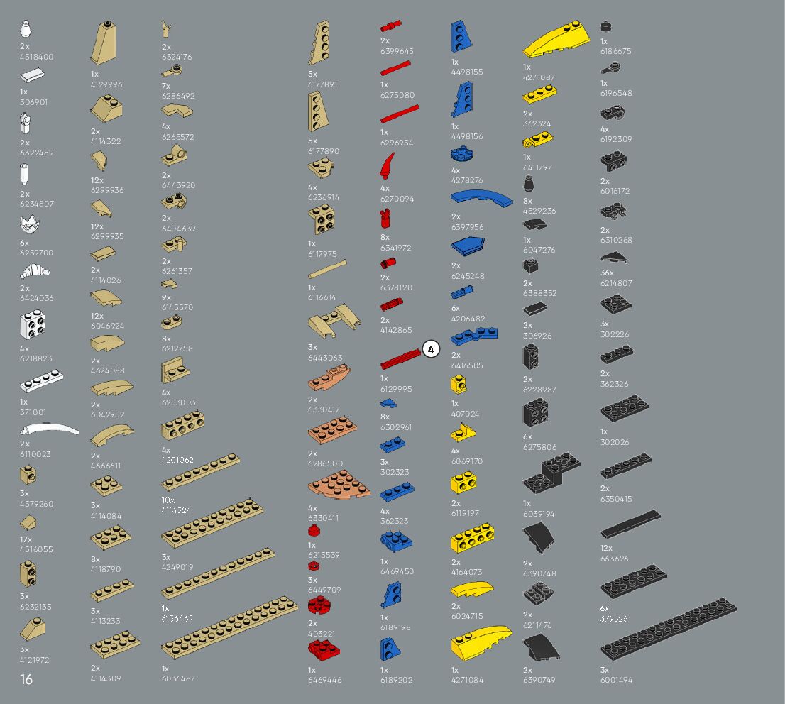 The assembly guide is prepared in a very understandable way for children and adult LEGO enthusiasts. A total of 176 picture galleries are shown, explaining the step-by-step construction stages for 4 different structures.