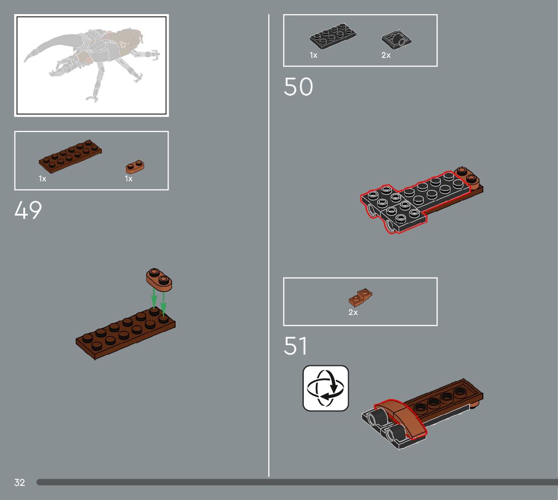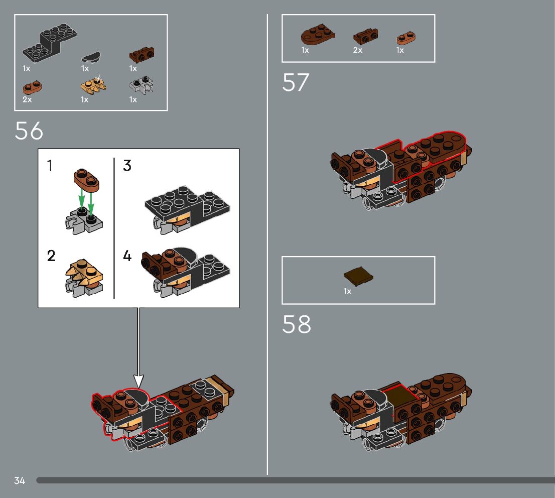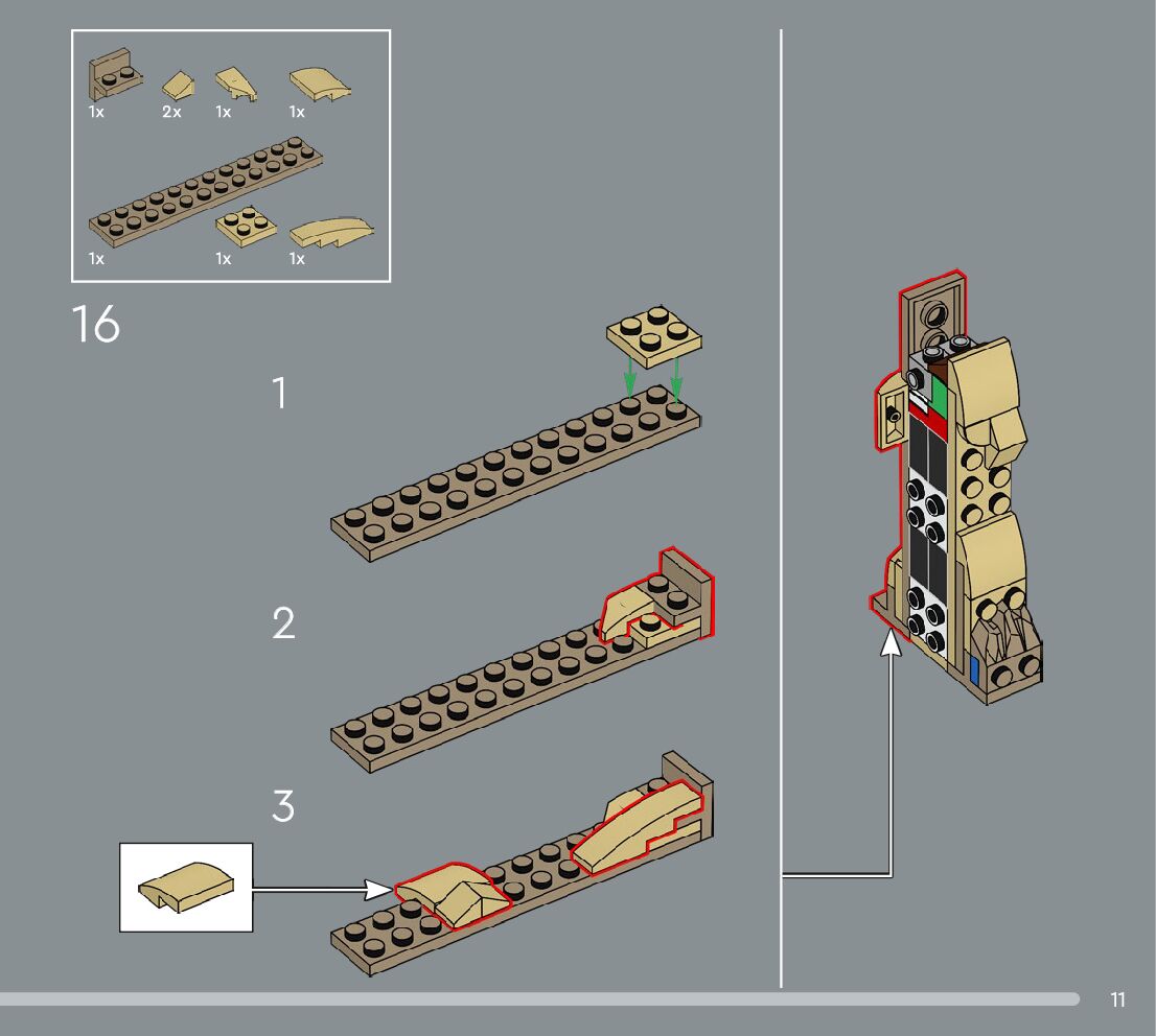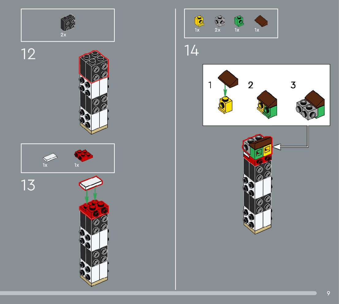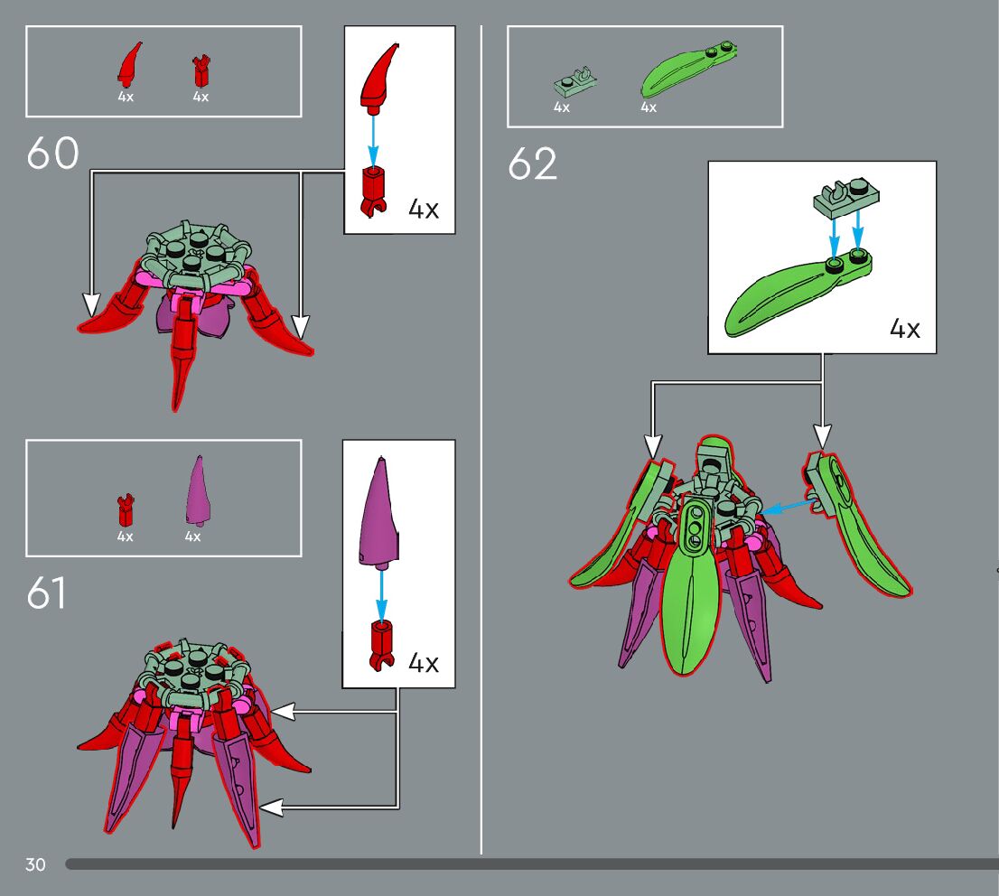 The assembly guide is prepared in a very understandable way for children and adult LEGO enthusiasts. A total of 176 picture galleries are shown, explaining the step-by-step construction stages for 4 different structures.
