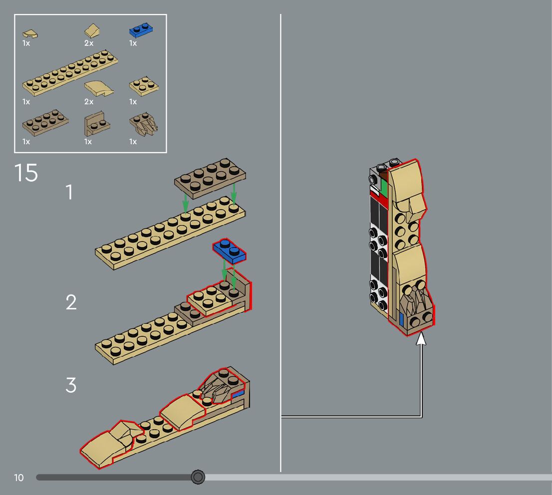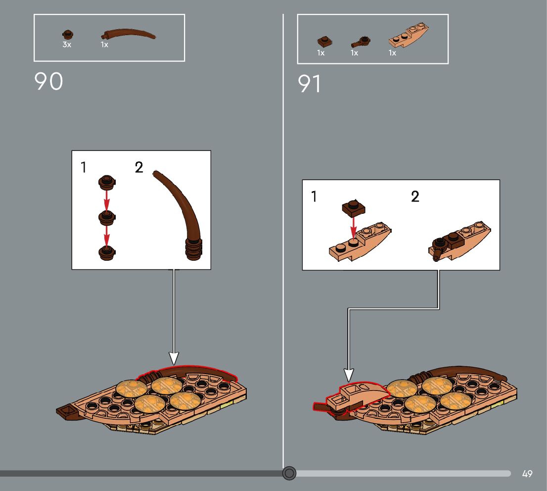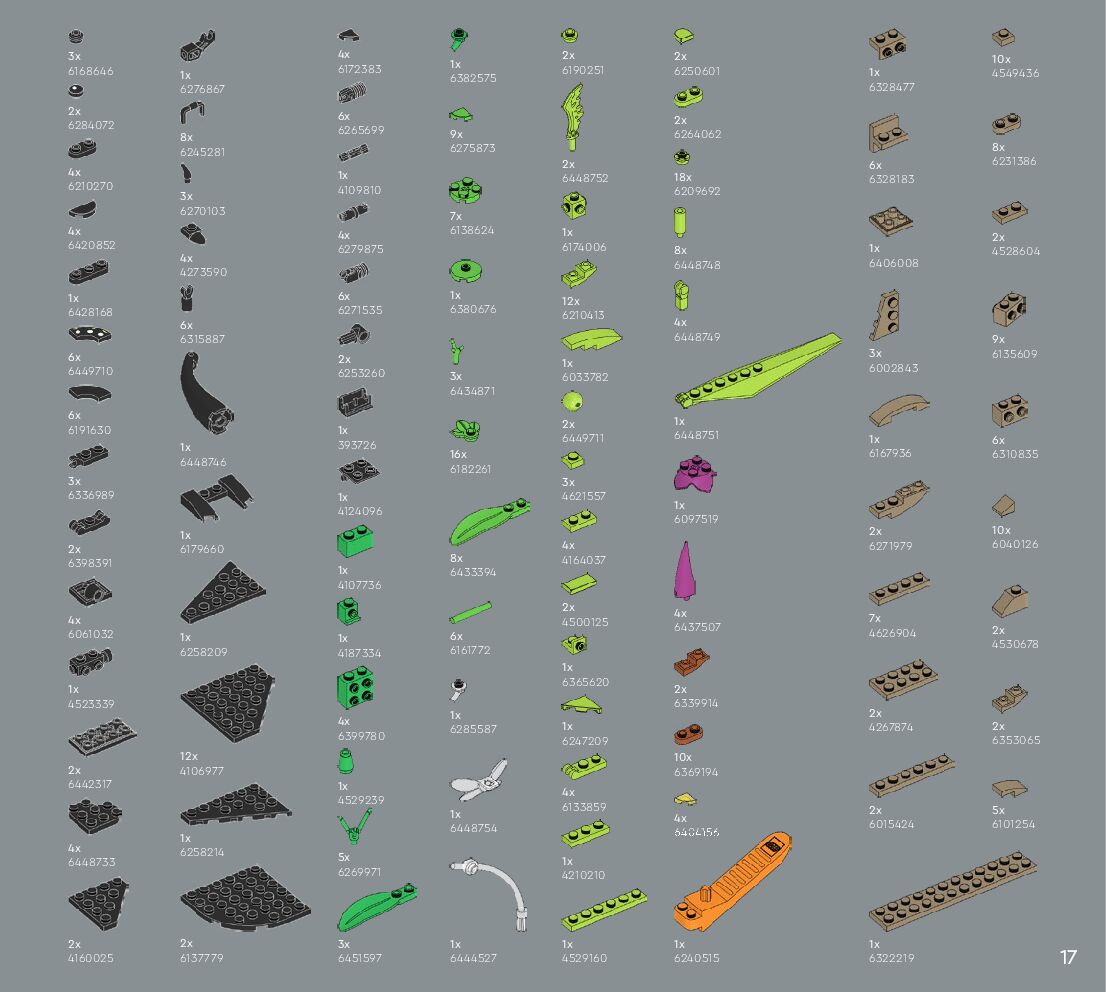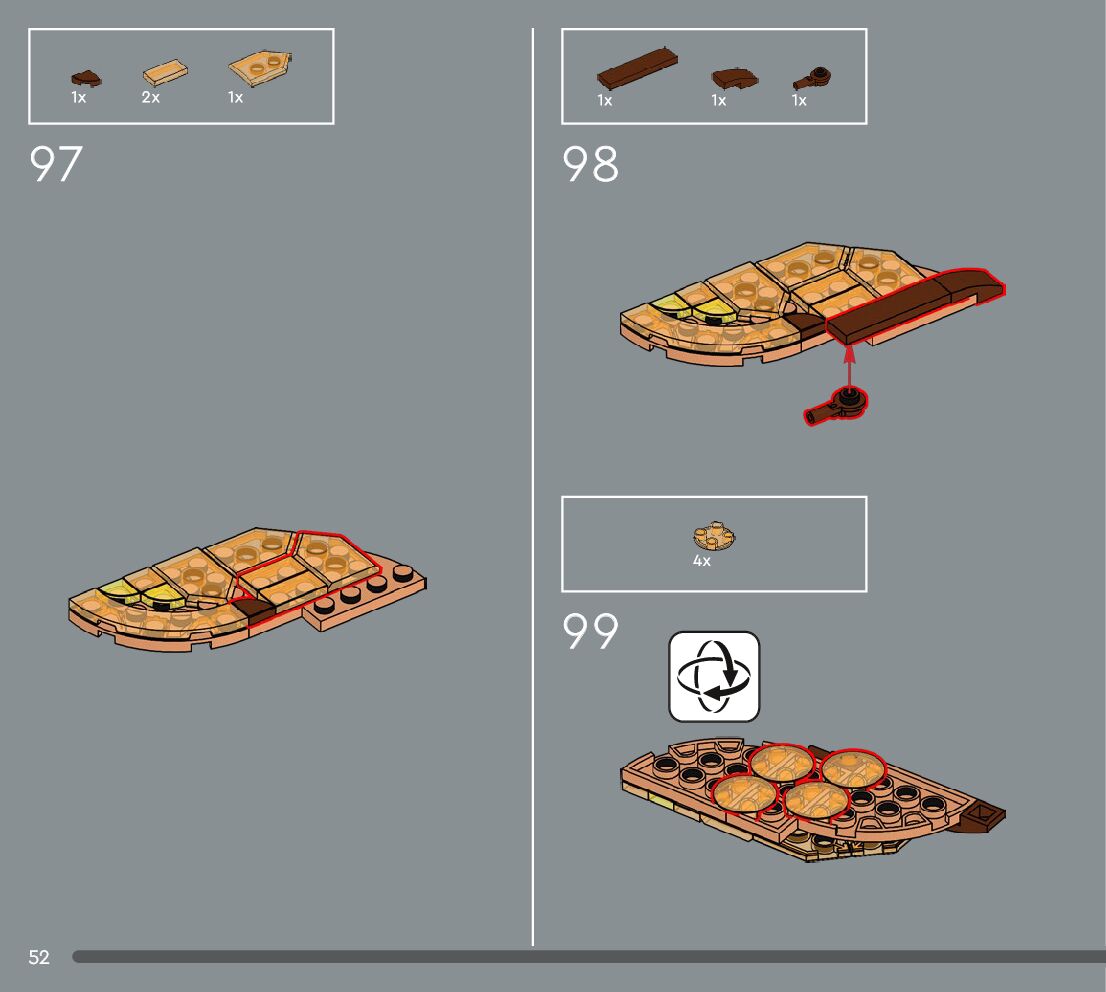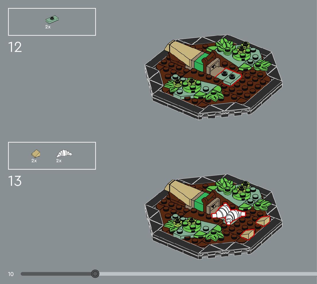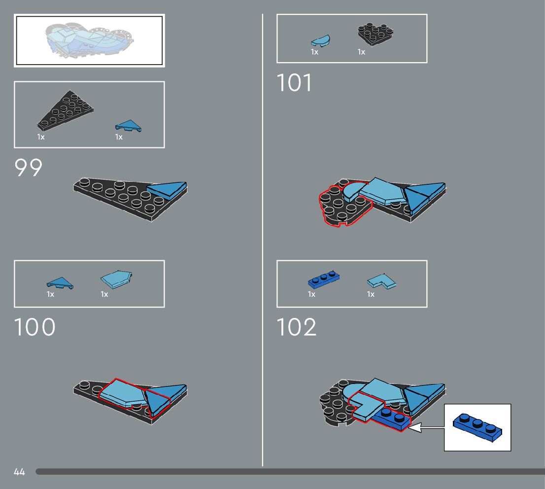 The assembly guide is prepared in a very understandable way for children and adult LEGO enthusiasts. A total of 176 picture galleries are shown, explaining the step-by-step construction stages for 4 different structures.