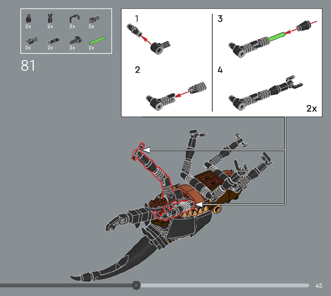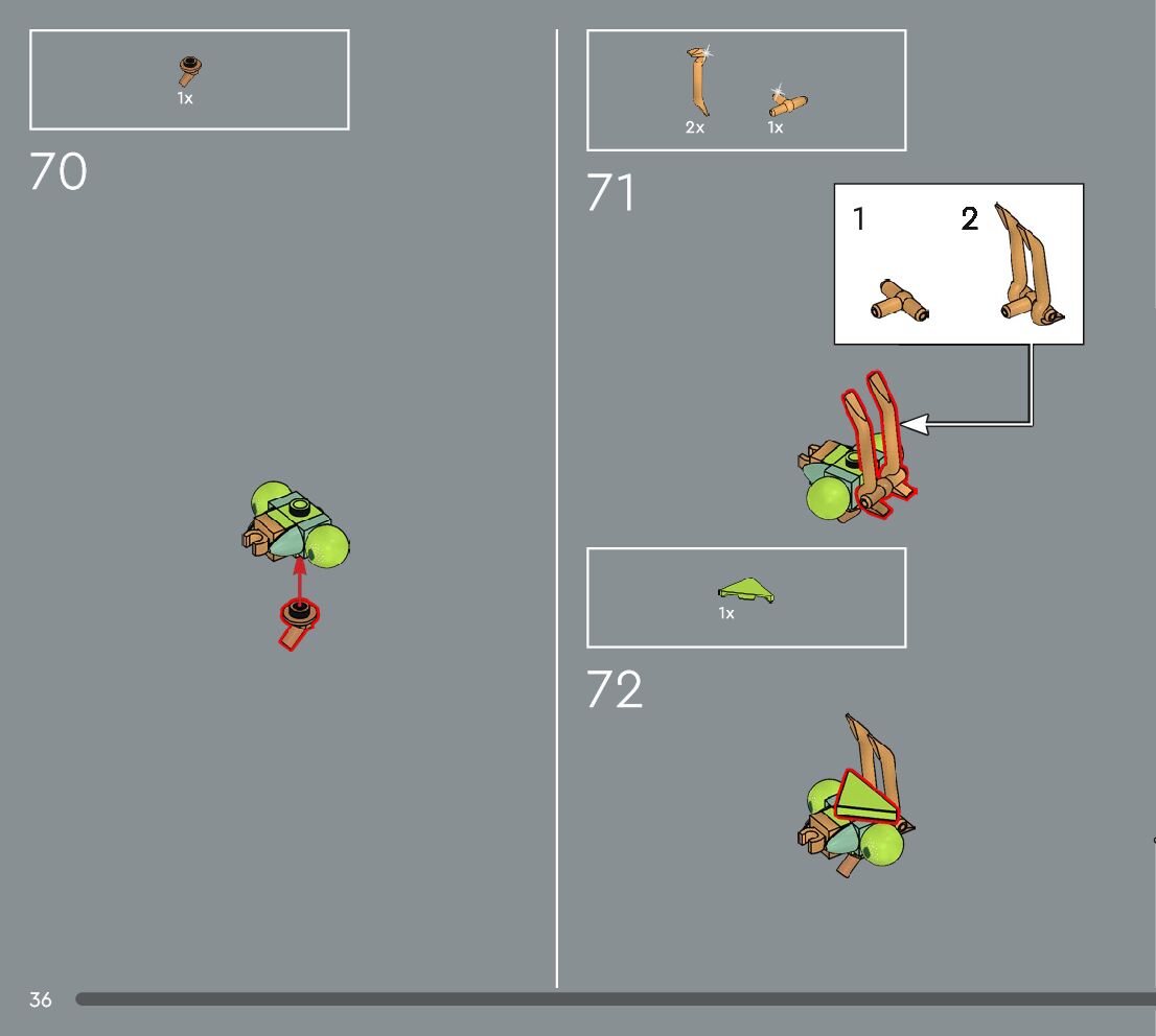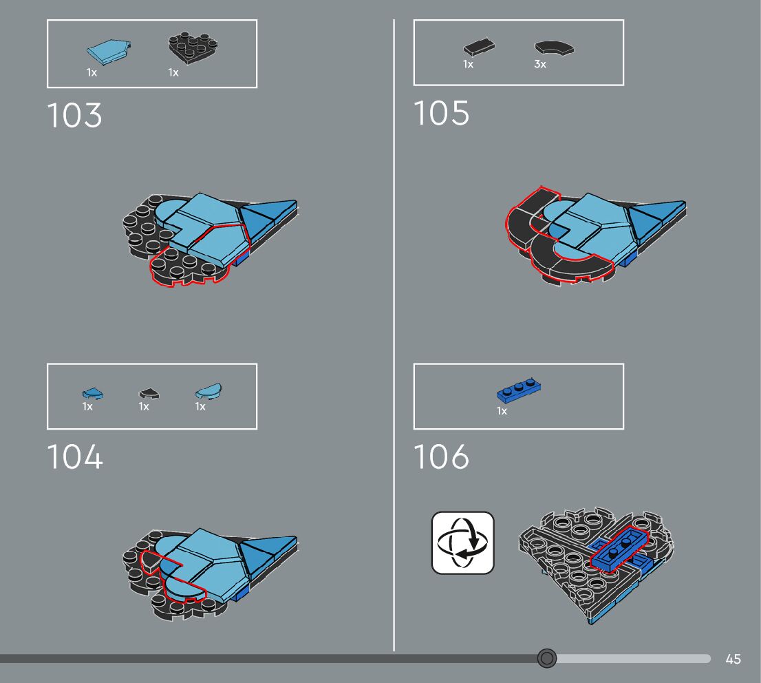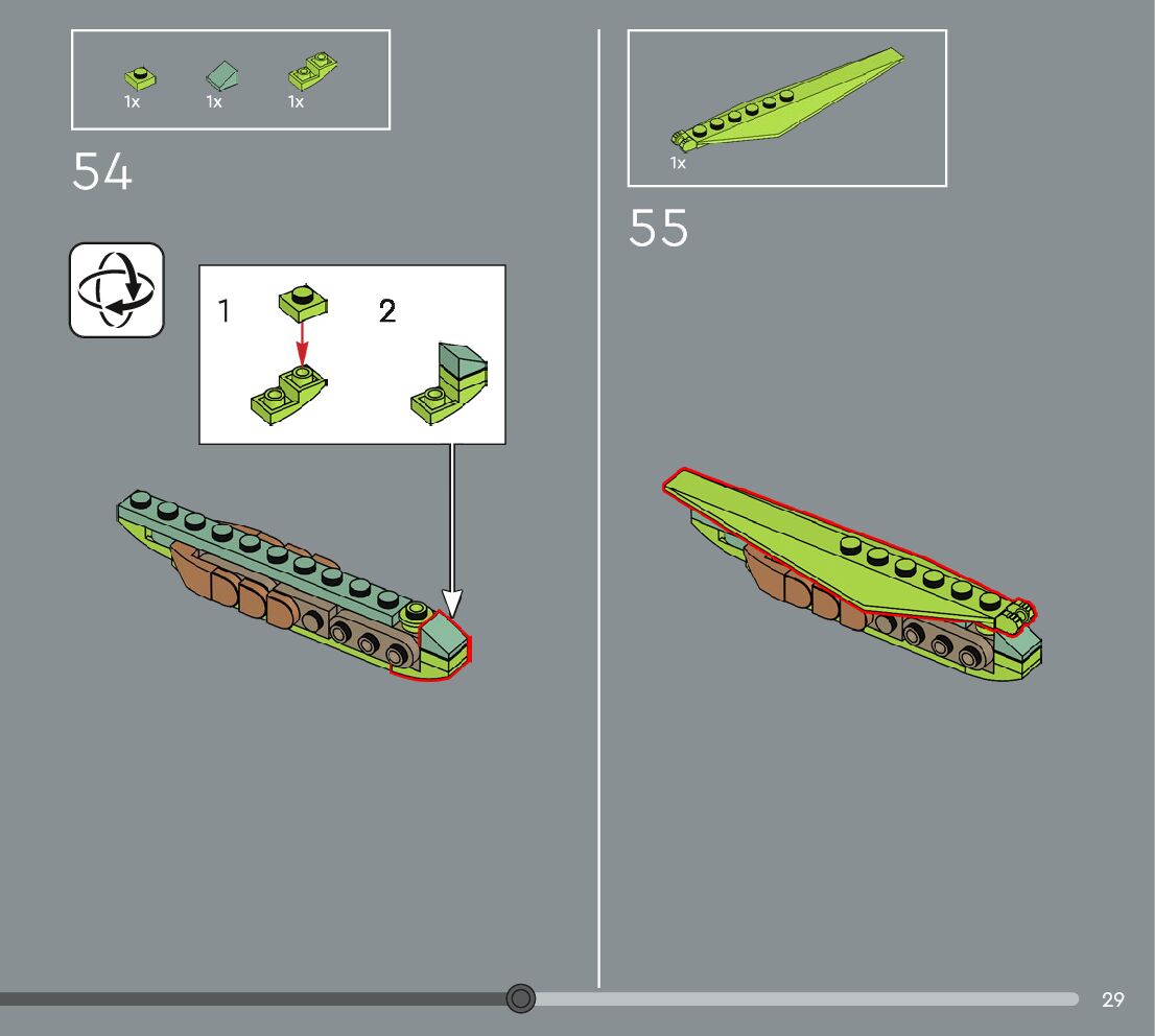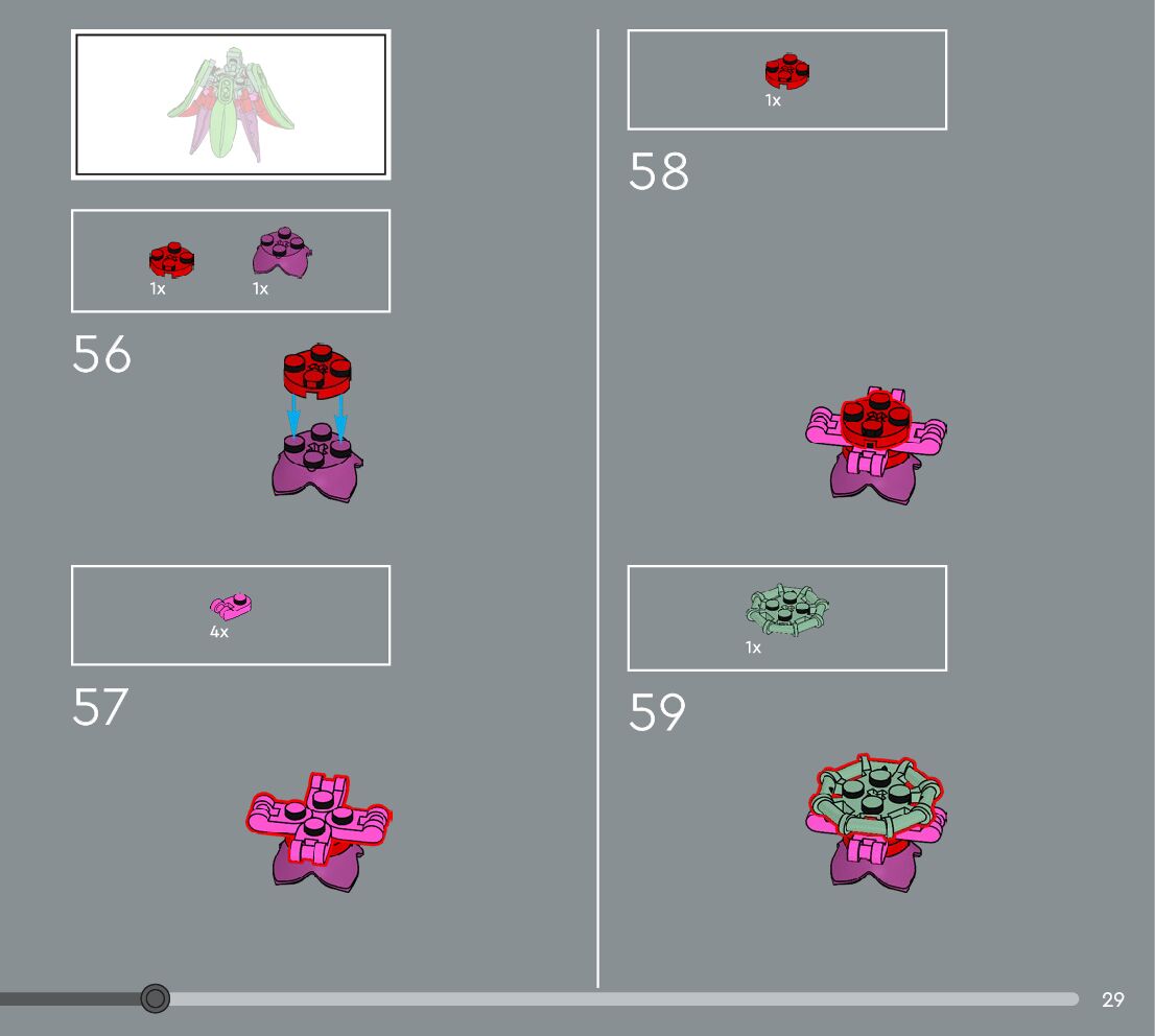 The assembly guide is prepared in a very understandable way for children and adult LEGO enthusiasts. A total of 176 picture galleries are shown, explaining the step-by-step construction stages for 4 different structures.