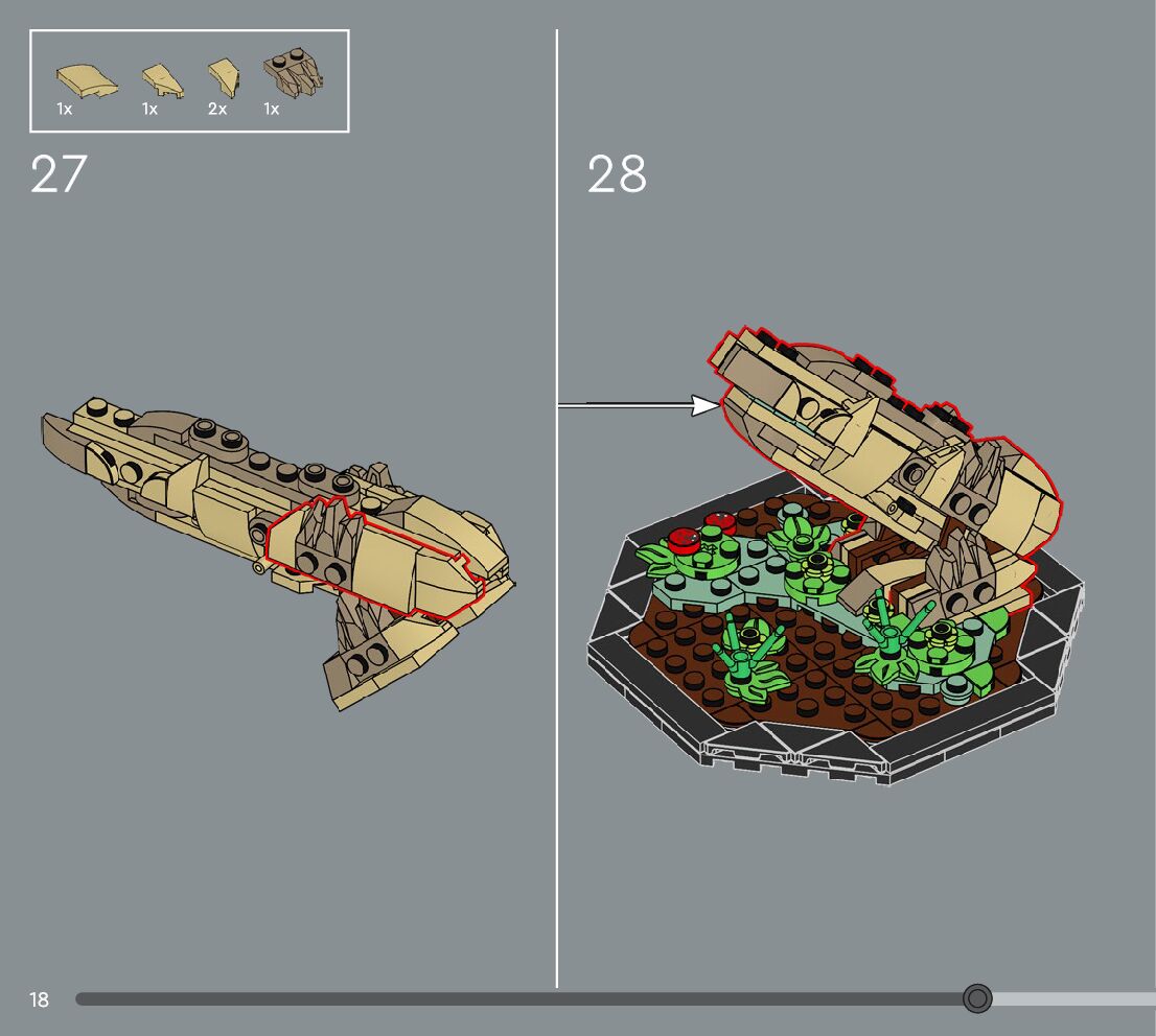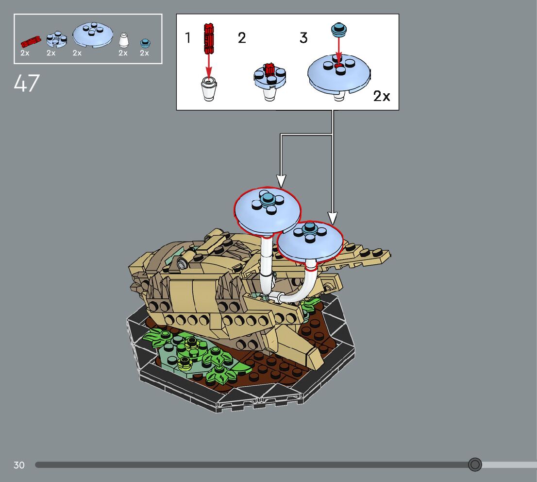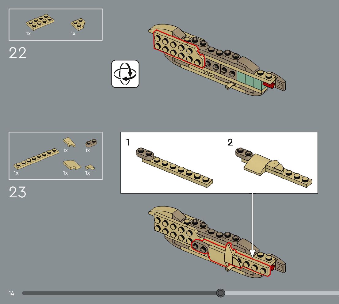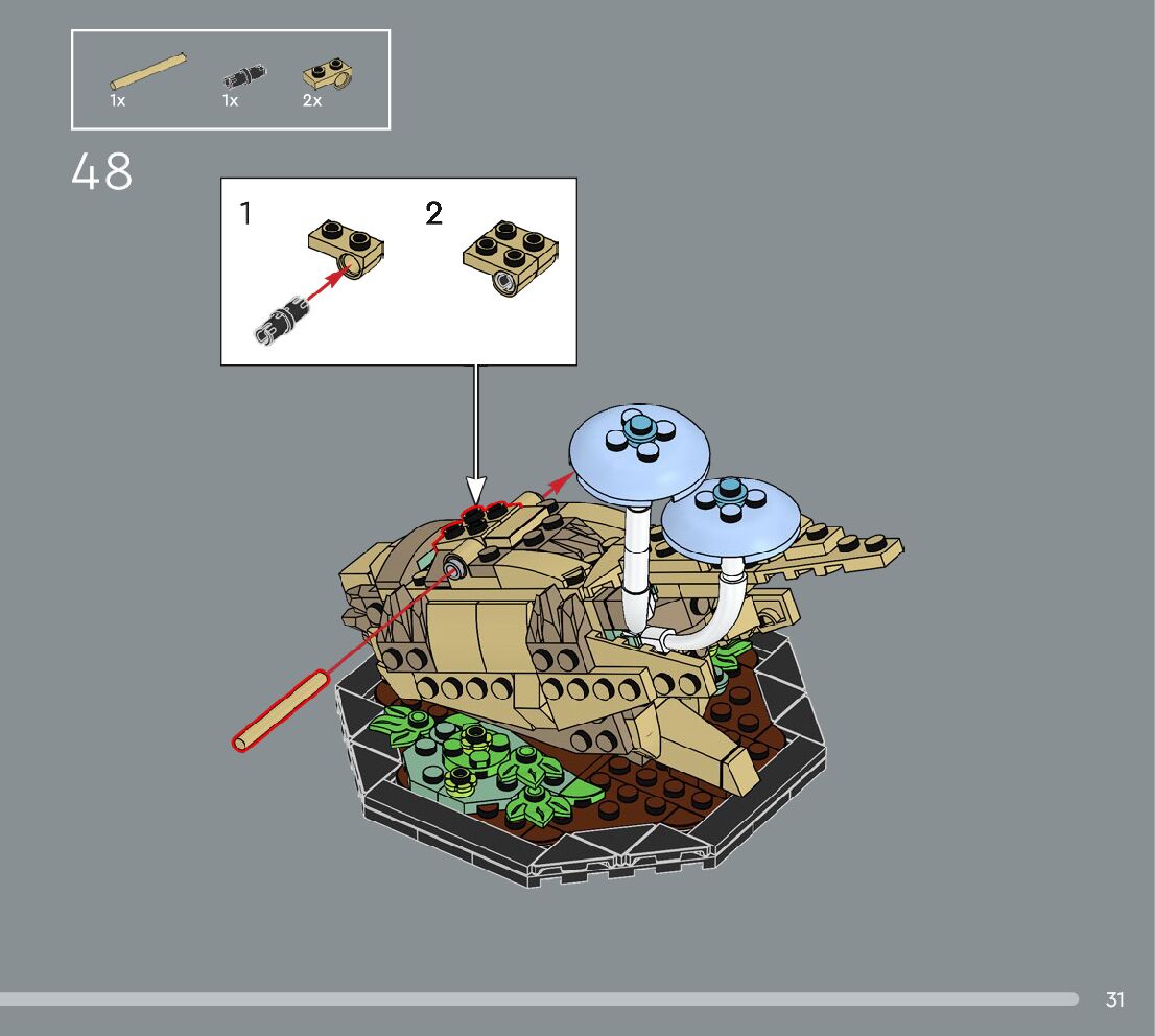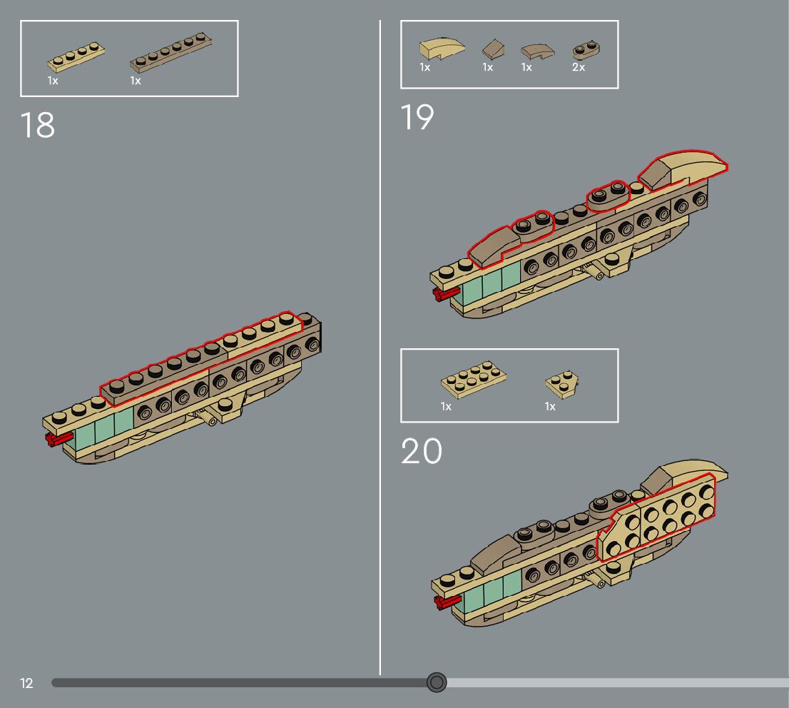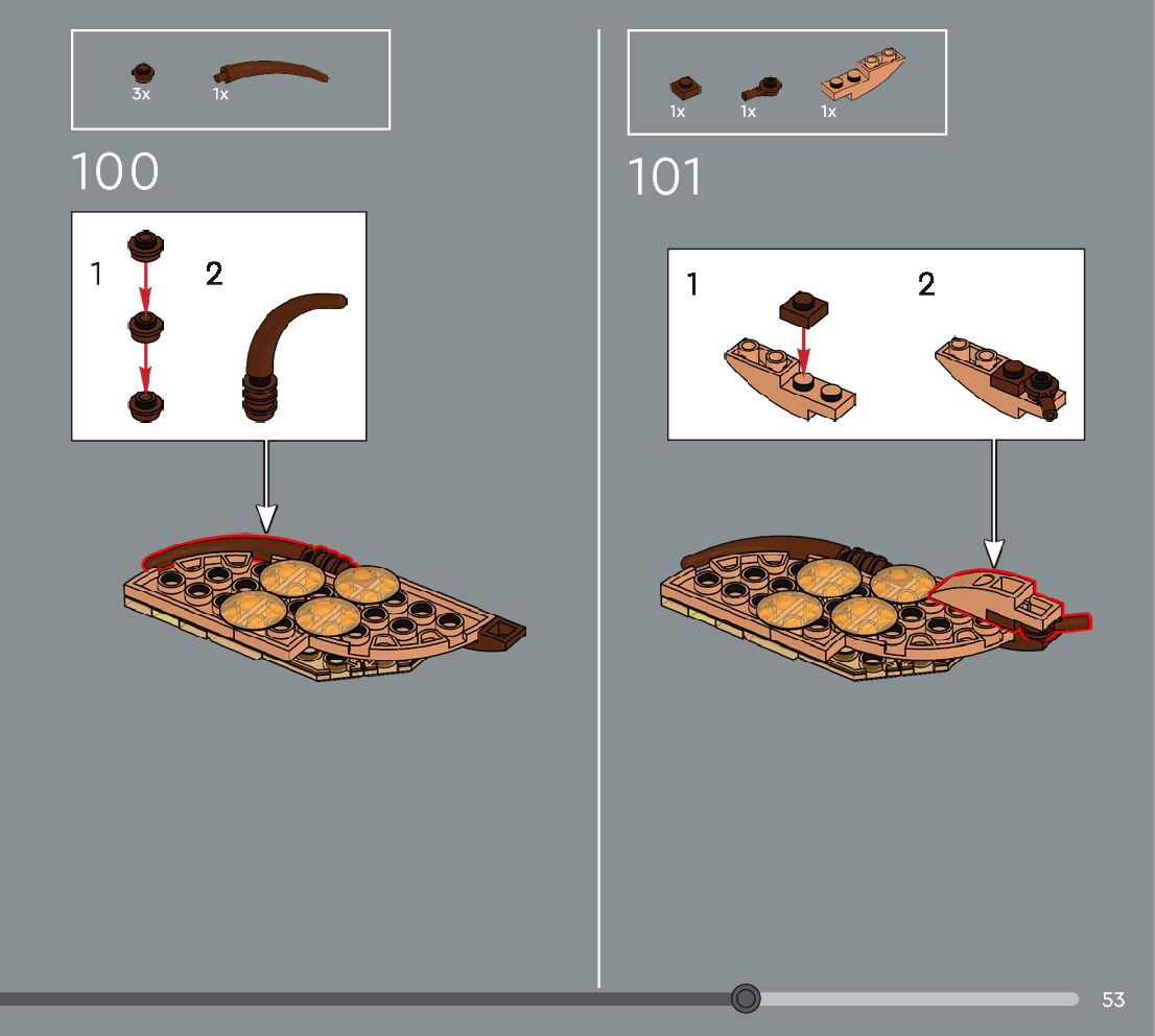 The assembly guide is prepared in a very understandable way for children and adult LEGO enthusiasts. A total of 176 picture galleries are shown, explaining the step-by-step construction stages for 4 different structures.