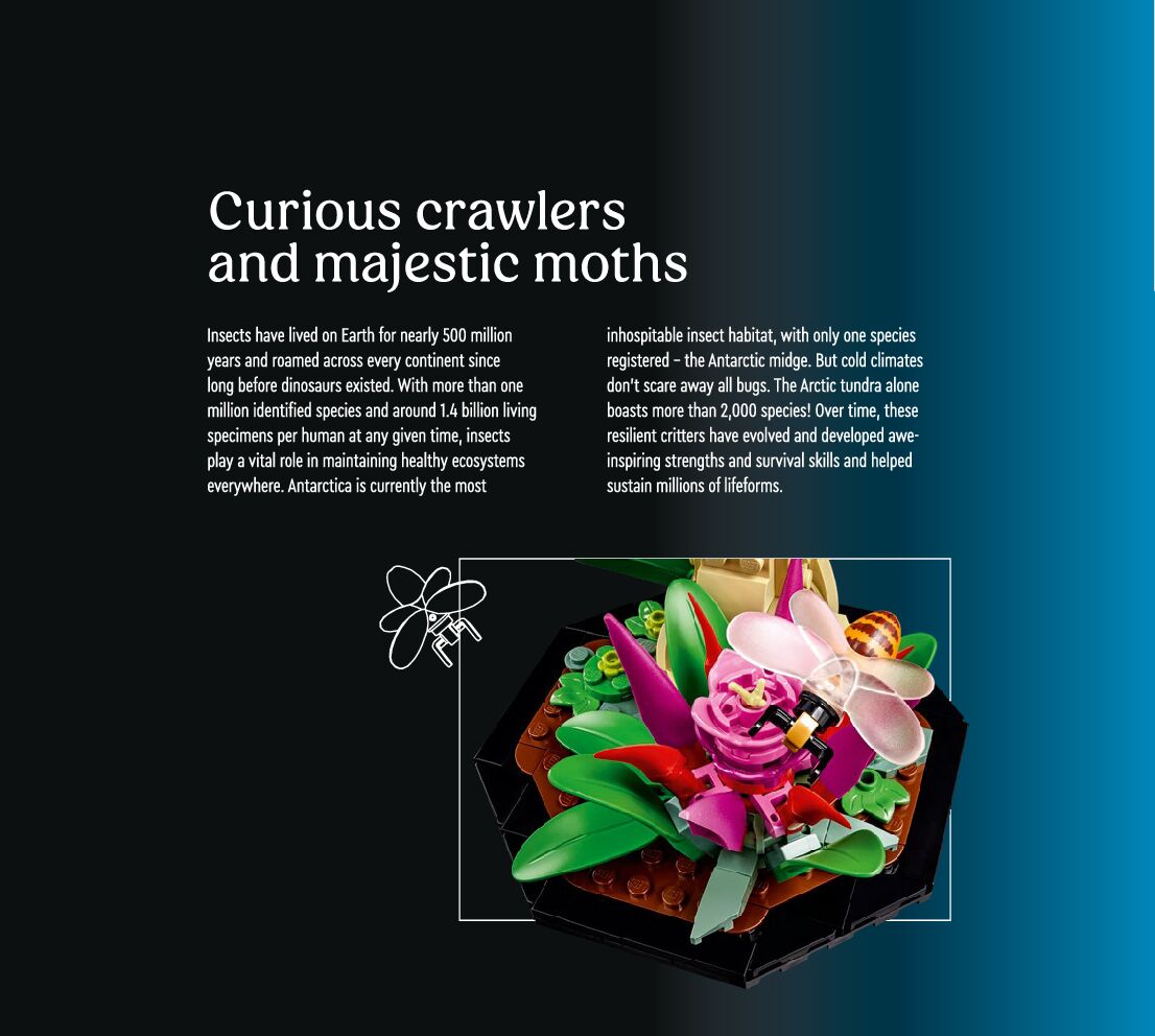 On this page you can find the original construction manual for the LEGO 21342 set. With the assembly manual you can easily learn how to build the 21342 The Insect Collection step by step. The set was released in 2023.