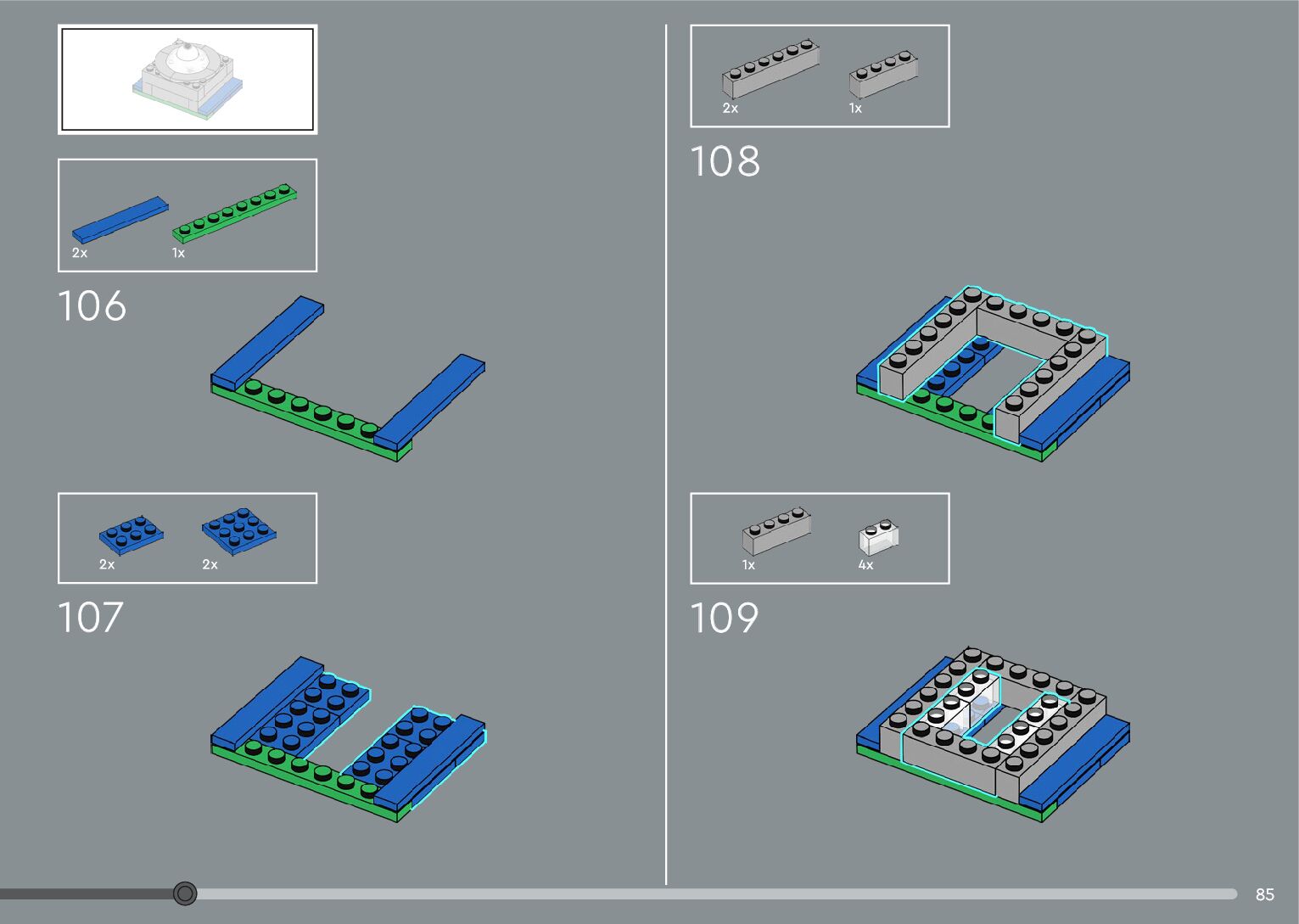 The assembly guide is prepared in a very understandable way for children and adult LEGO enthusiasts. A total of 160 picture galleries are shown, explaining the step-by-step construction stages for 1 different structures.