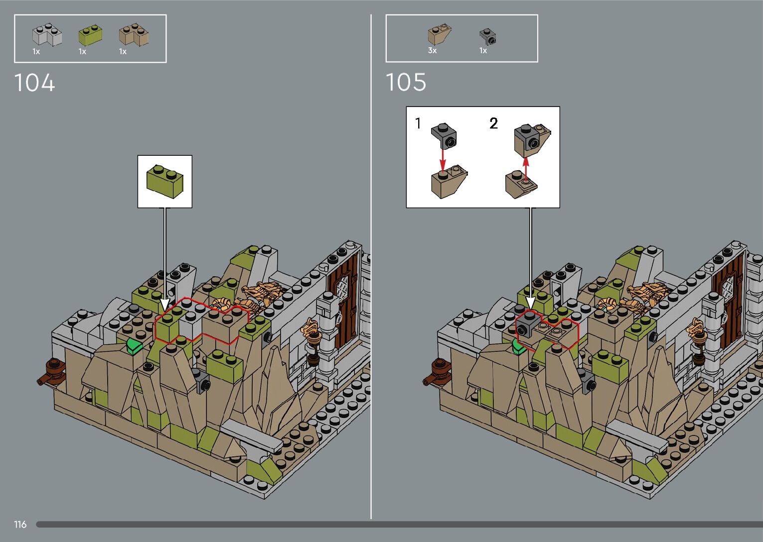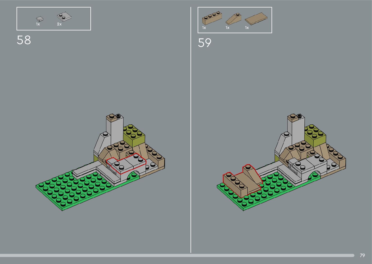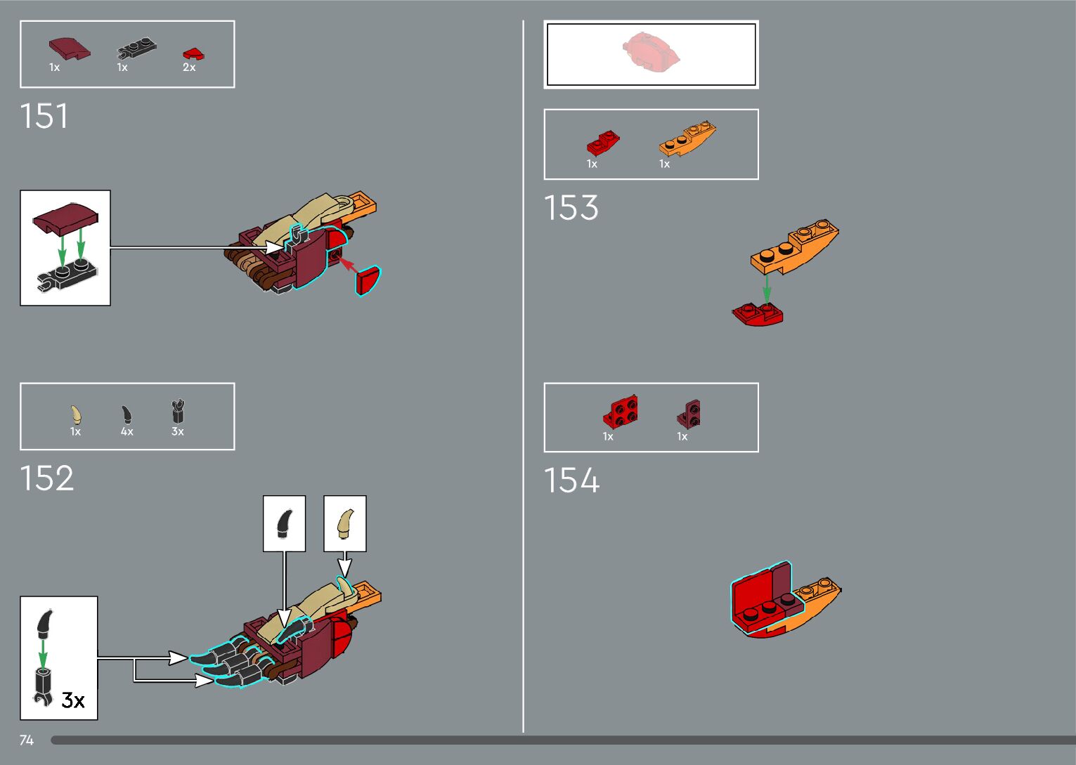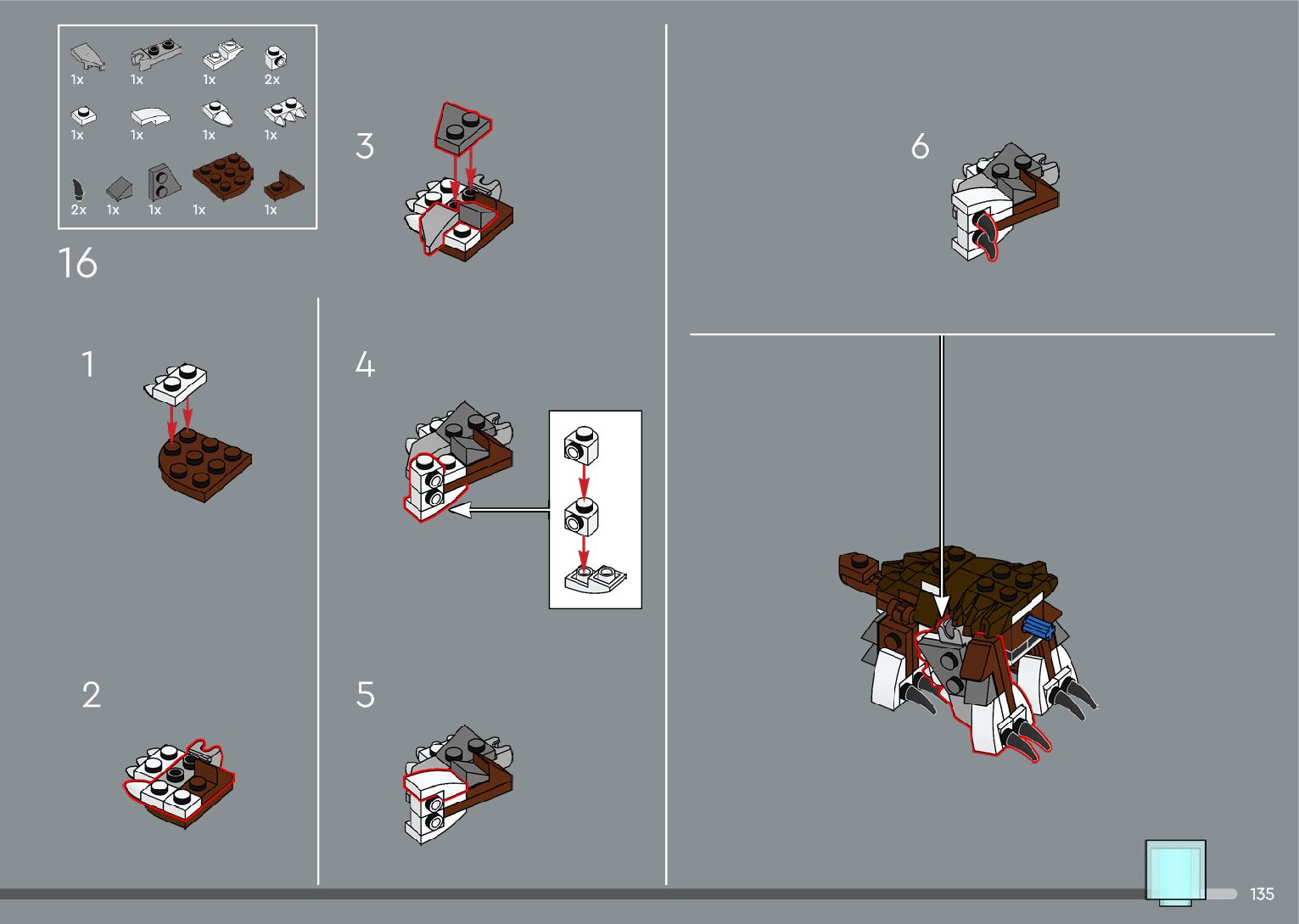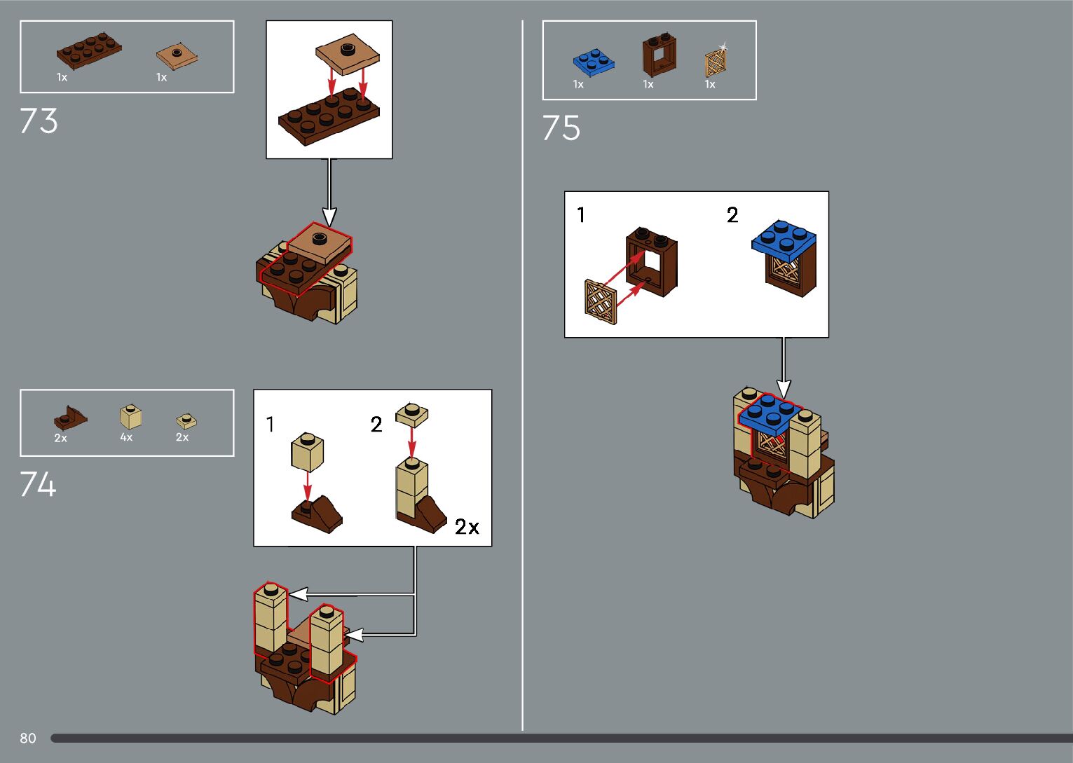 The assembly guide is prepared in a very understandable way for children and adult LEGO enthusiasts. A total of 556 picture galleries are shown, explaining the step-by-step construction stages for 4 different structures.
