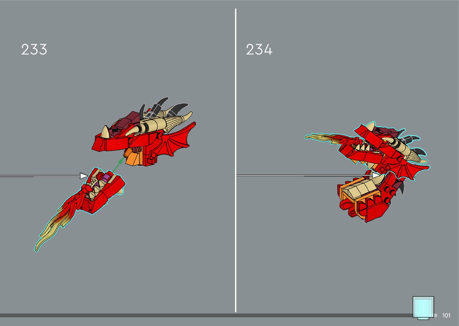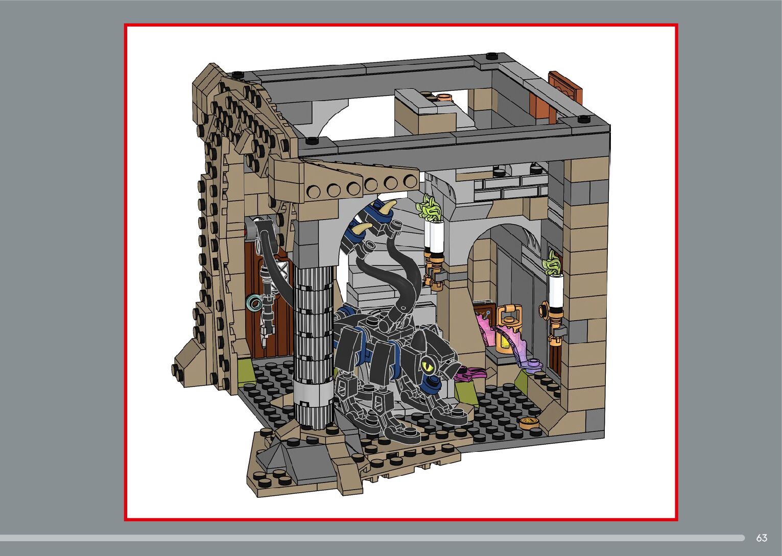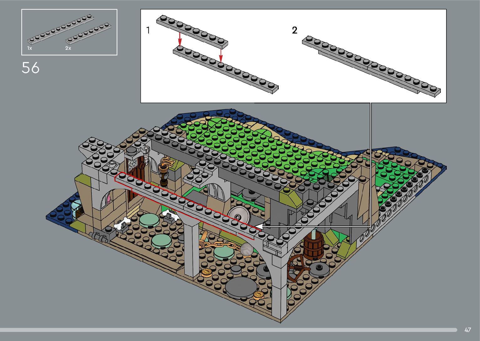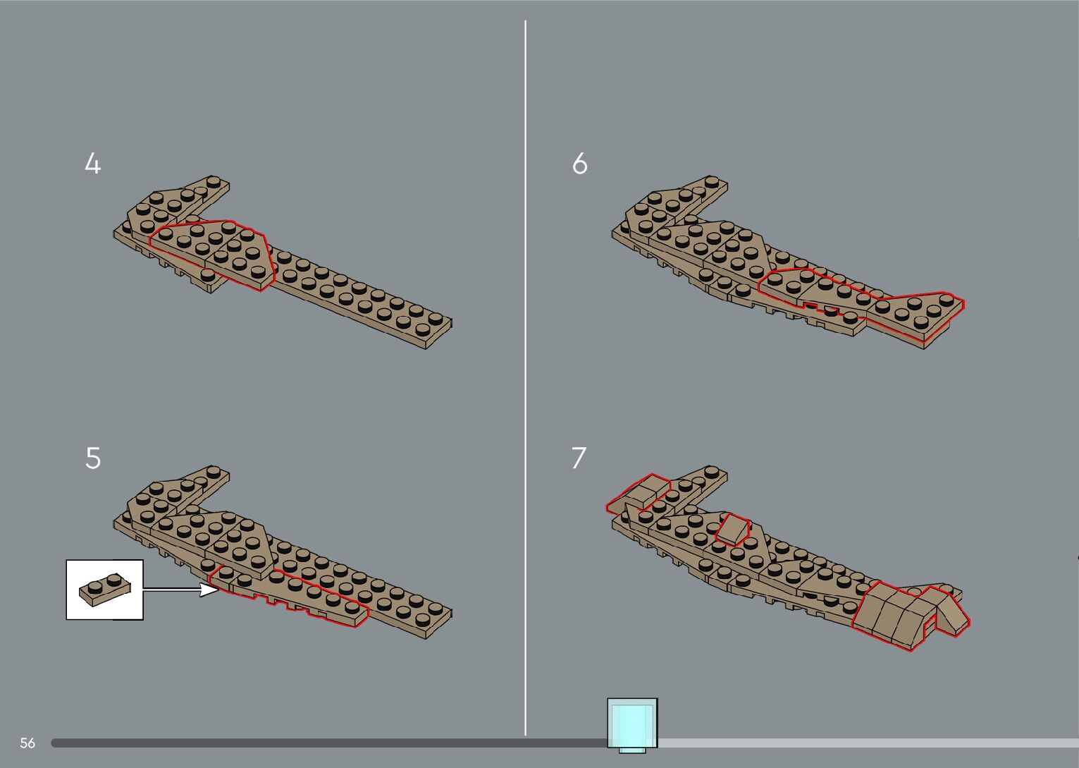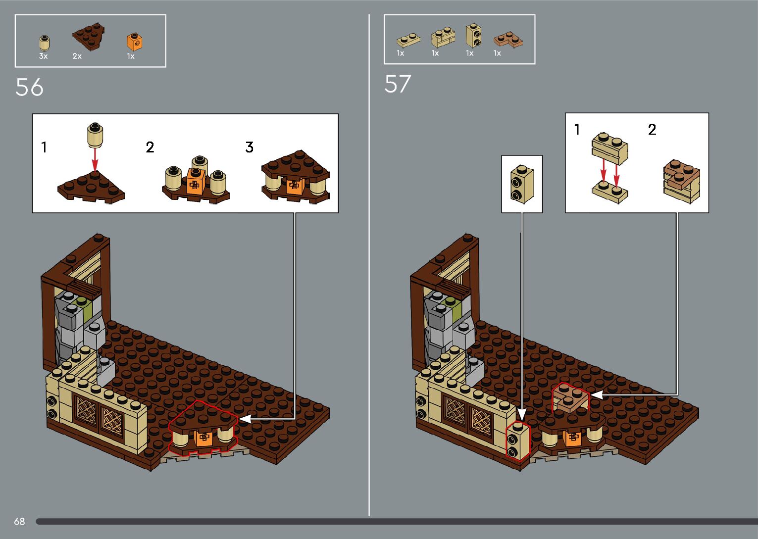 The assembly guide is prepared in a very understandable way for children and adult LEGO enthusiasts. A total of 556 picture galleries are shown, explaining the step-by-step construction stages for 4 different structures.