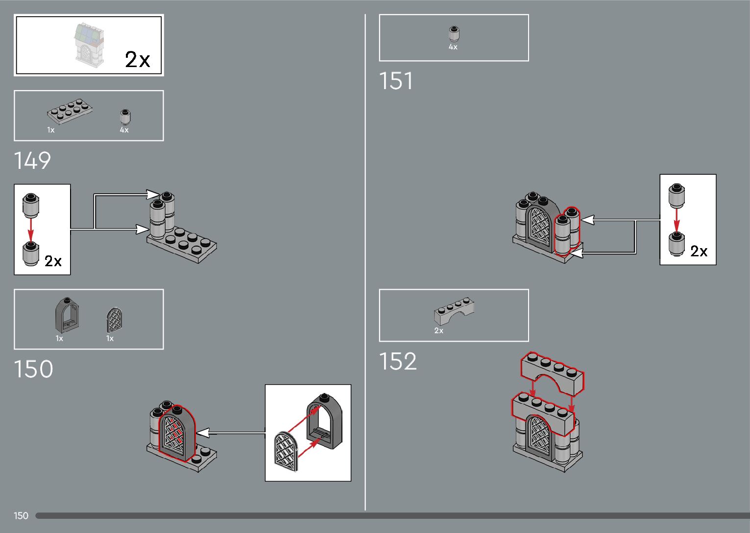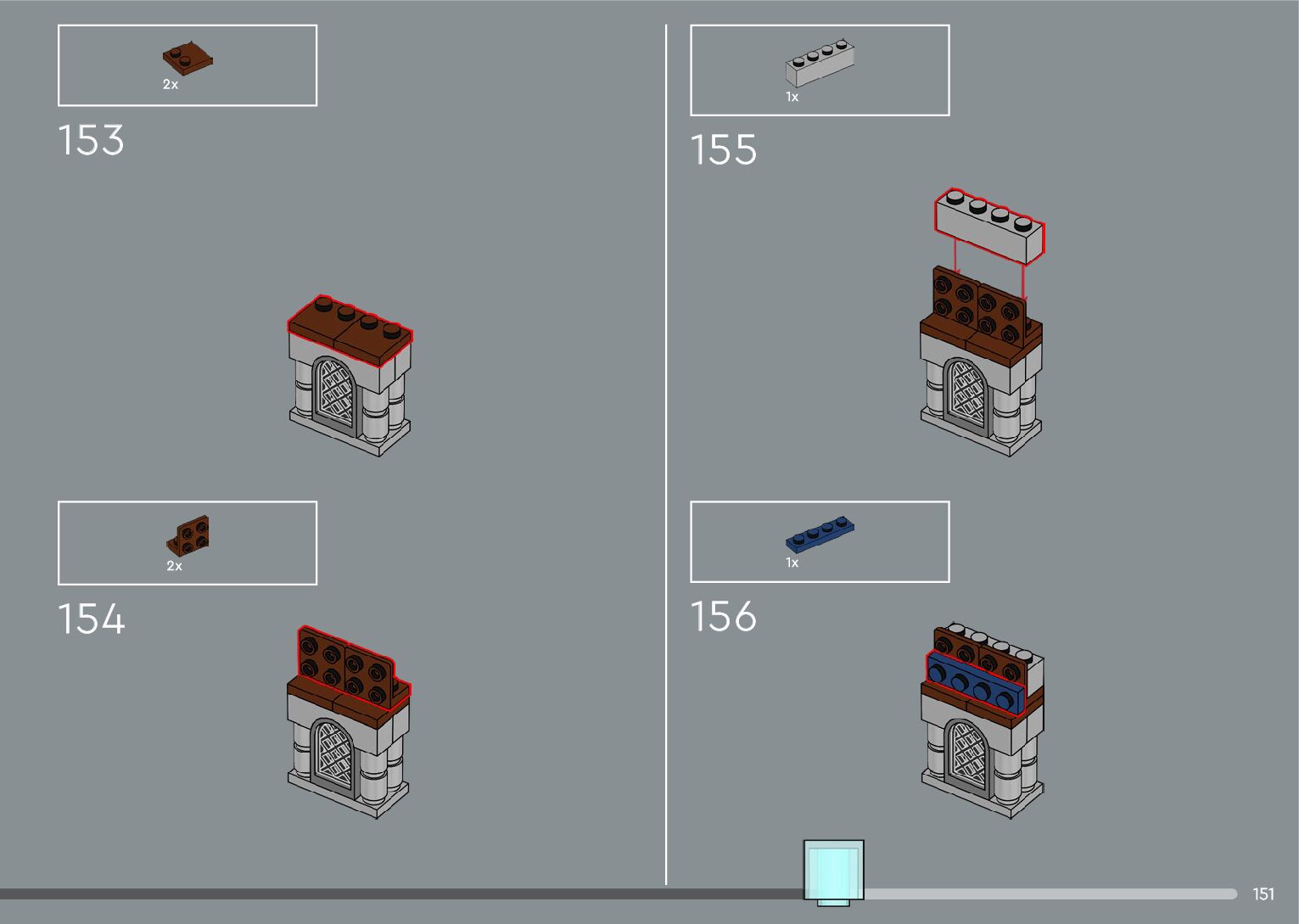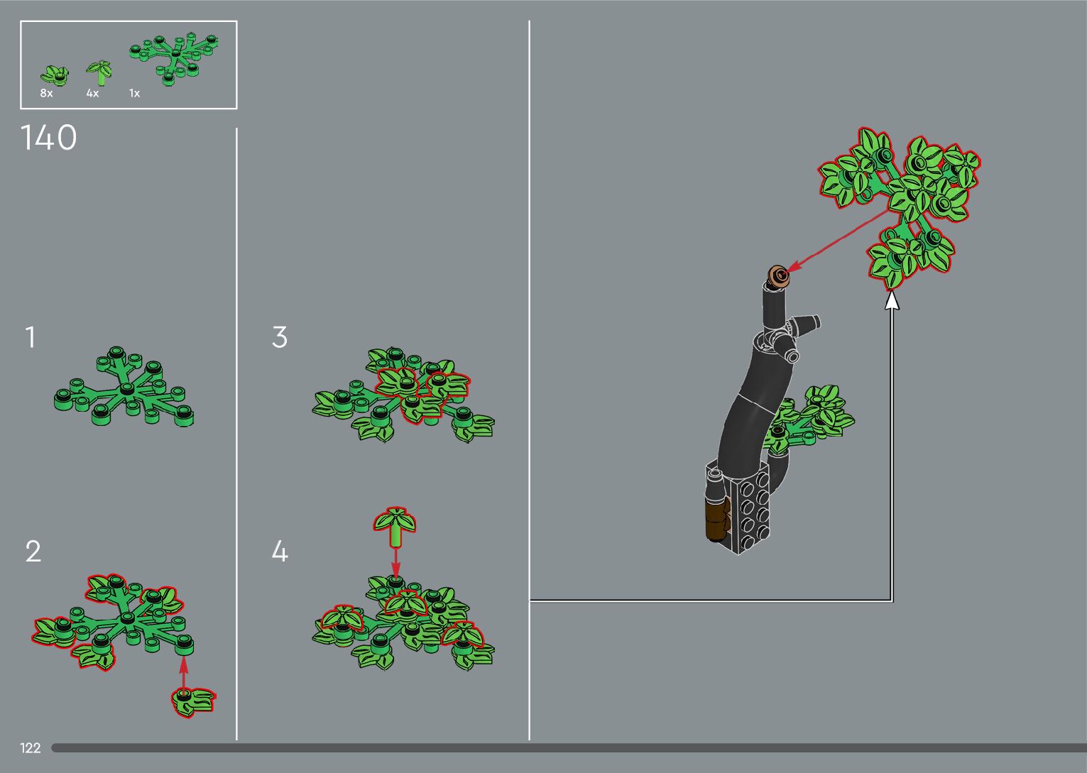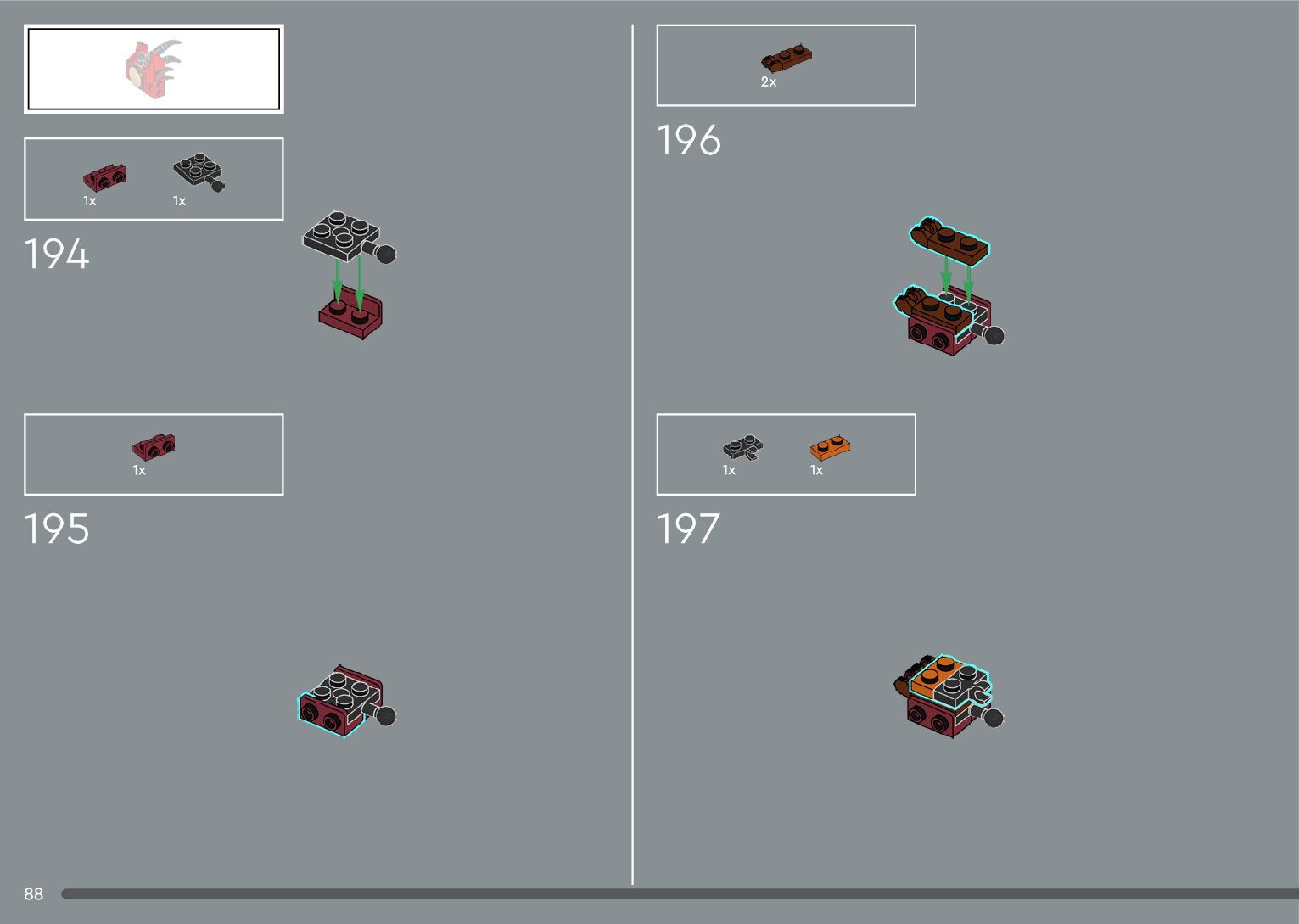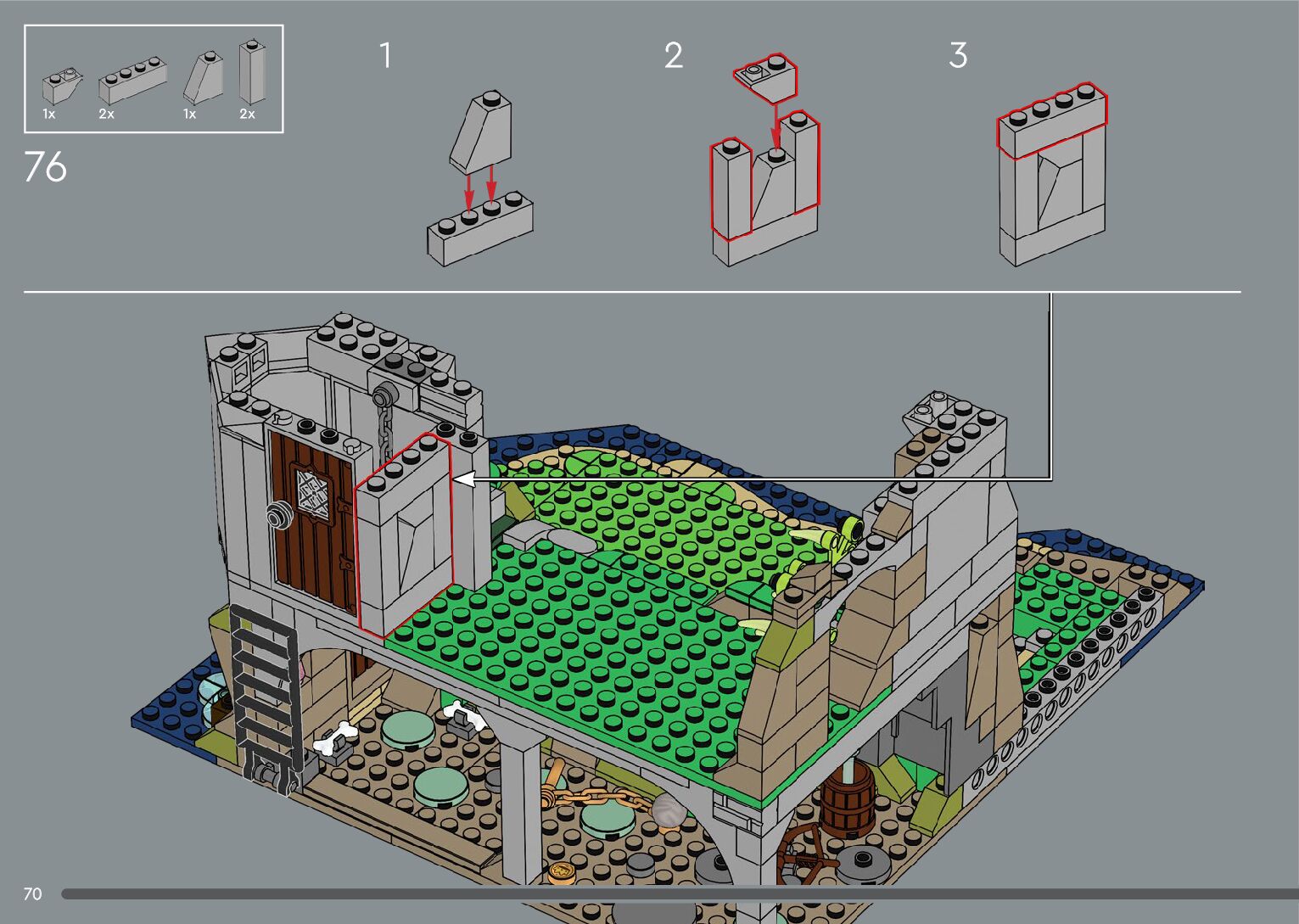 The assembly guide is prepared in a very understandable way for children and adult LEGO enthusiasts. A total of 556 picture galleries are shown, explaining the step-by-step construction stages for 4 different structures.