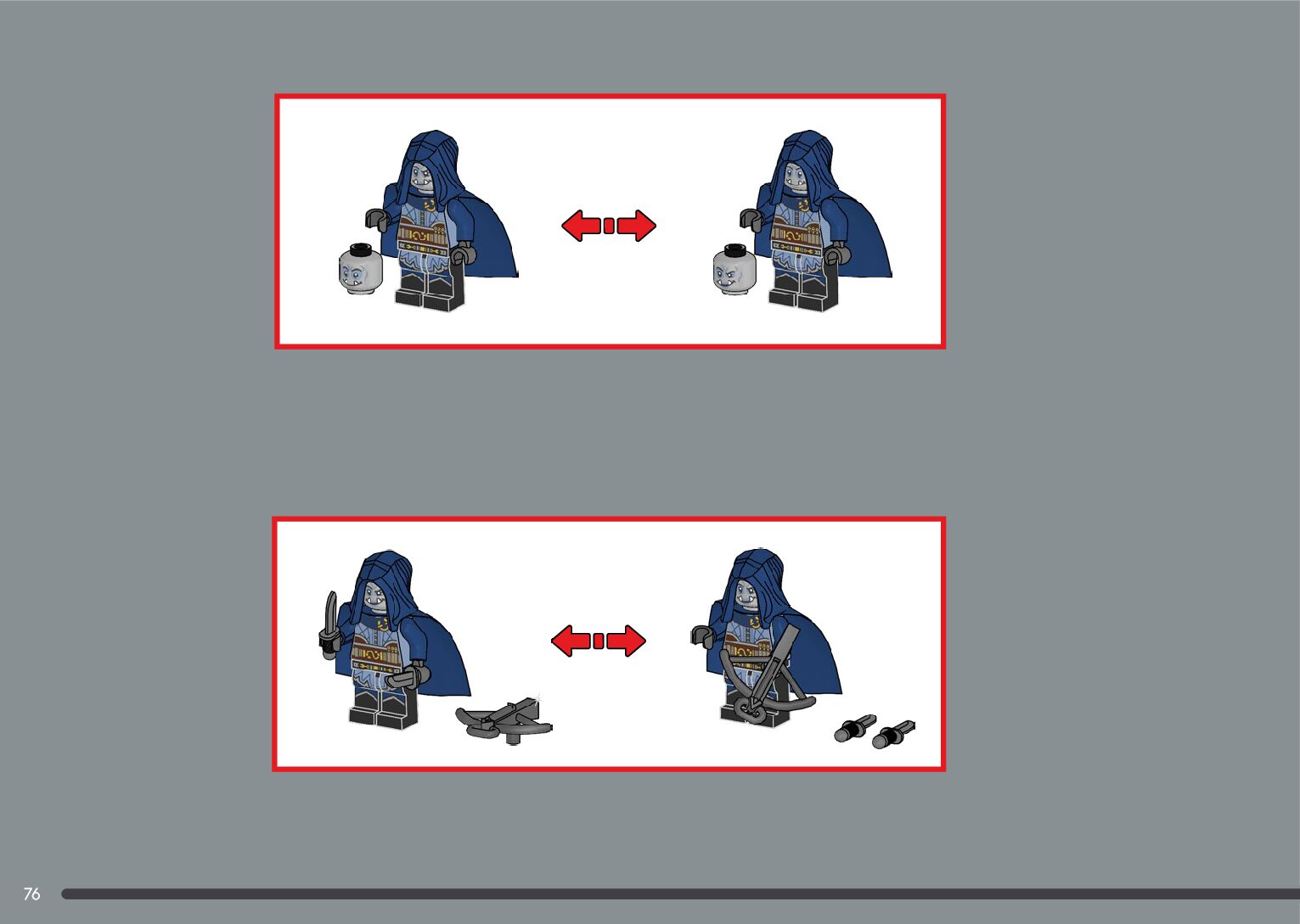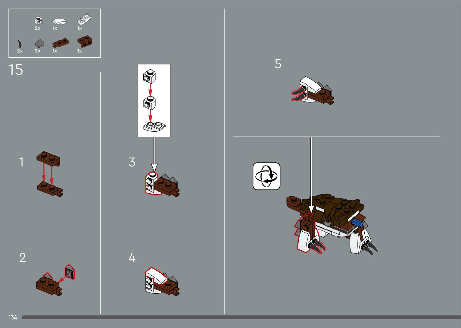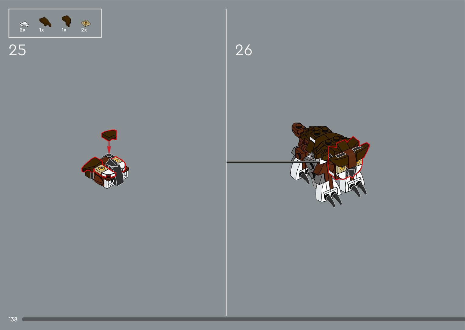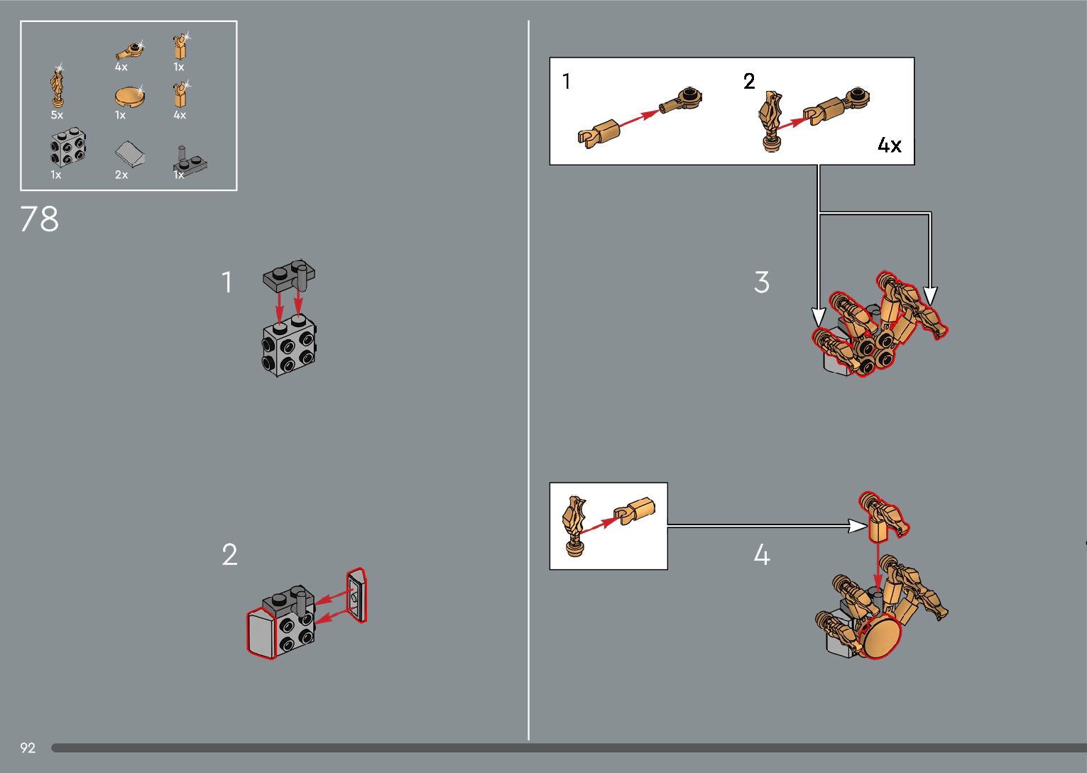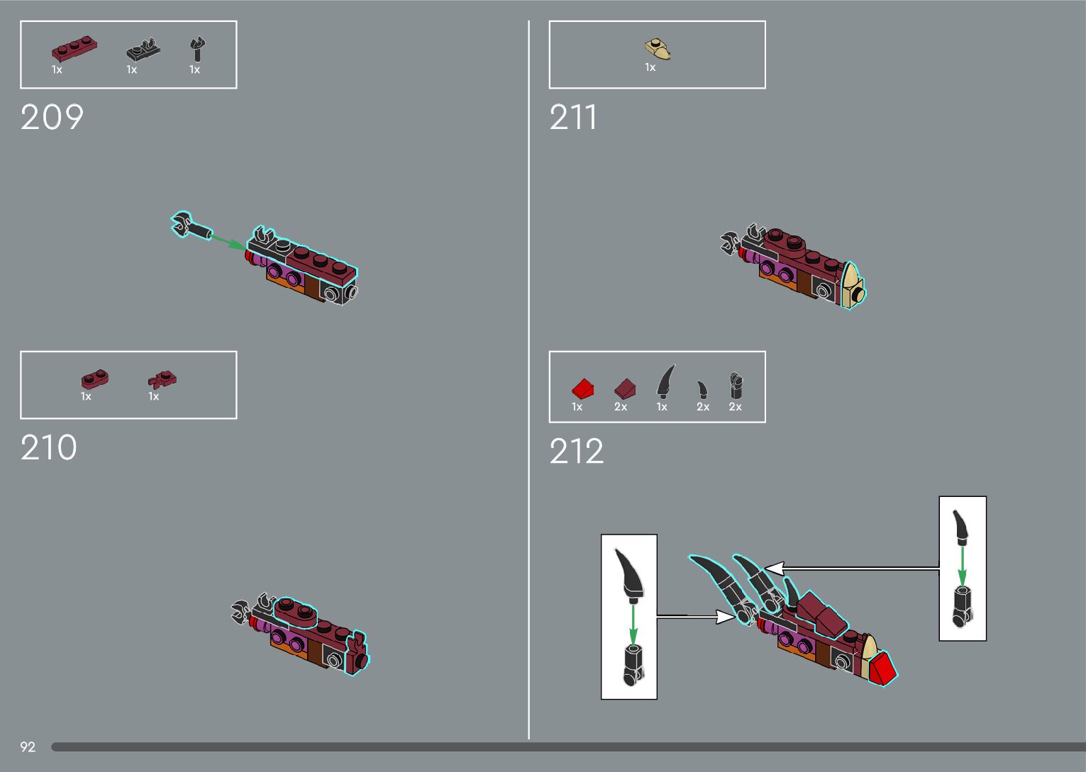 The assembly guide is prepared in a very understandable way for children and adult LEGO enthusiasts. A total of 556 picture galleries are shown, explaining the step-by-step construction stages for 4 different structures.