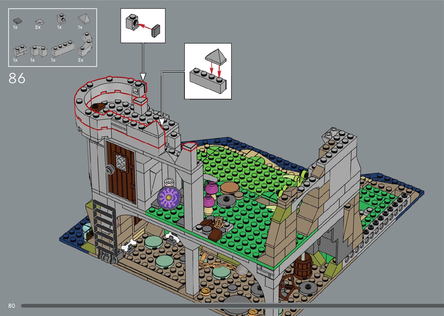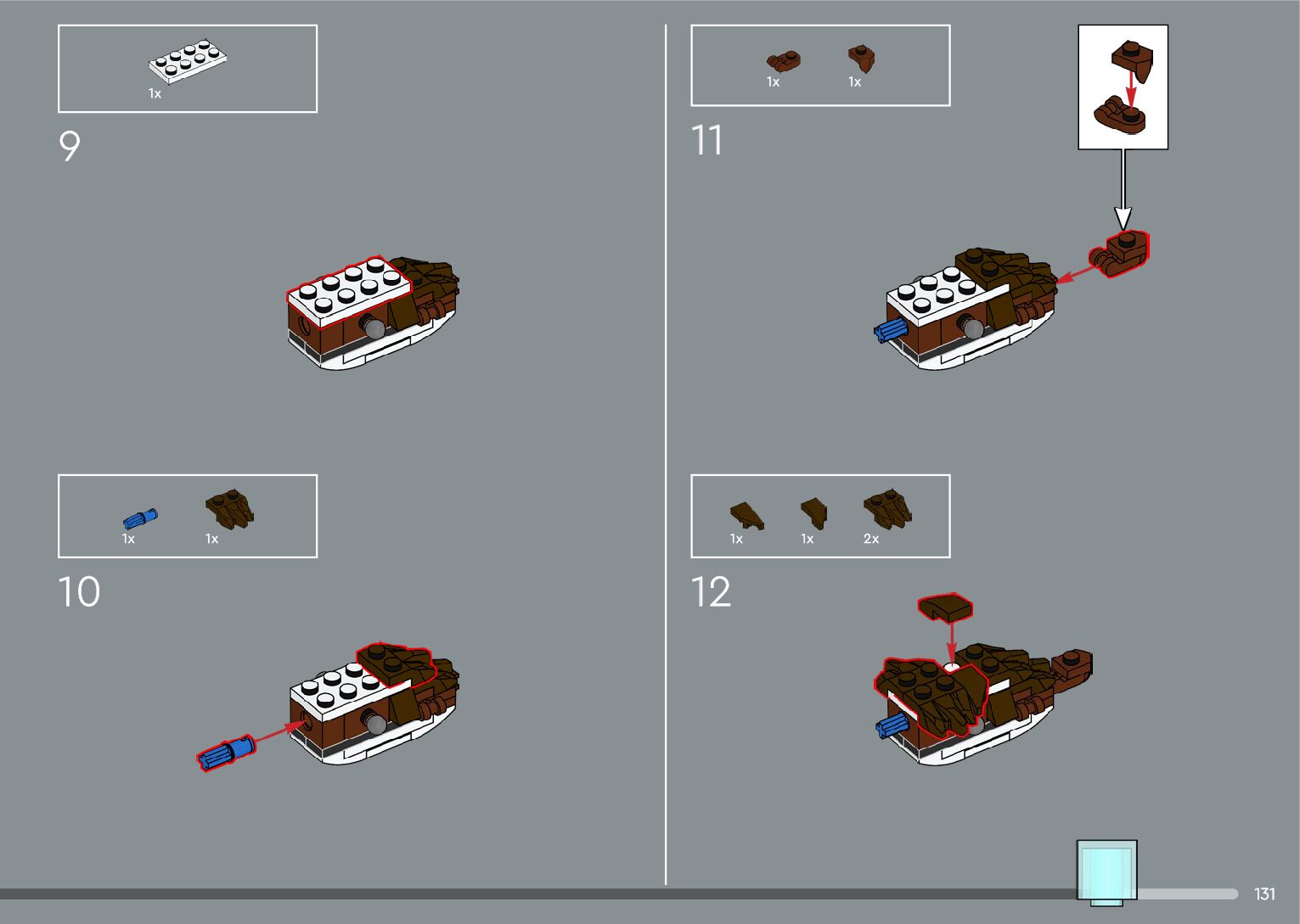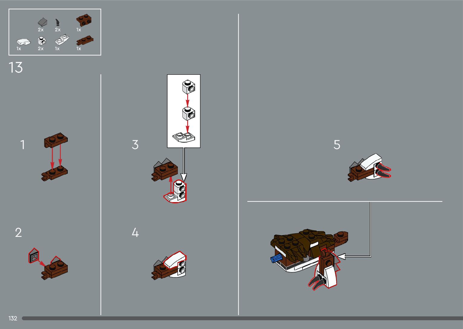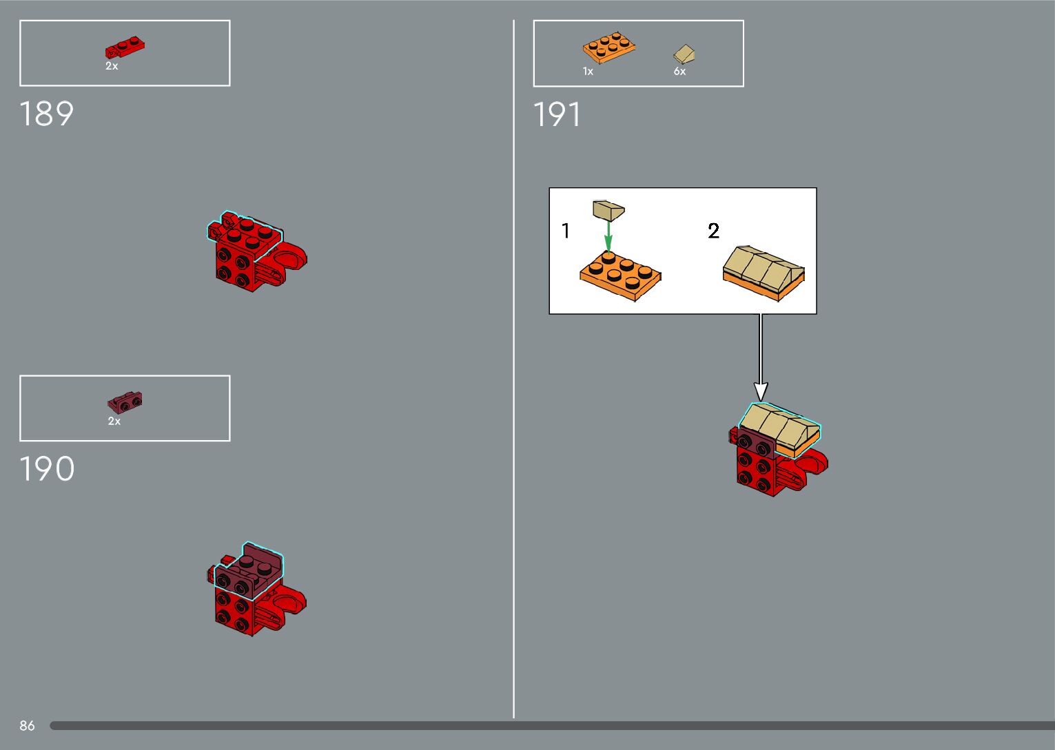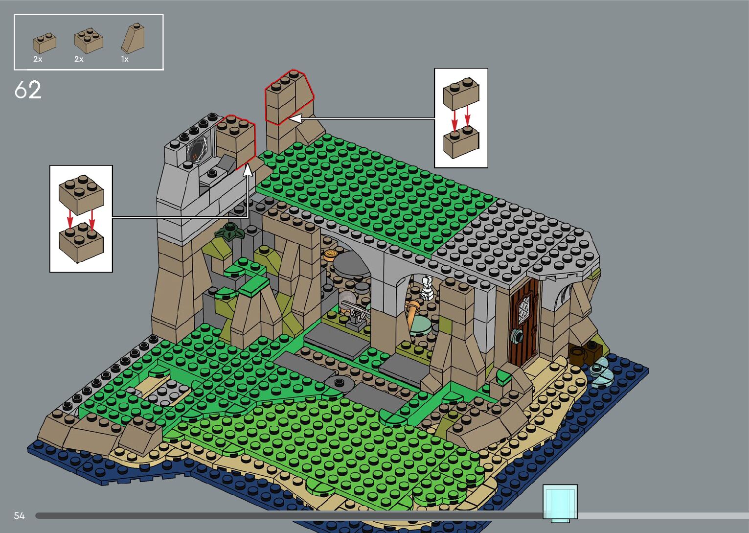 The assembly guide is prepared in a very understandable way for children and adult LEGO enthusiasts. A total of 556 picture galleries are shown, explaining the step-by-step construction stages for 4 different structures.