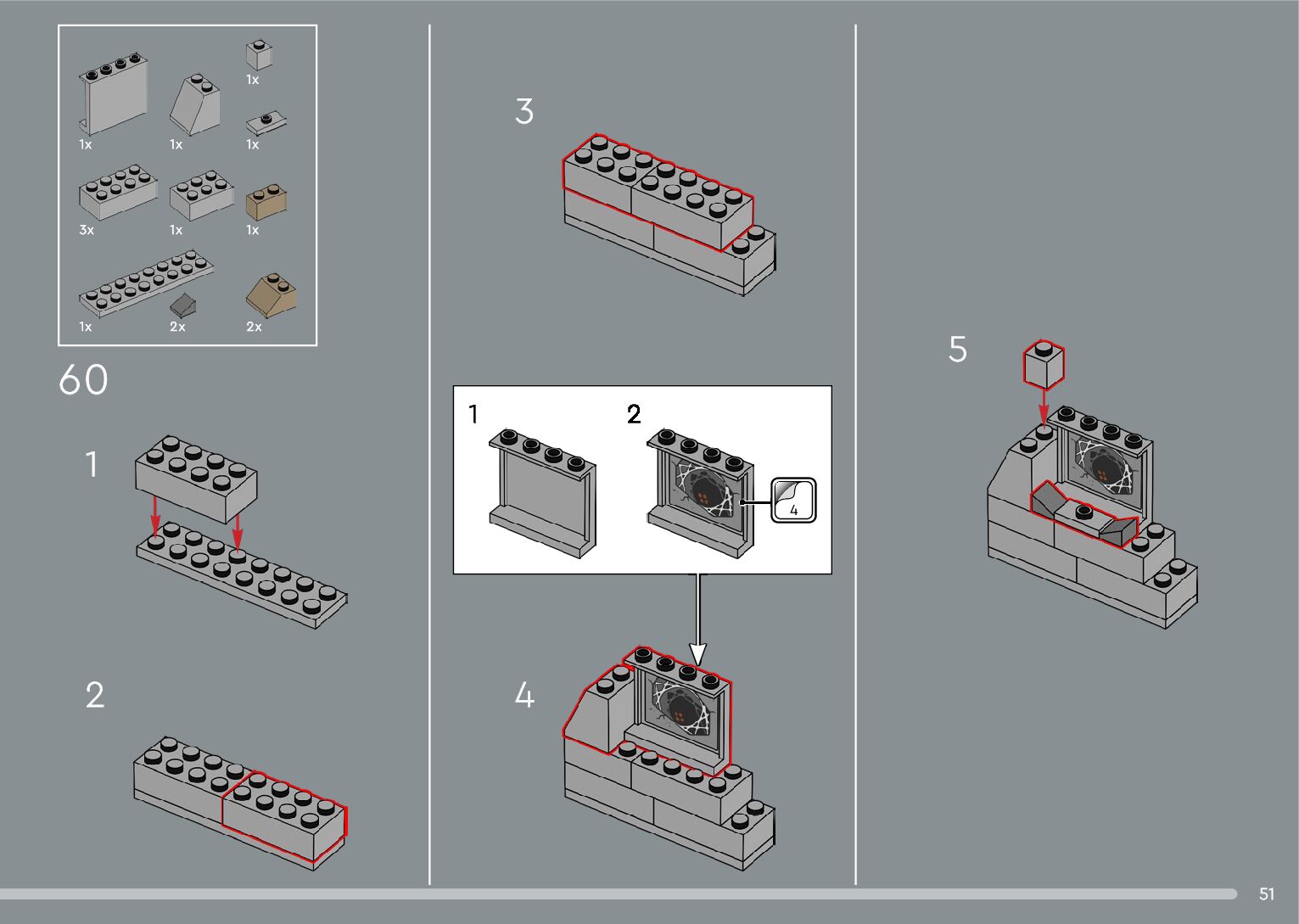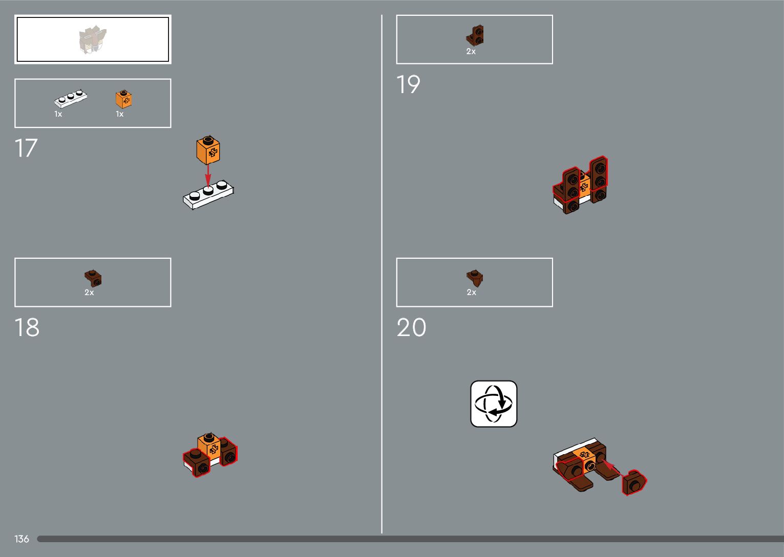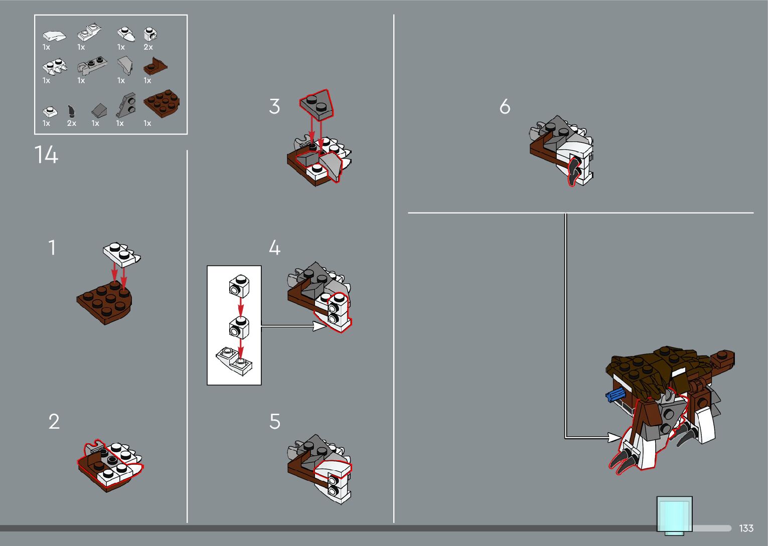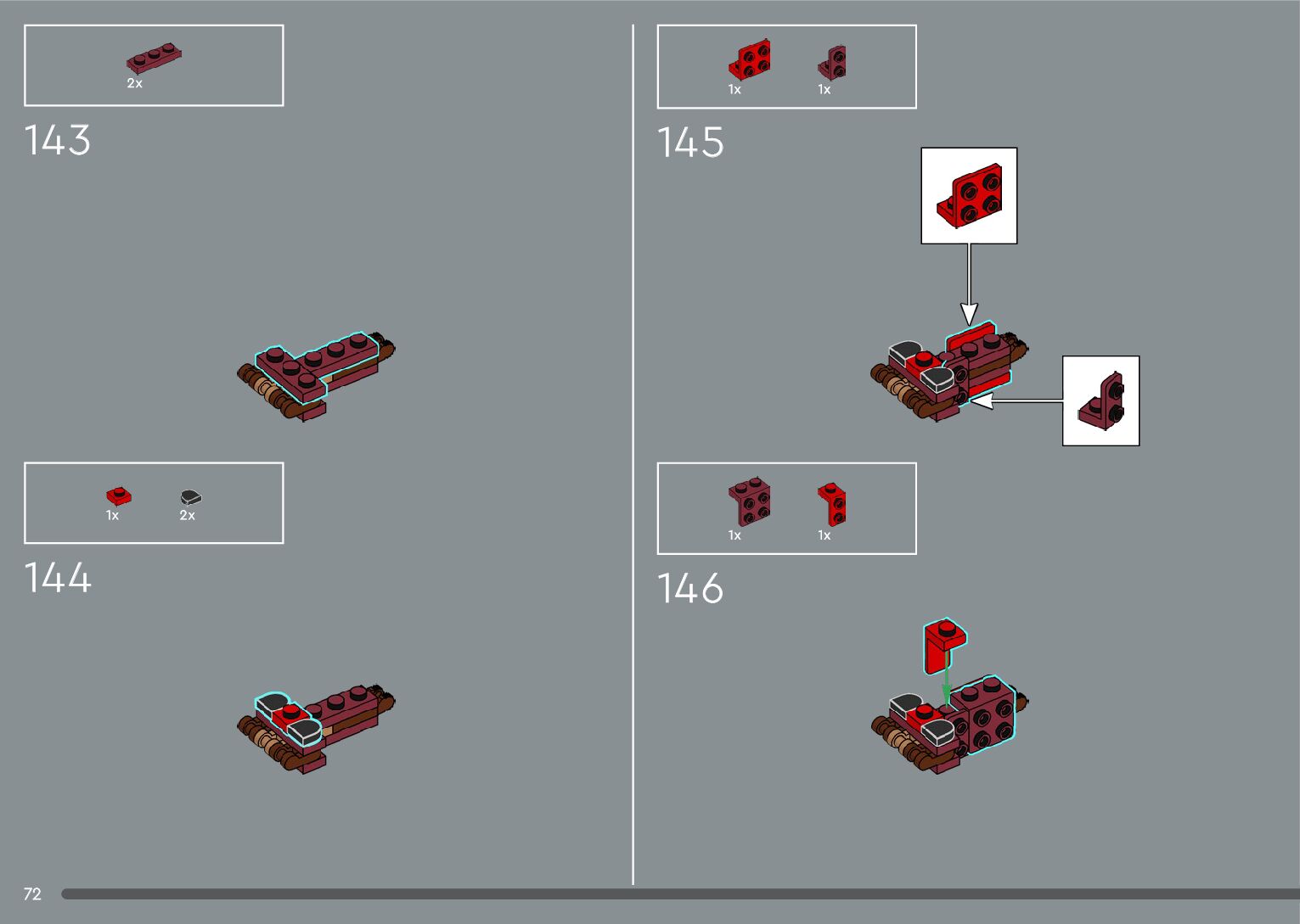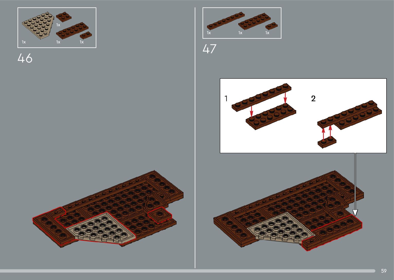 The assembly guide is prepared in a very understandable way for children and adult LEGO enthusiasts. A total of 556 picture galleries are shown, explaining the step-by-step construction stages for 4 different structures.