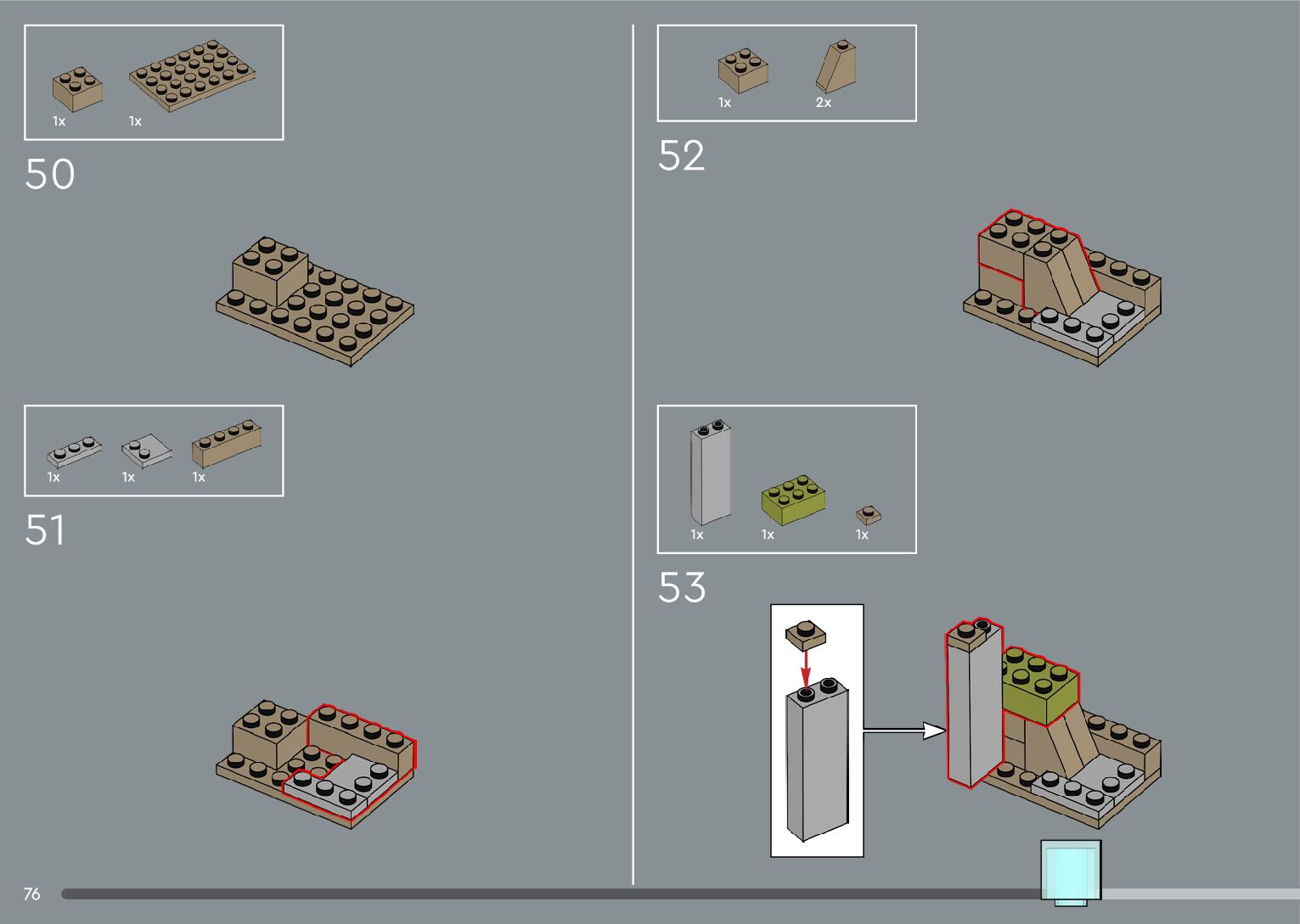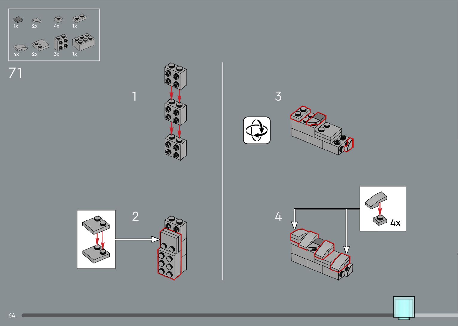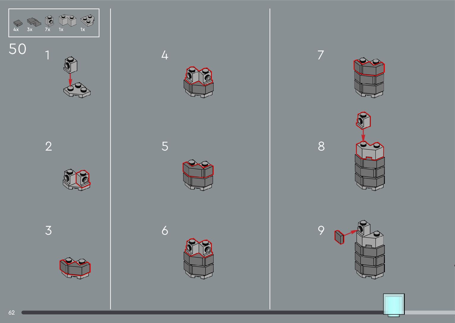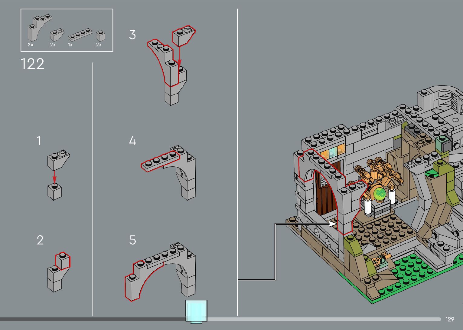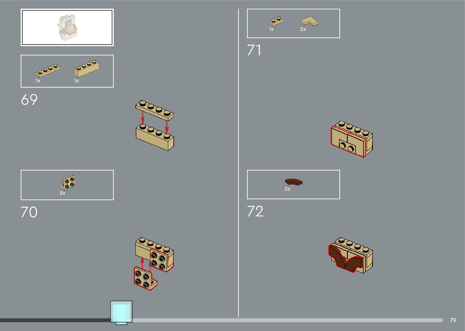 The assembly guide is prepared in a very understandable way for children and adult LEGO enthusiasts. A total of 556 picture galleries are shown, explaining the step-by-step construction stages for 4 different structures.