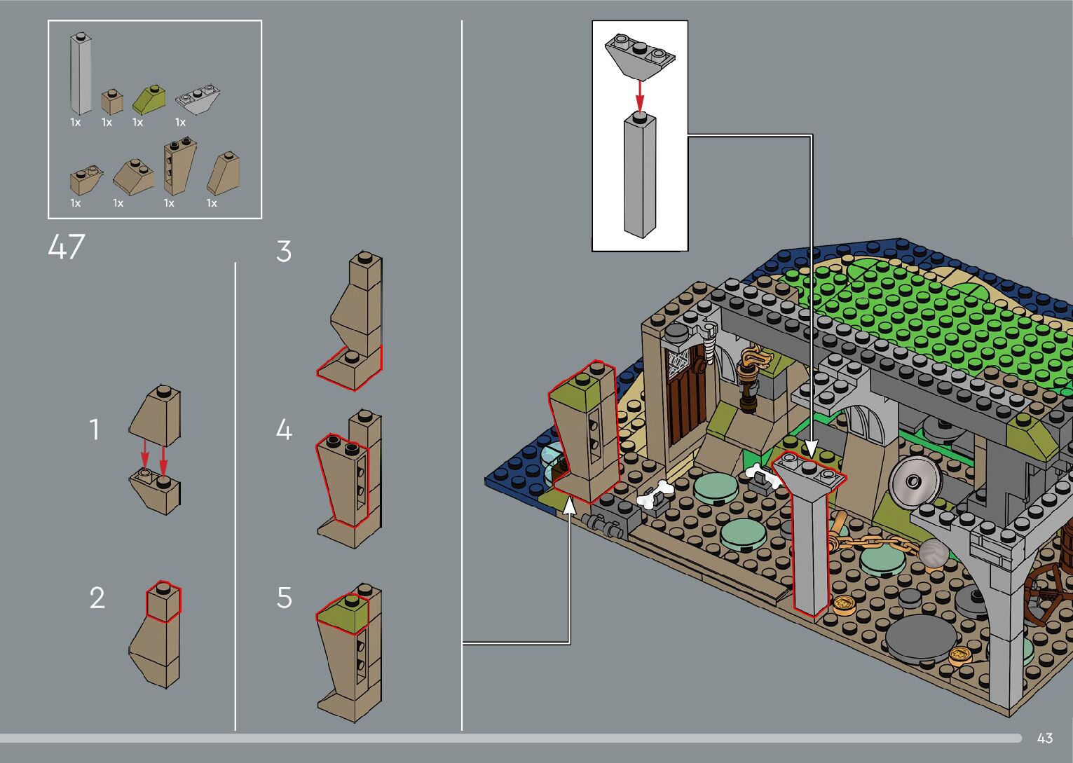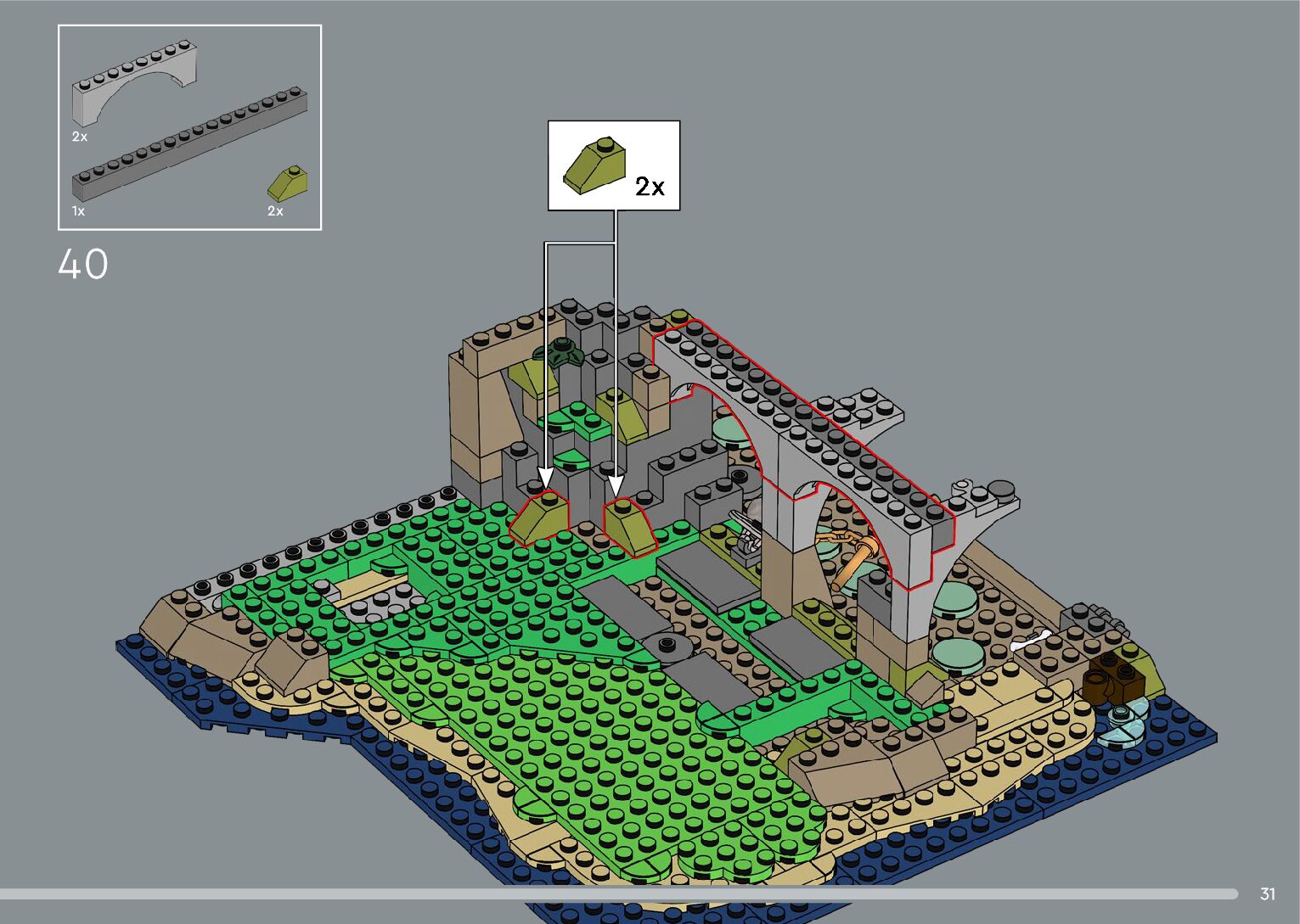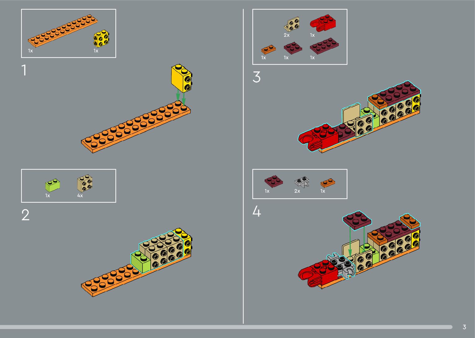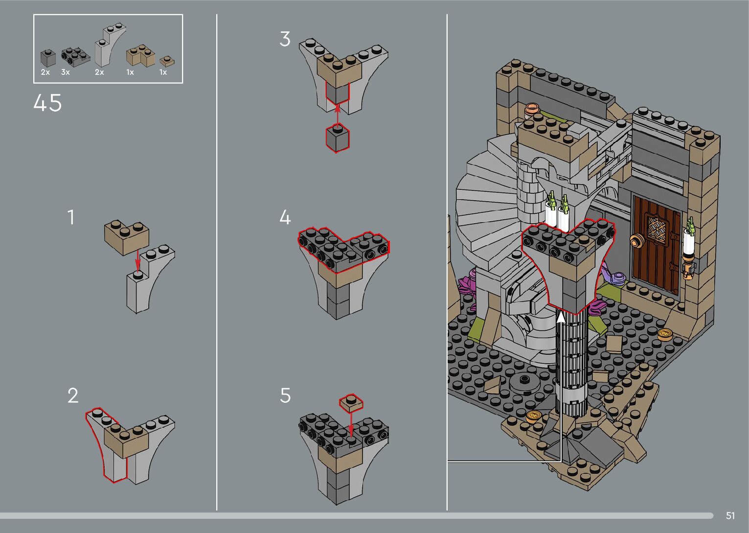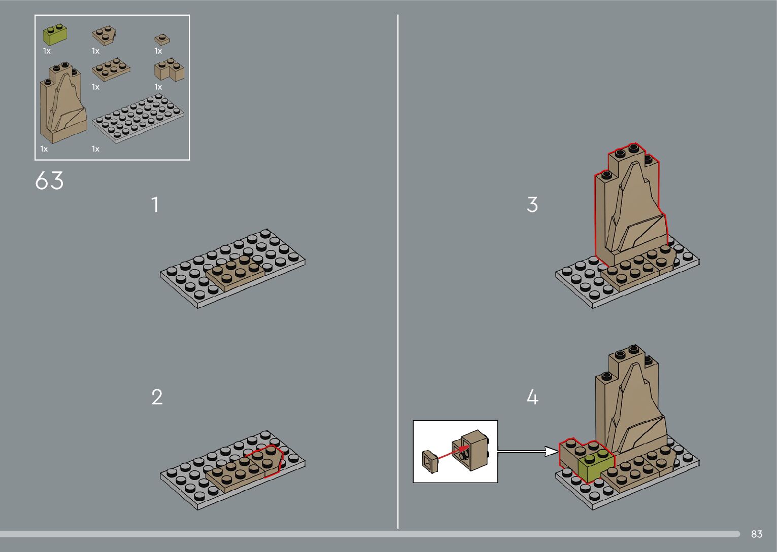 The assembly guide is prepared in a very understandable way for children and adult LEGO enthusiasts. A total of 556 picture galleries are shown, explaining the step-by-step construction stages for 4 different structures.