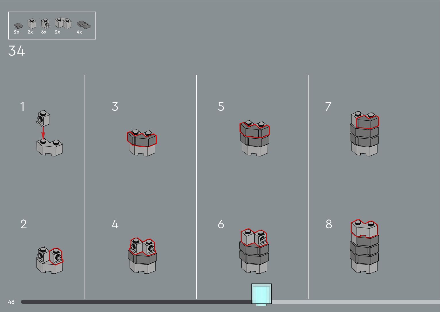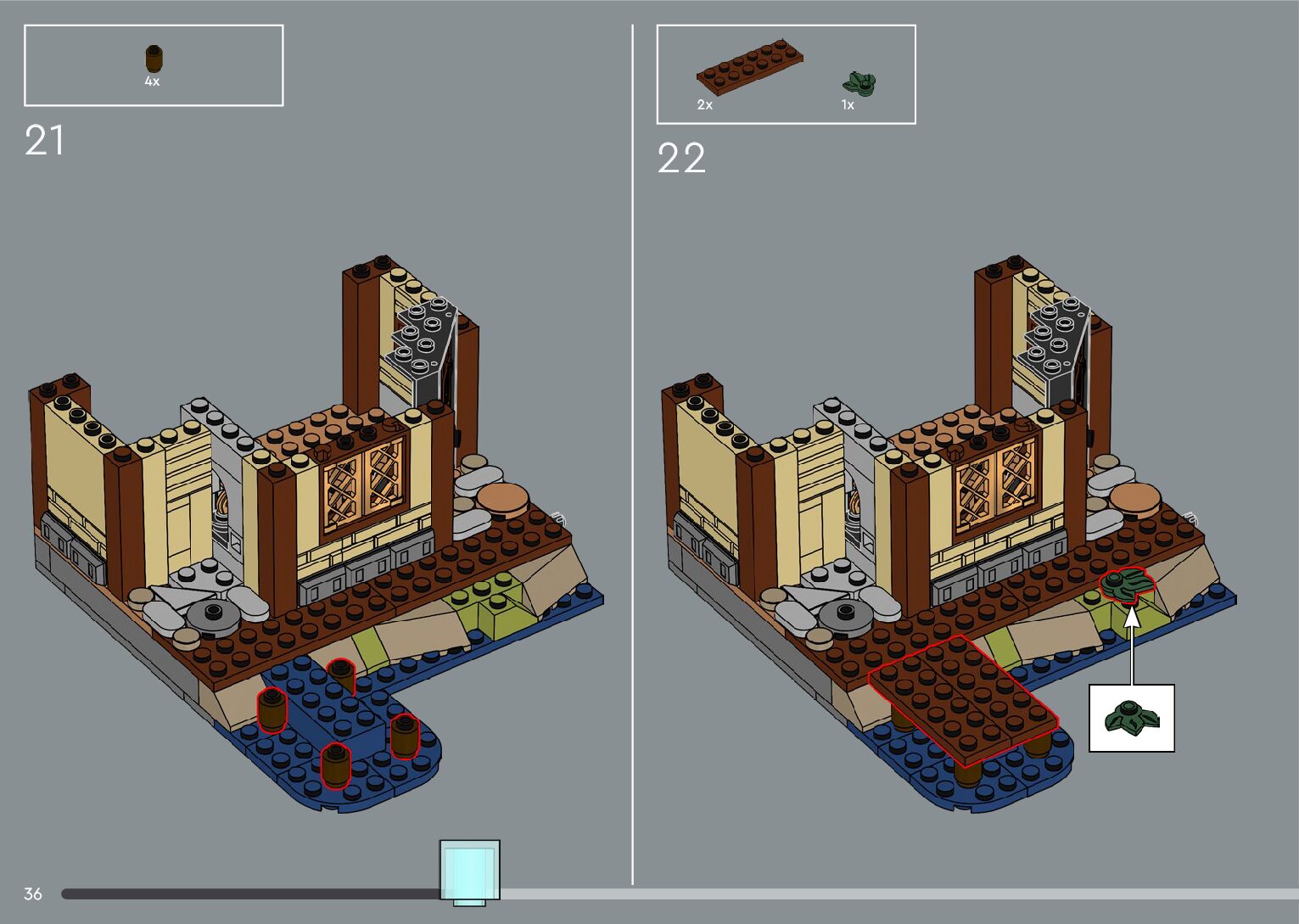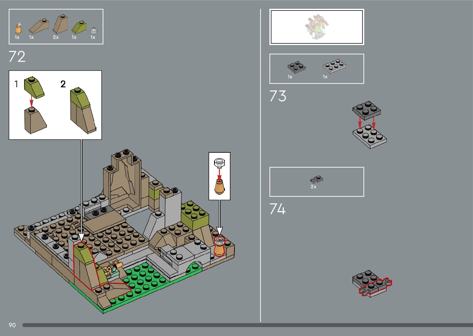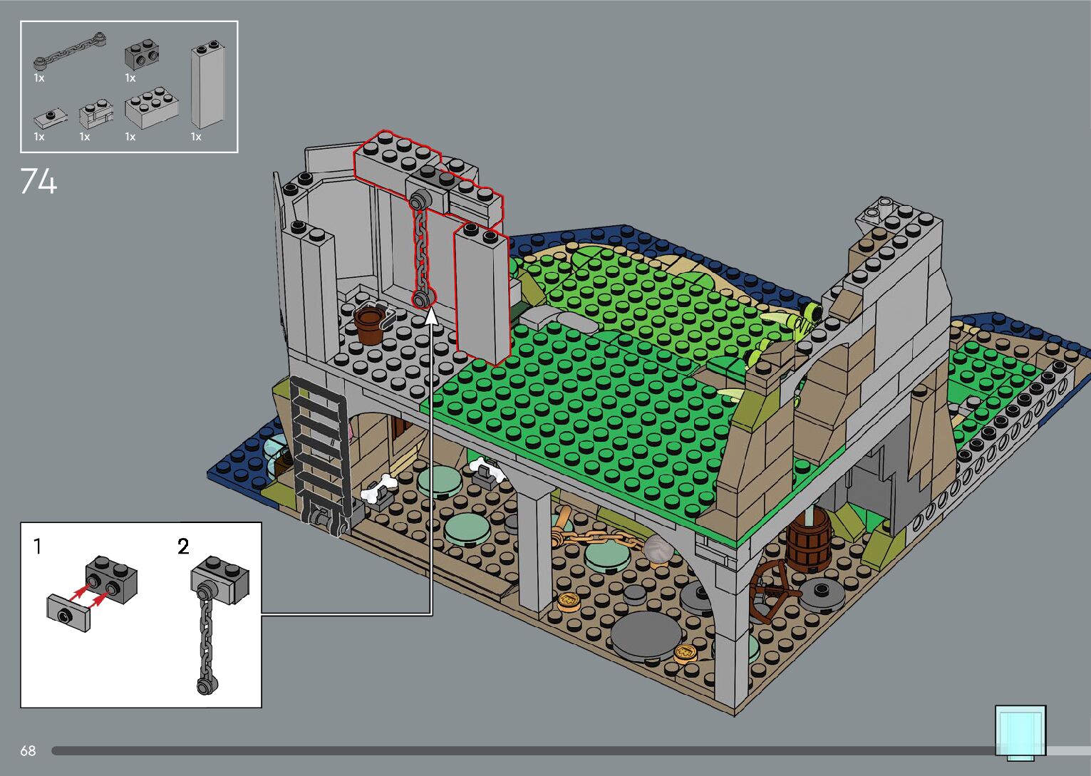 The assembly guide is prepared in a very understandable way for children and adult LEGO enthusiasts. A total of 556 picture galleries are shown, explaining the step-by-step construction stages for 4 different structures.