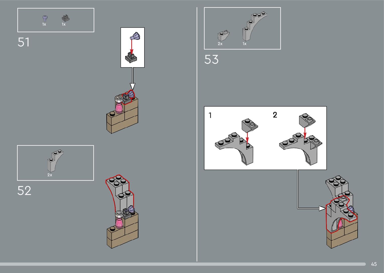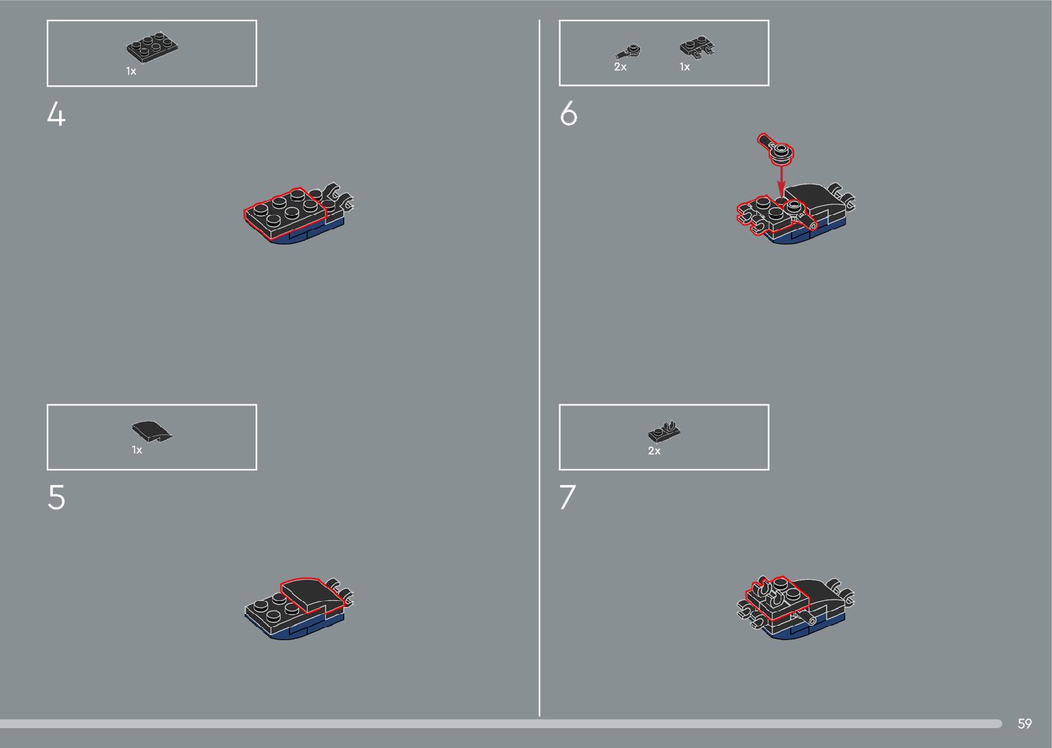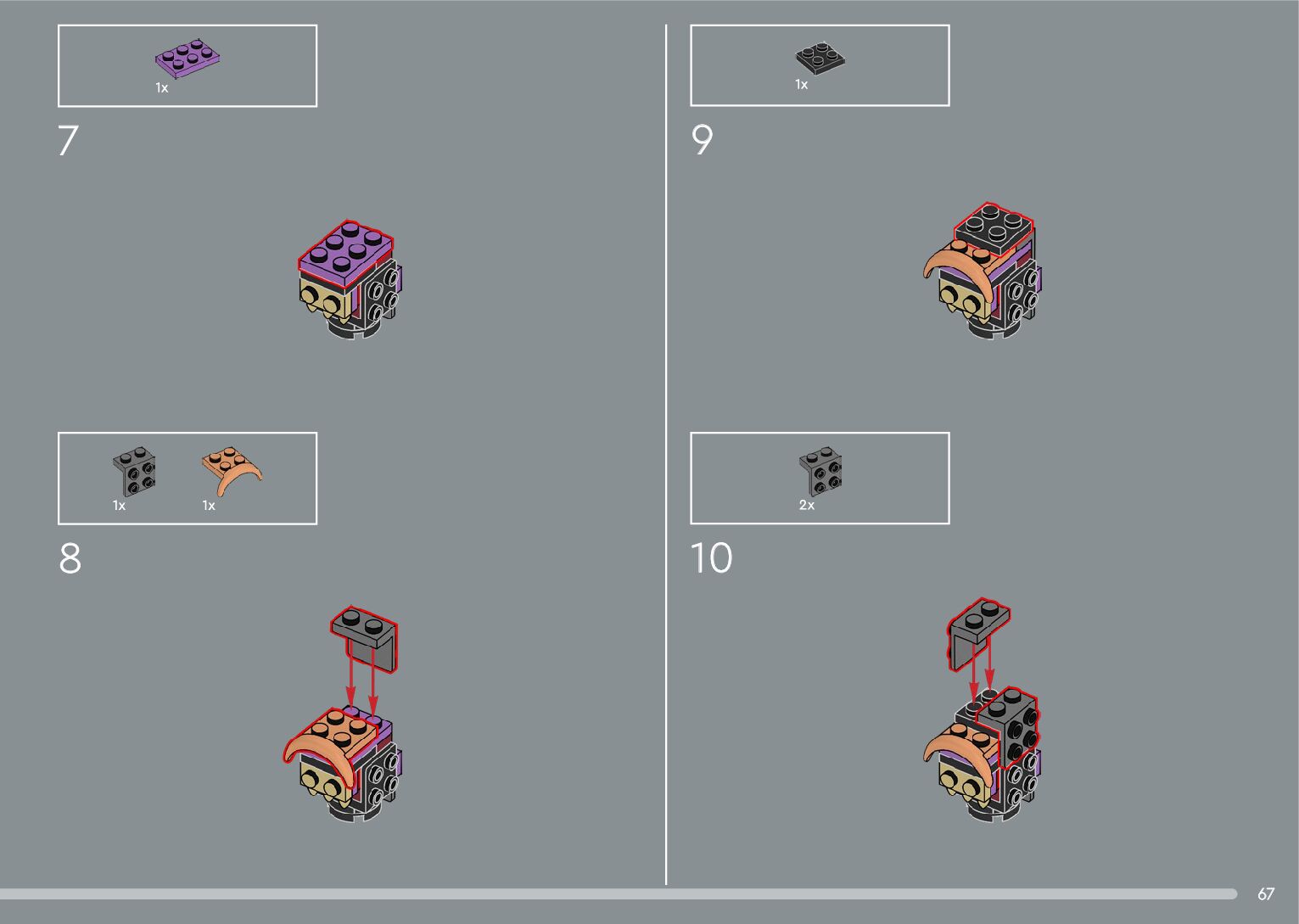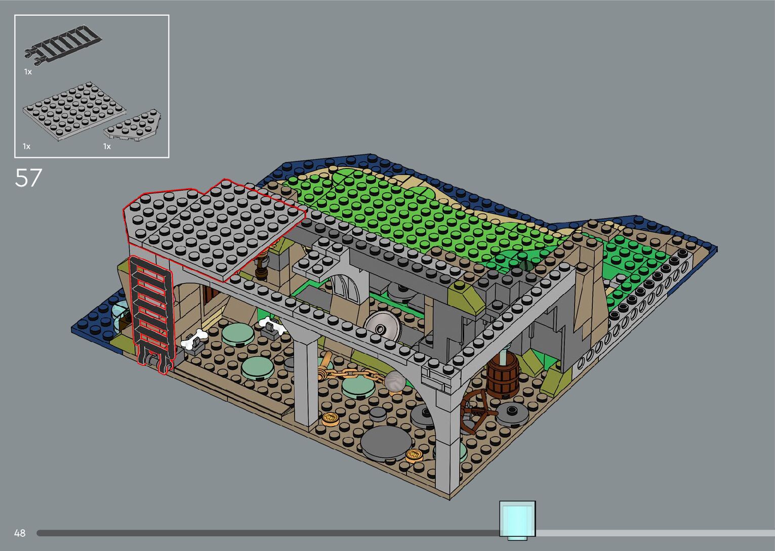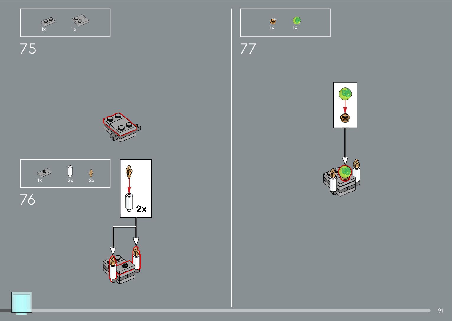The assembly guide is prepared in a very understandable way for children and adult LEGO enthusiasts. A total of 556 picture galleries are shown, explaining the step-by-step construction stages for 4 different structures.