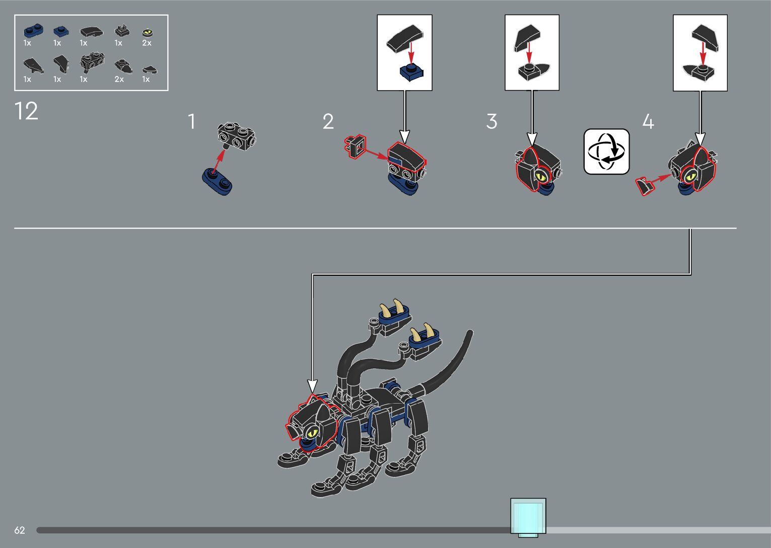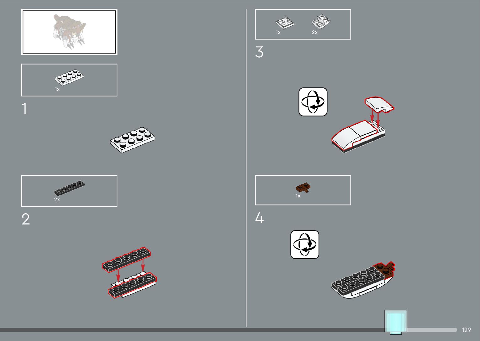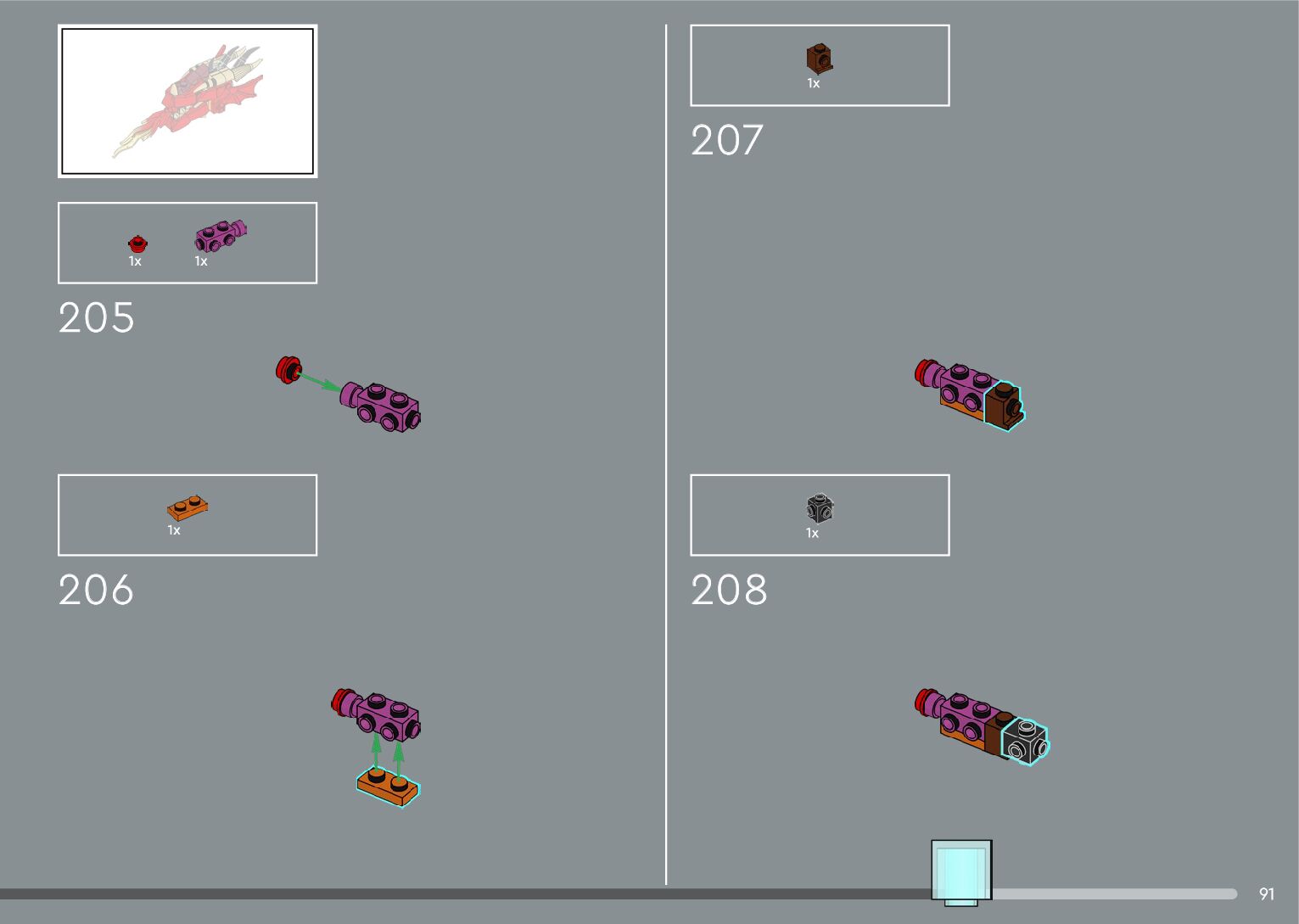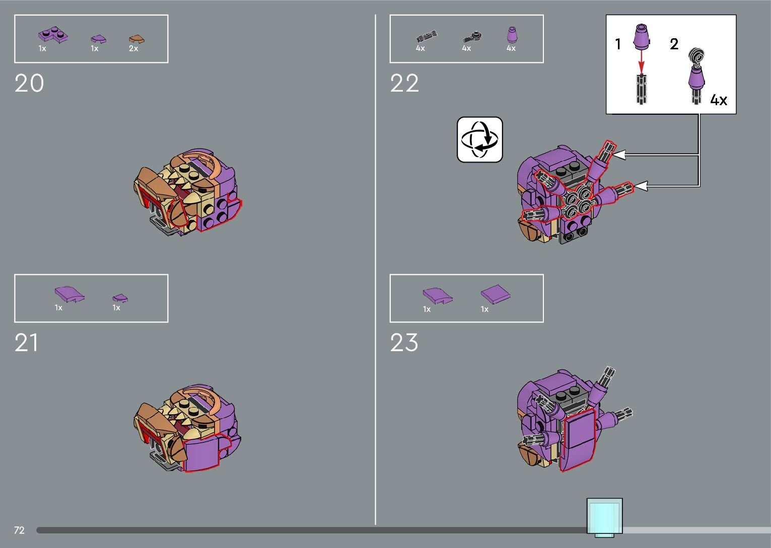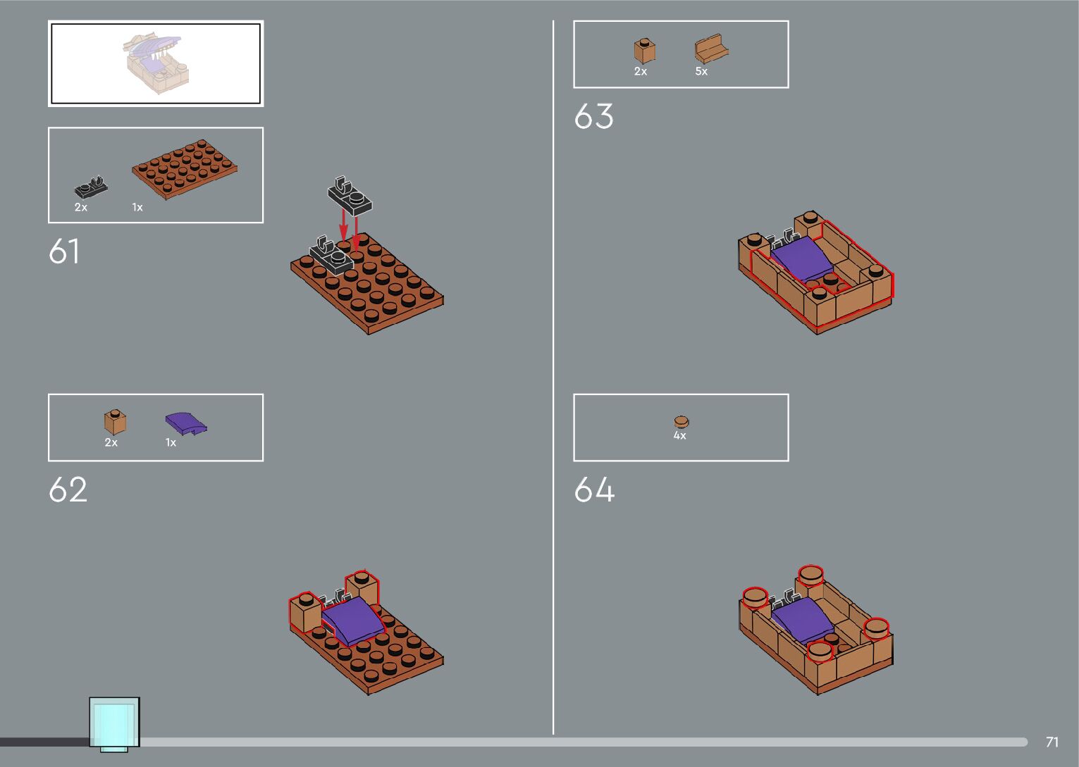 The assembly guide is prepared in a very understandable way for children and adult LEGO enthusiasts. A total of 556 picture galleries are shown, explaining the step-by-step construction stages for 4 different structures.