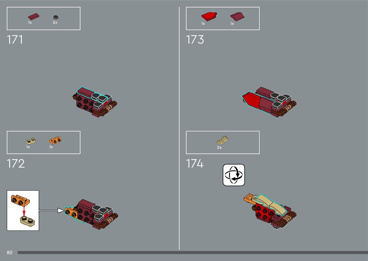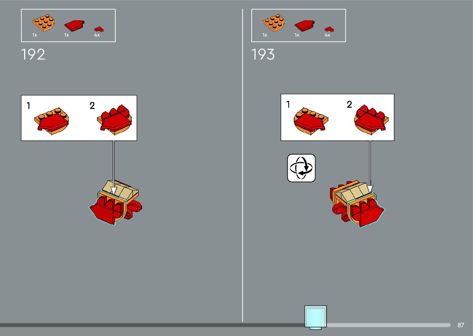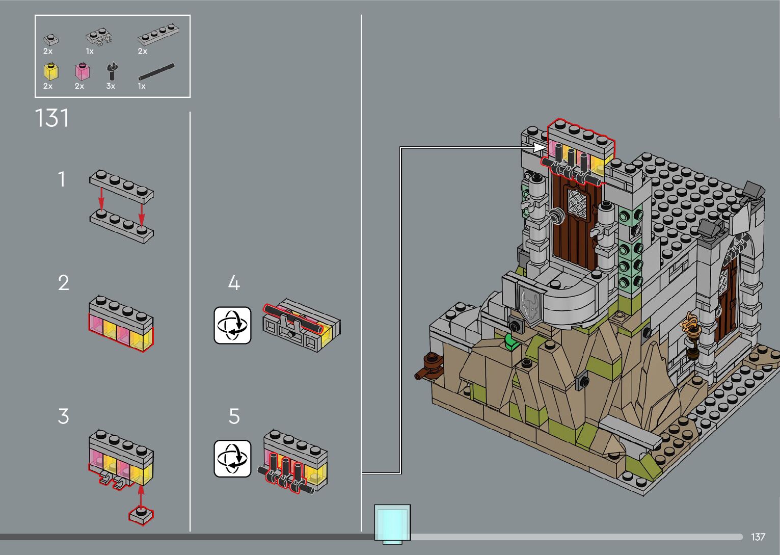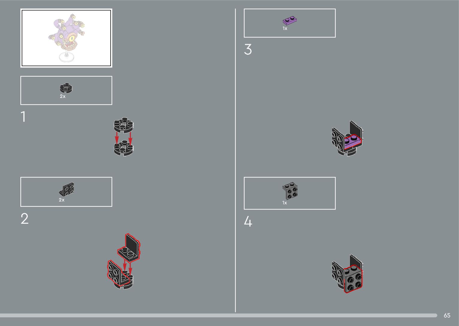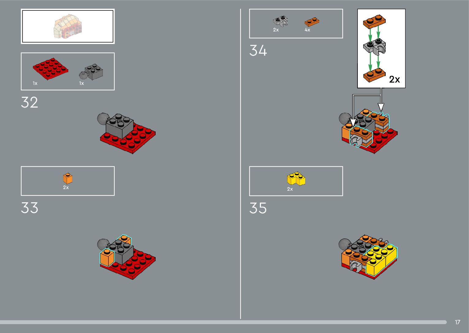 The assembly guide is prepared in a very understandable way for children and adult LEGO enthusiasts. A total of 556 picture galleries are shown, explaining the step-by-step construction stages for 4 different structures.