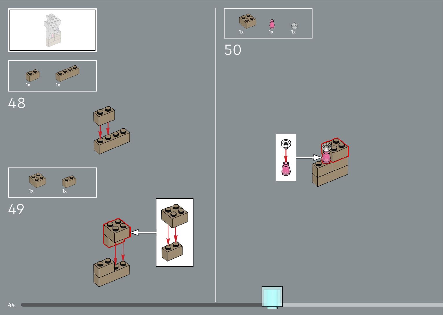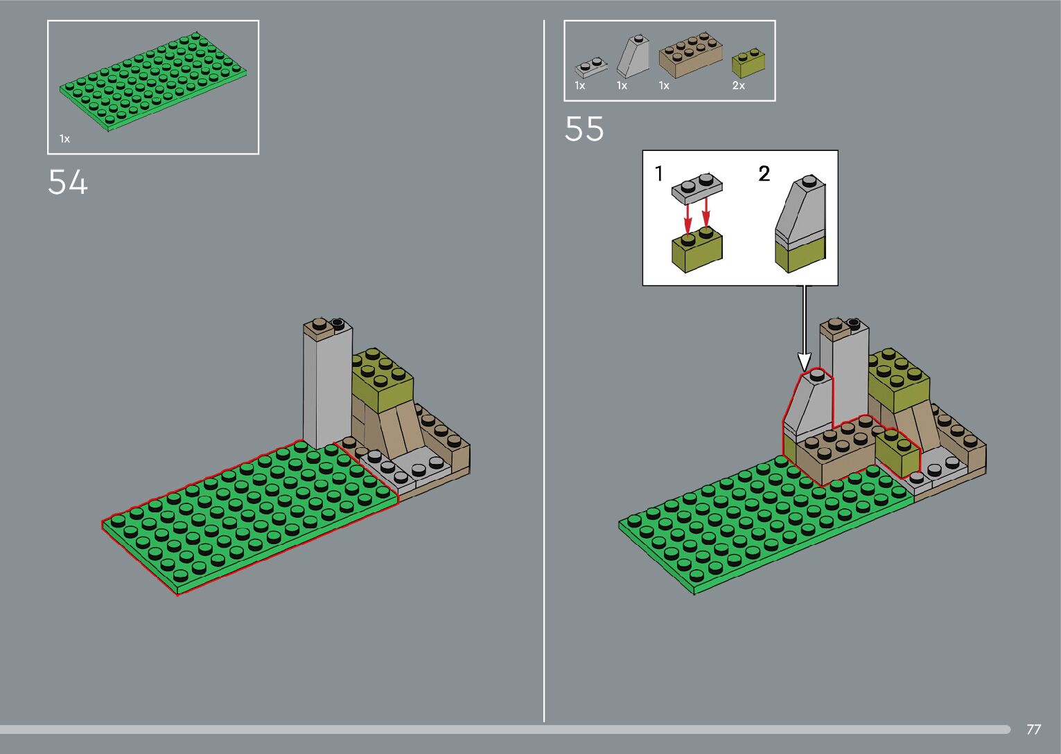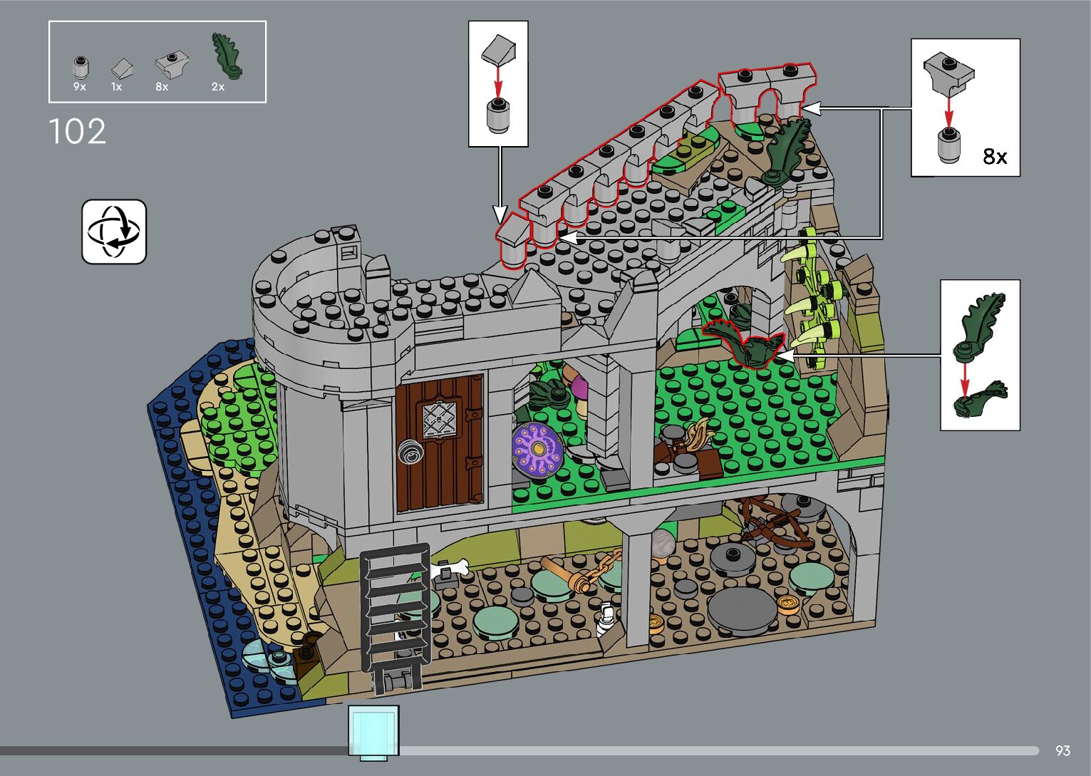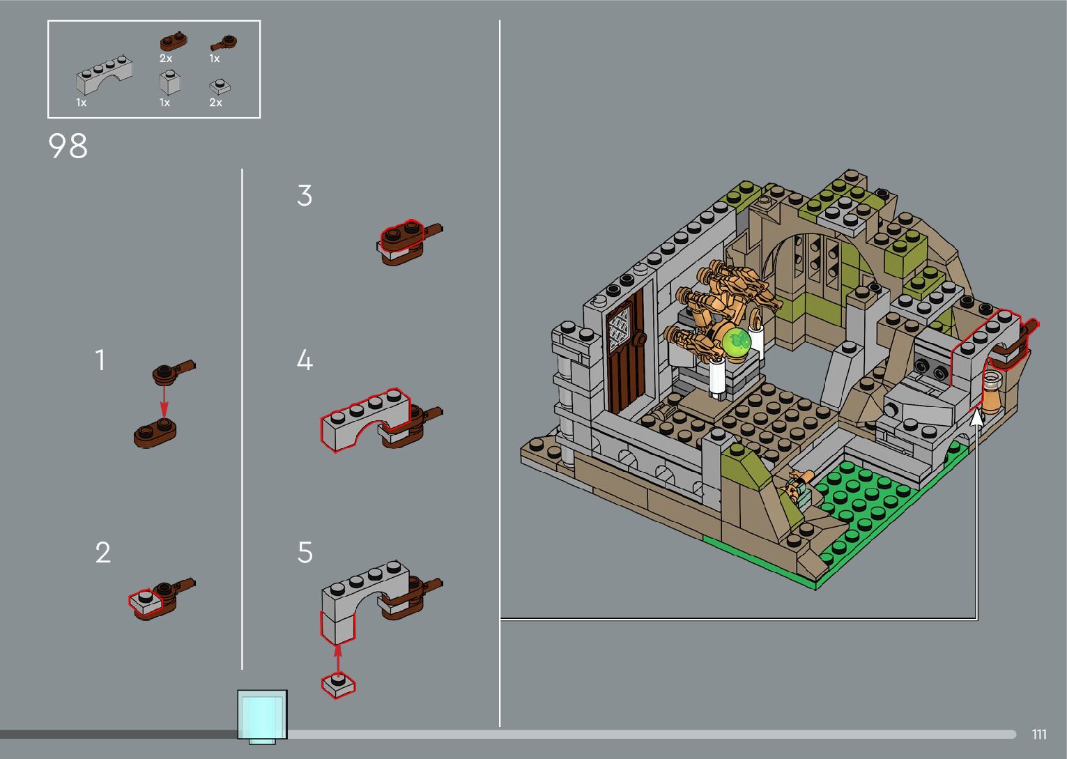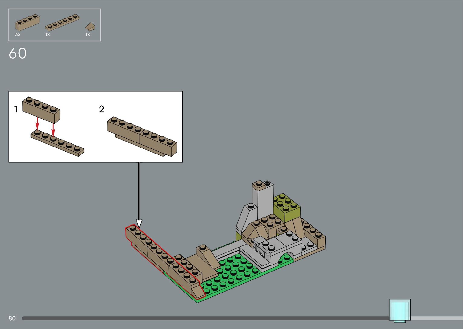 The assembly guide is prepared in a very understandable way for children and adult LEGO enthusiasts. A total of 556 picture galleries are shown, explaining the step-by-step construction stages for 4 different structures.