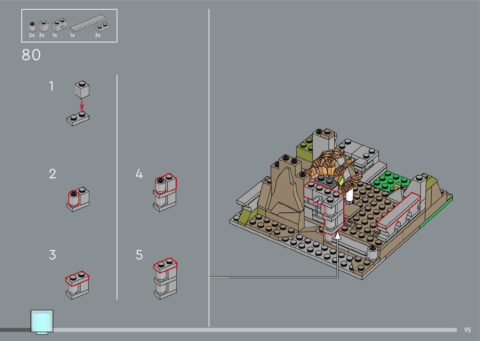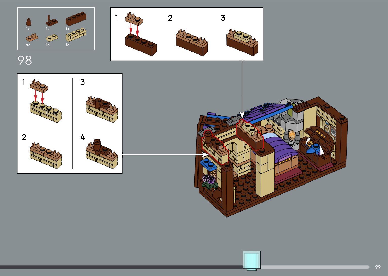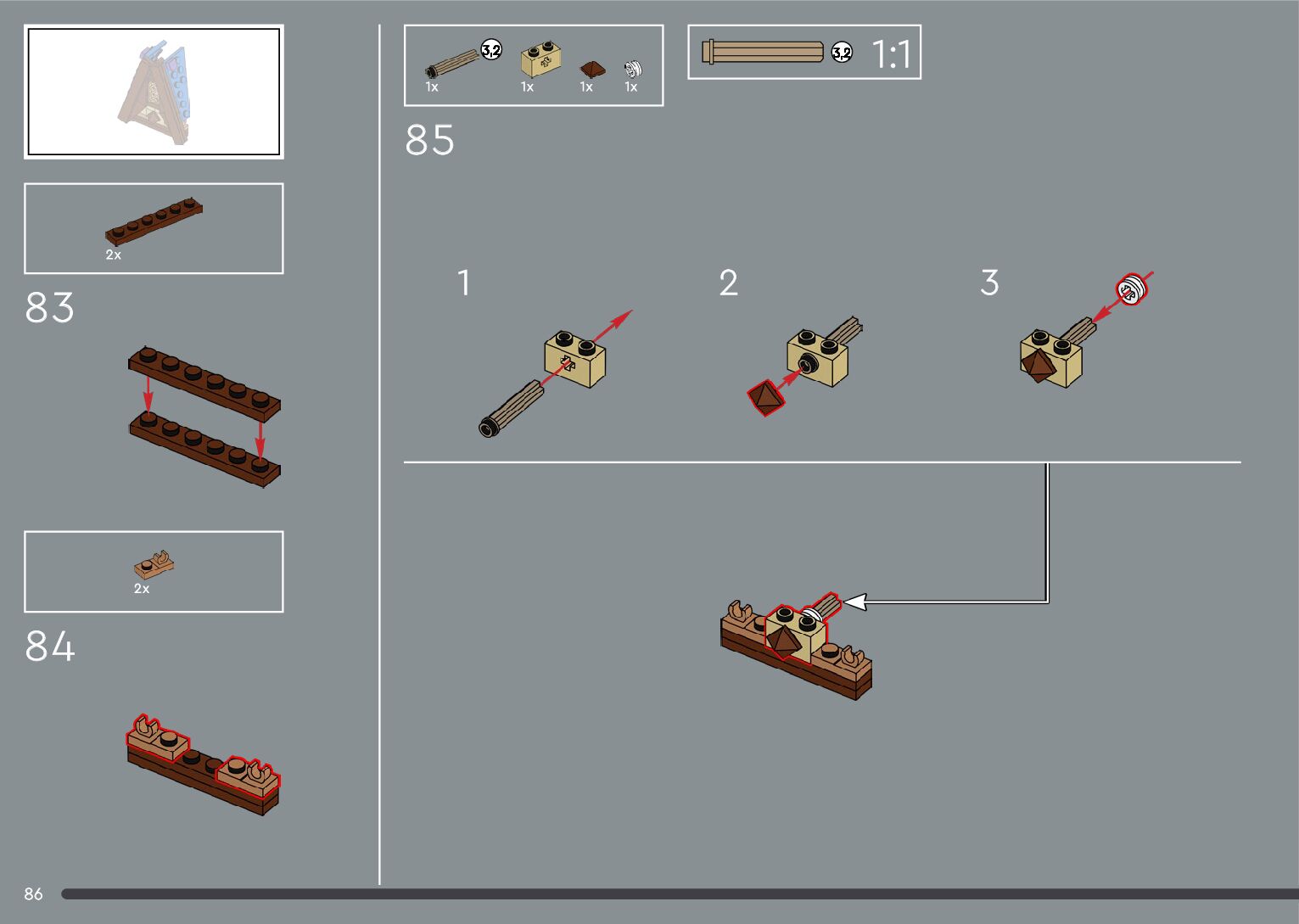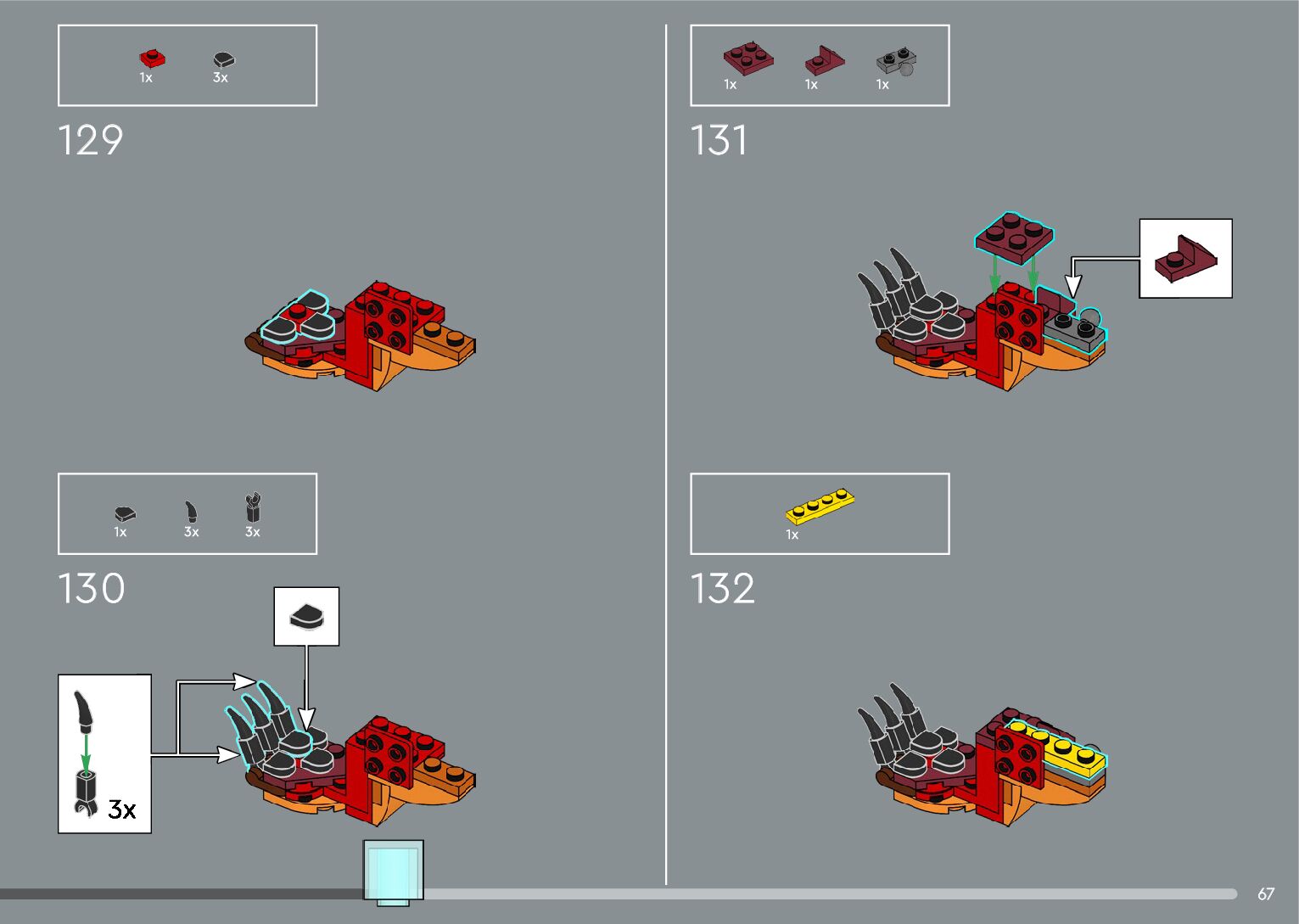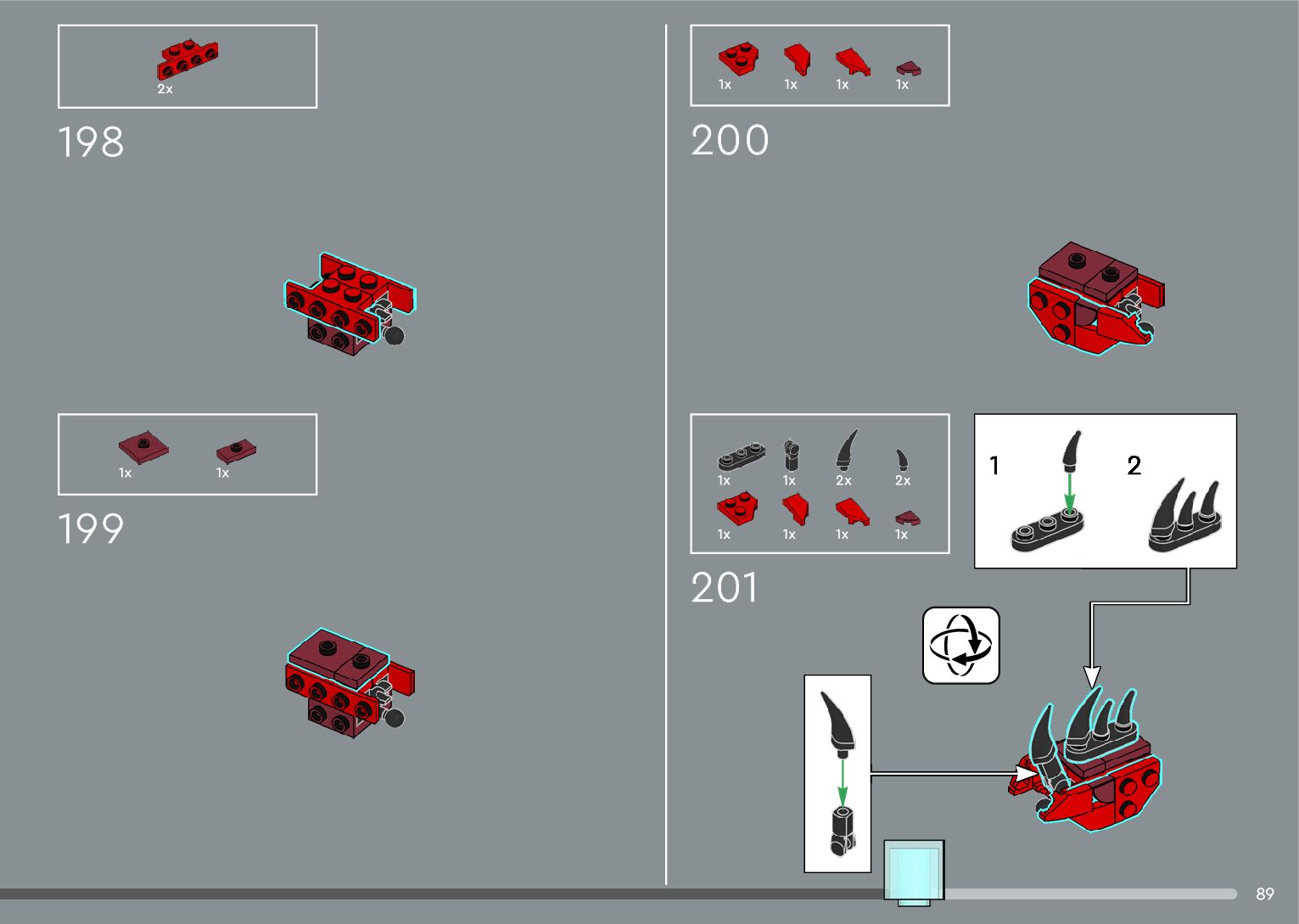 The assembly guide is prepared in a very understandable way for children and adult LEGO enthusiasts. A total of 556 picture galleries are shown, explaining the step-by-step construction stages for 4 different structures.