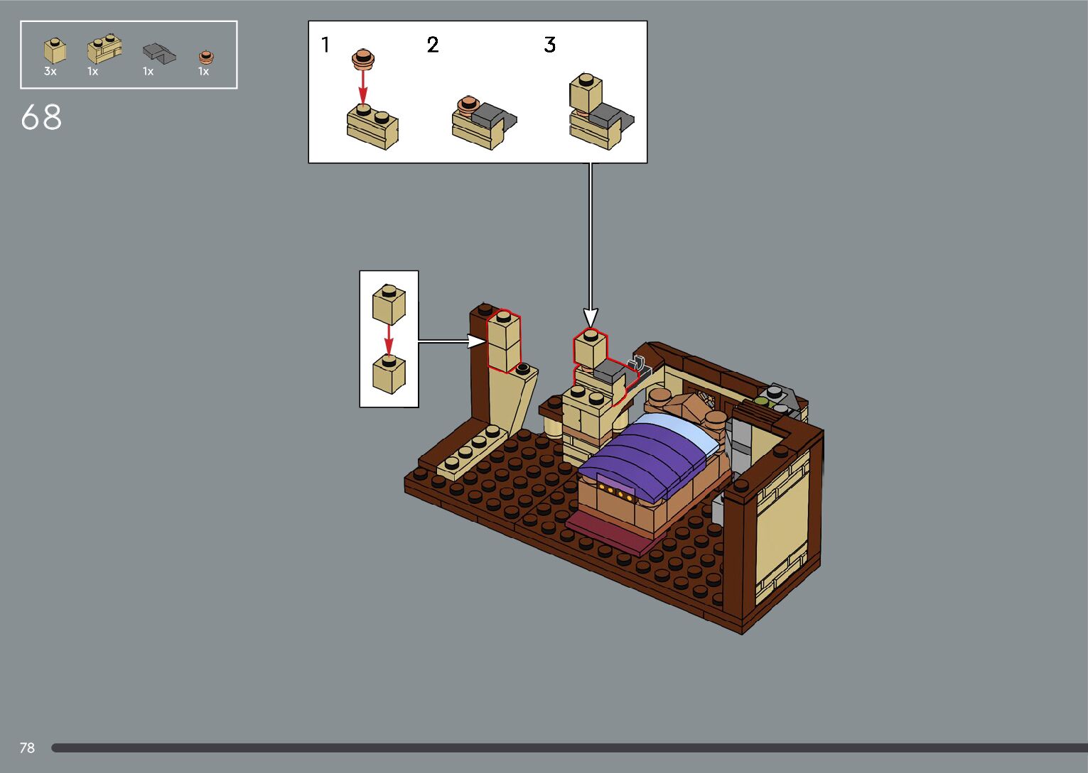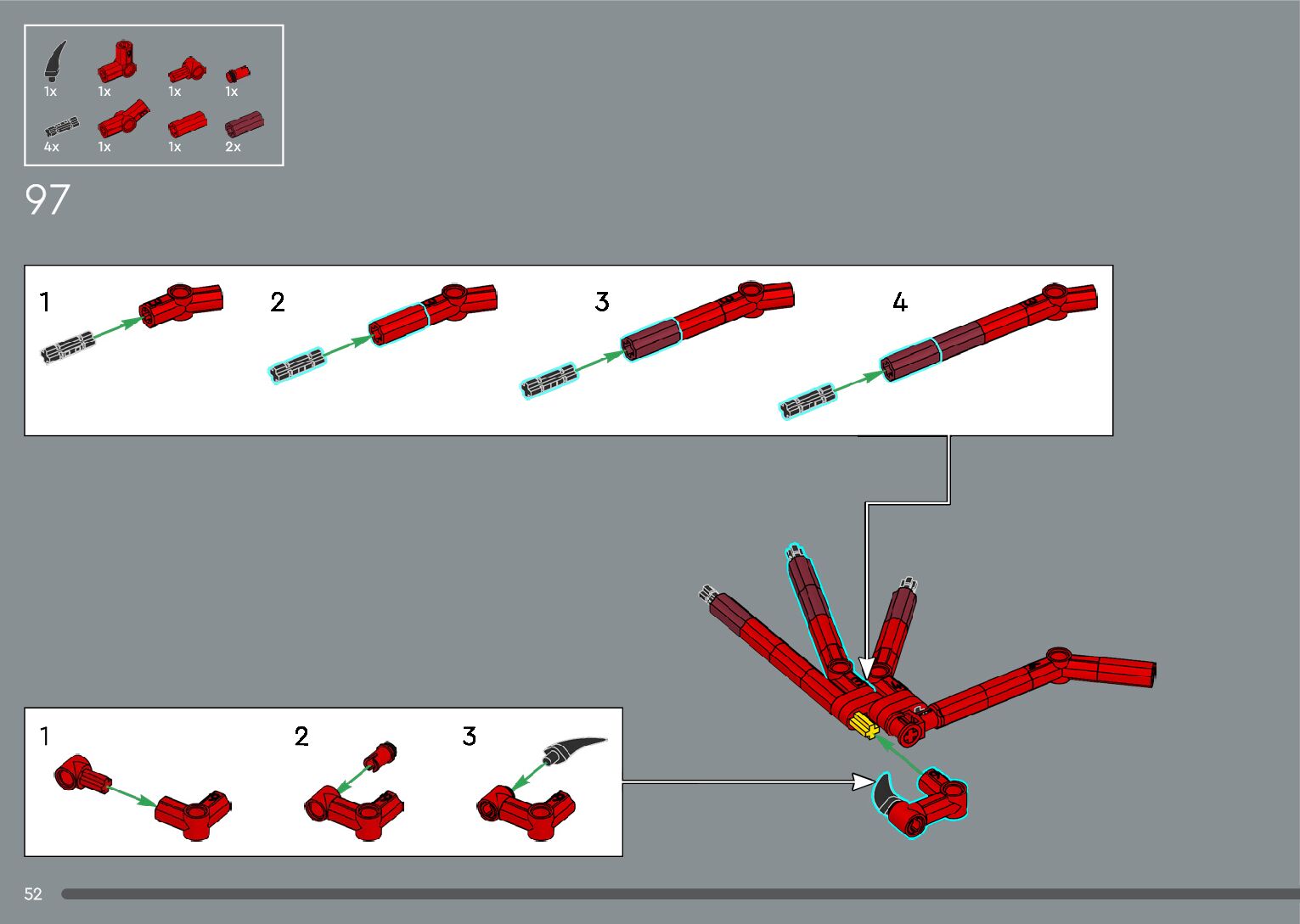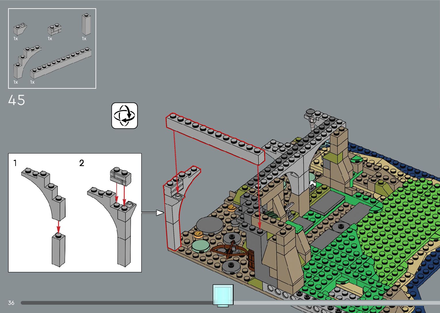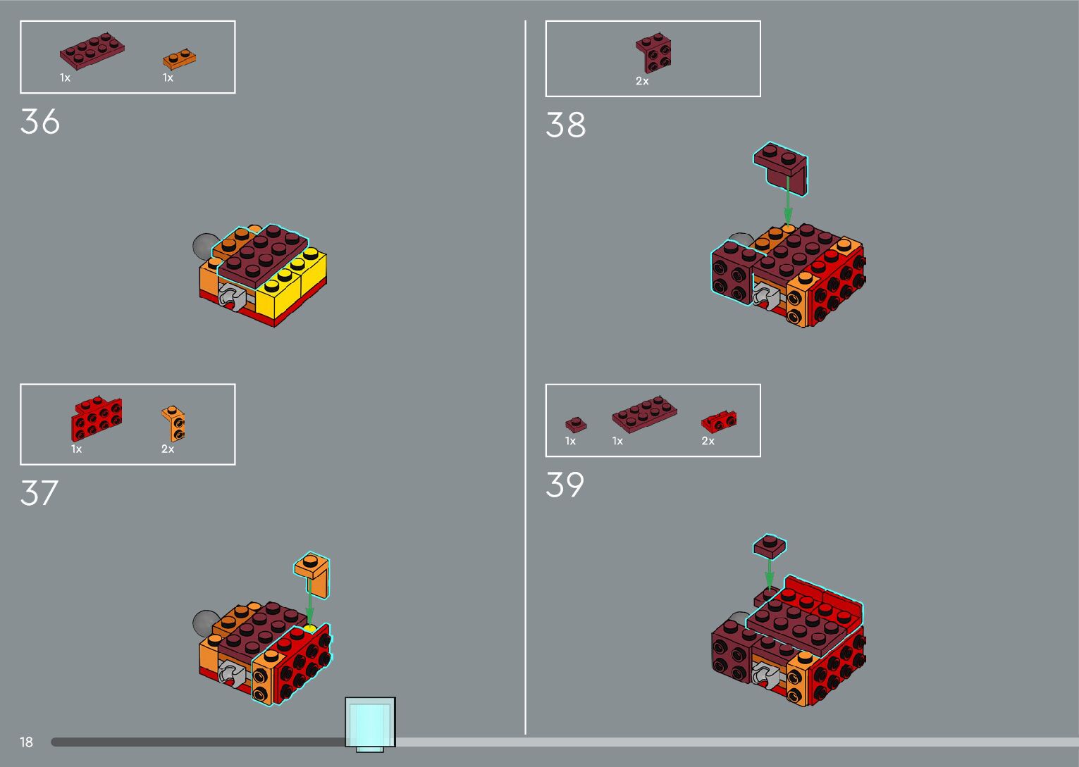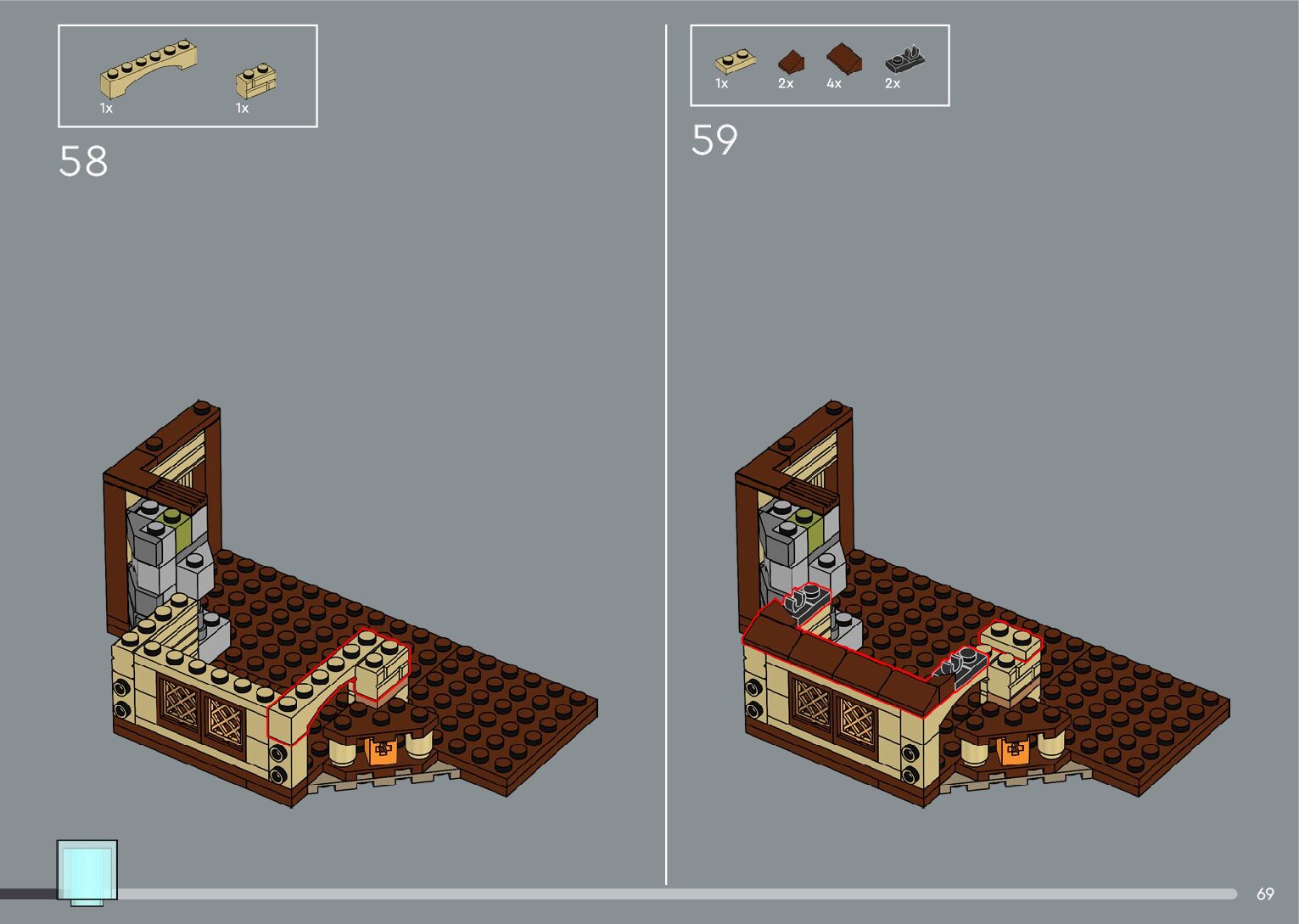 The assembly guide is prepared in a very understandable way for children and adult LEGO enthusiasts. A total of 556 picture galleries are shown, explaining the step-by-step construction stages for 4 different structures.