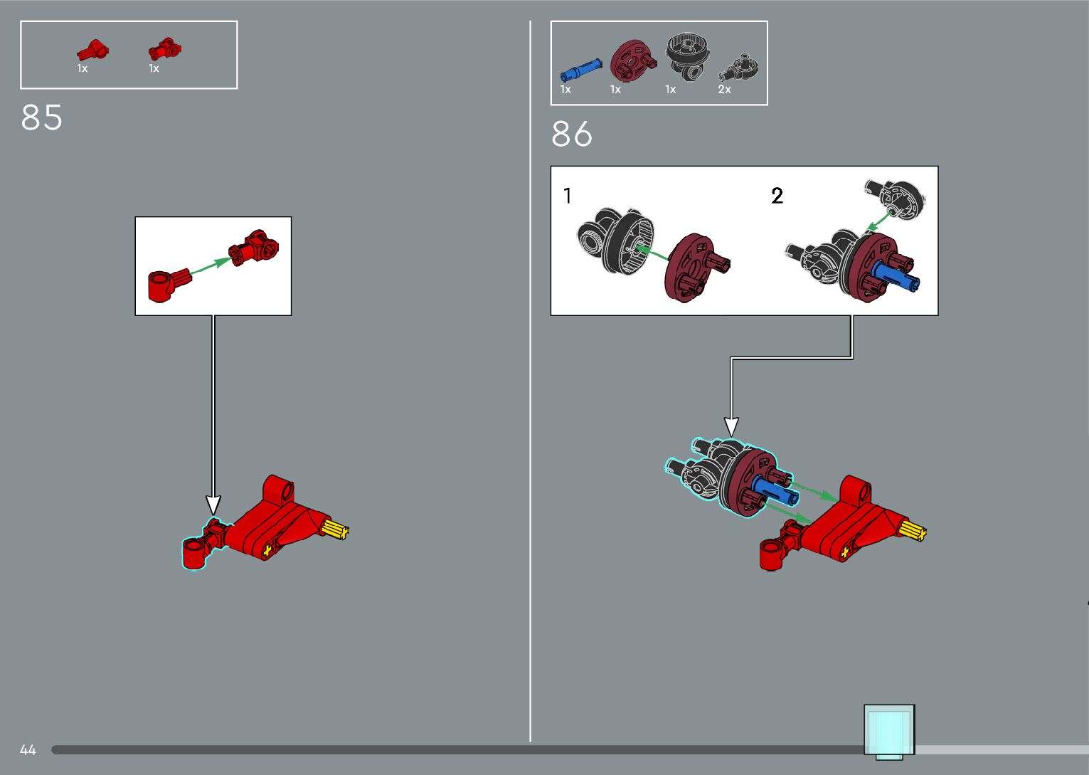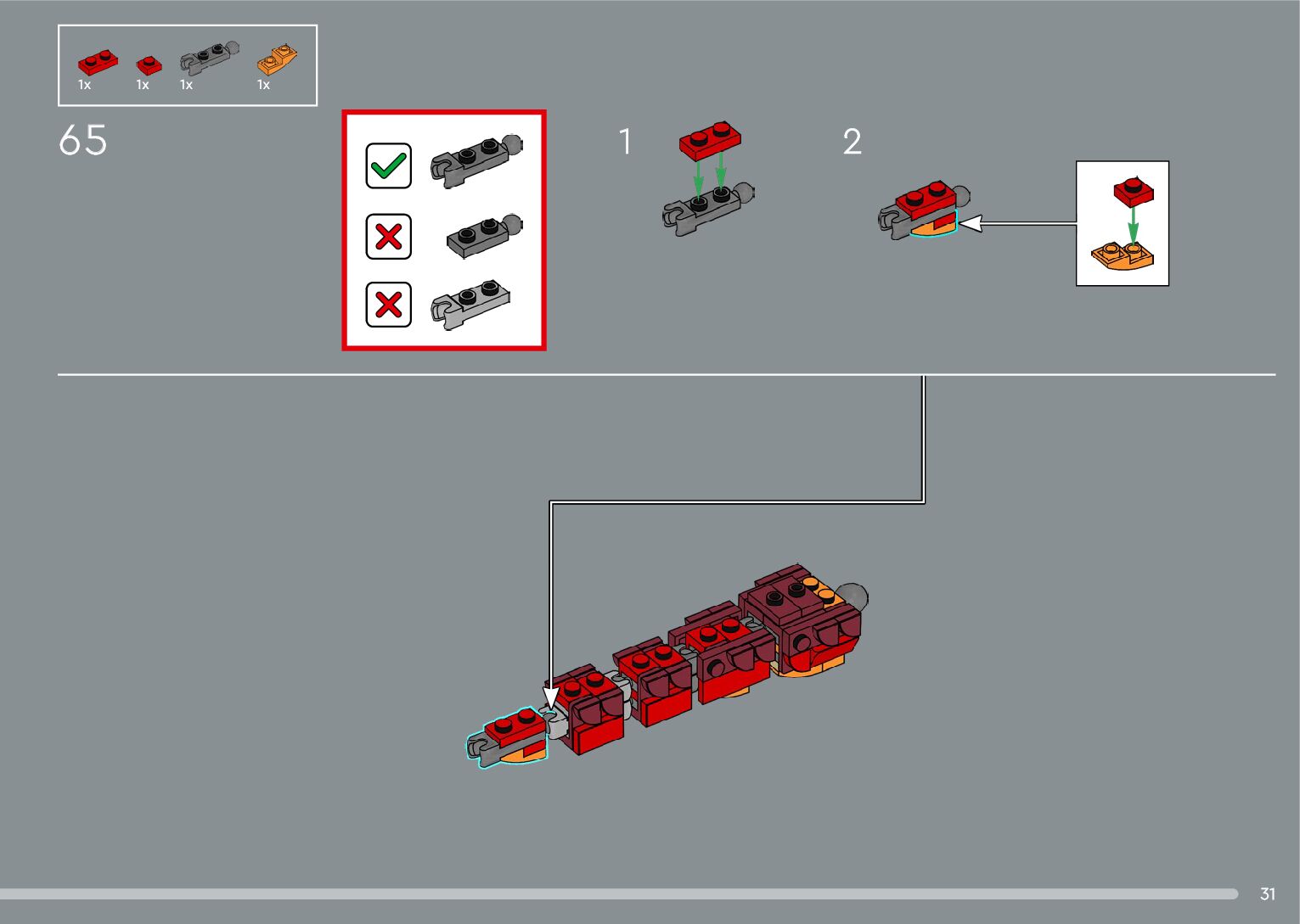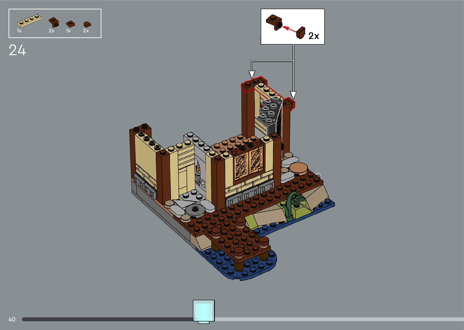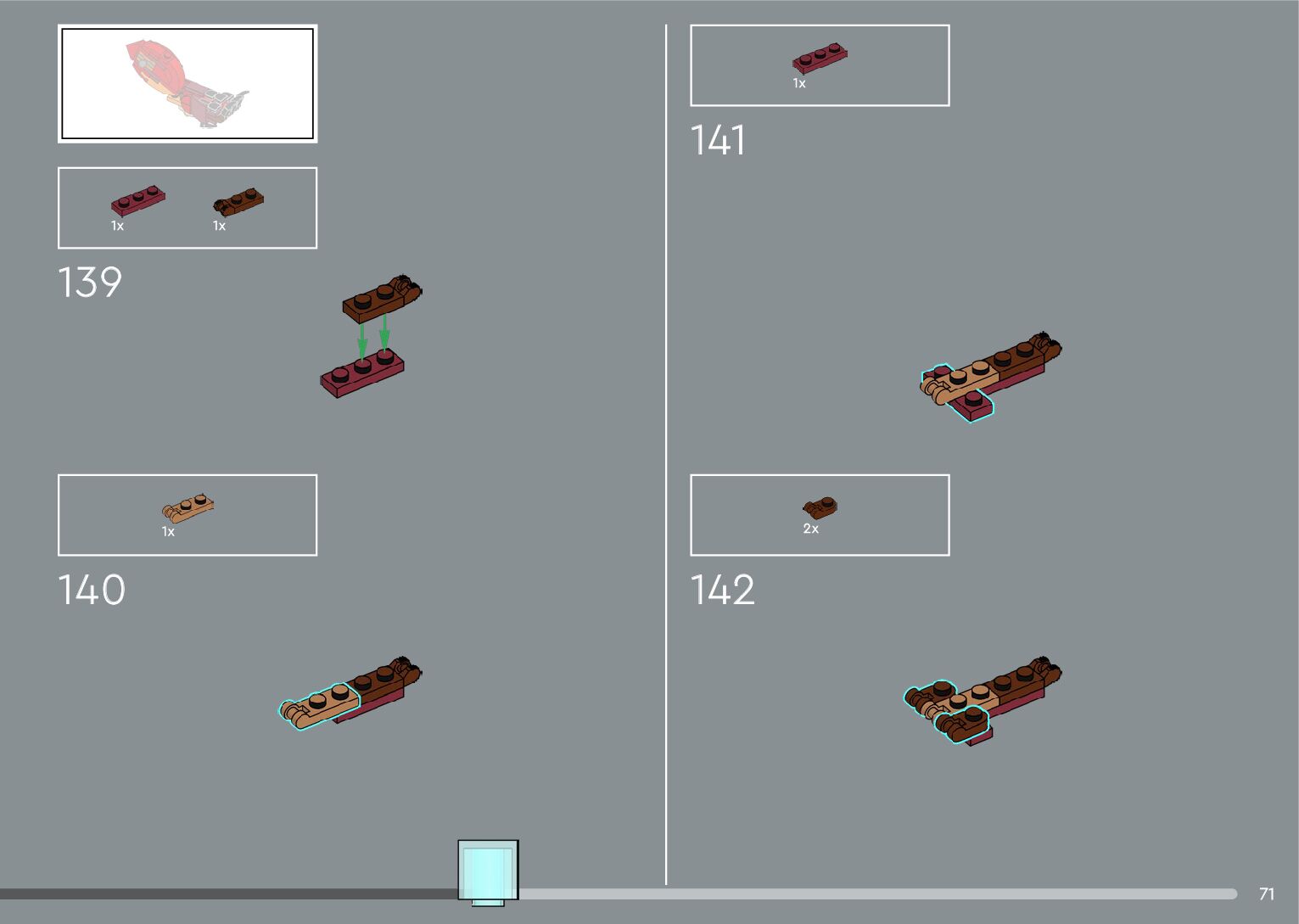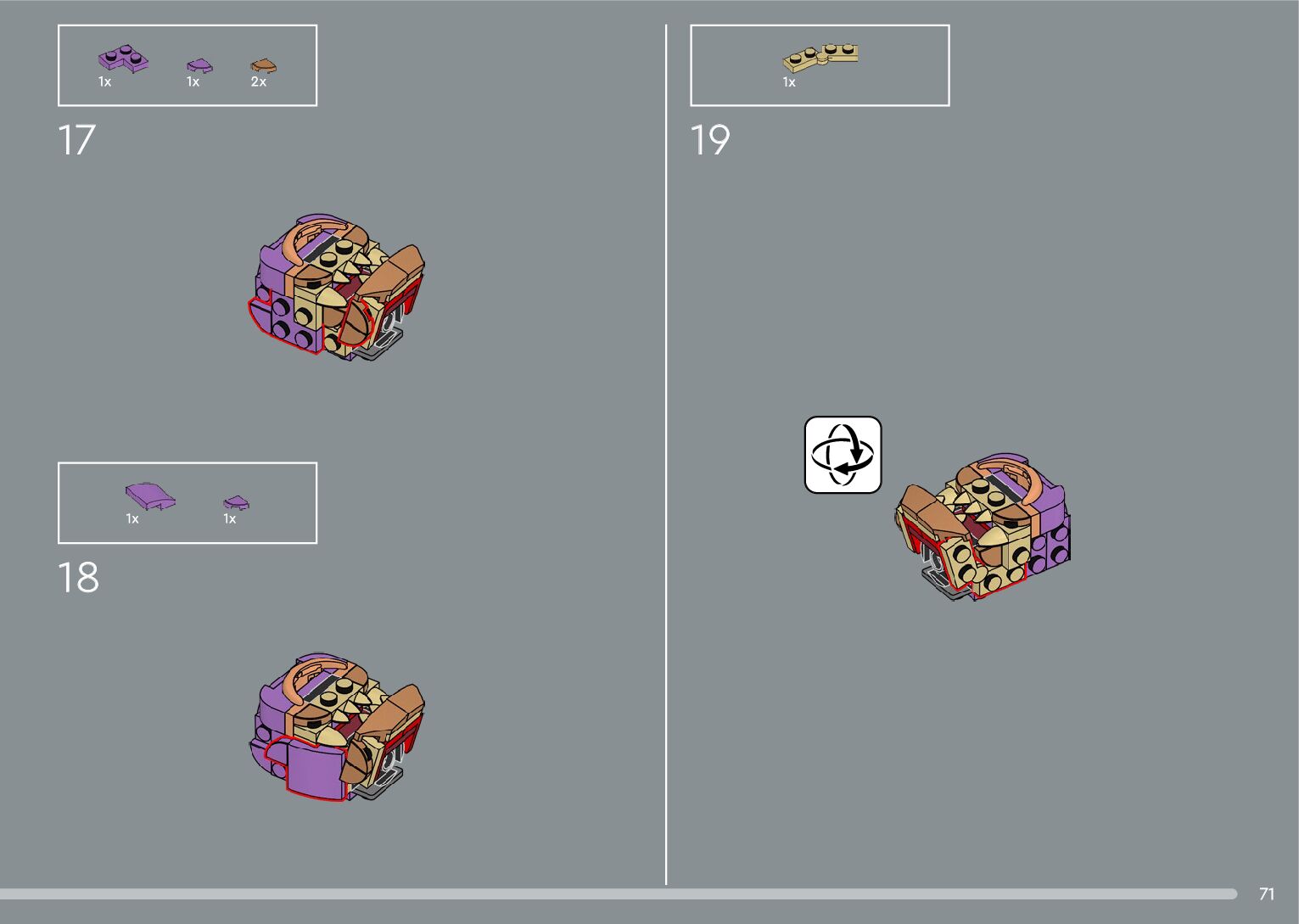 The assembly guide is prepared in a very understandable way for children and adult LEGO enthusiasts. A total of 556 picture galleries are shown, explaining the step-by-step construction stages for 4 different structures.