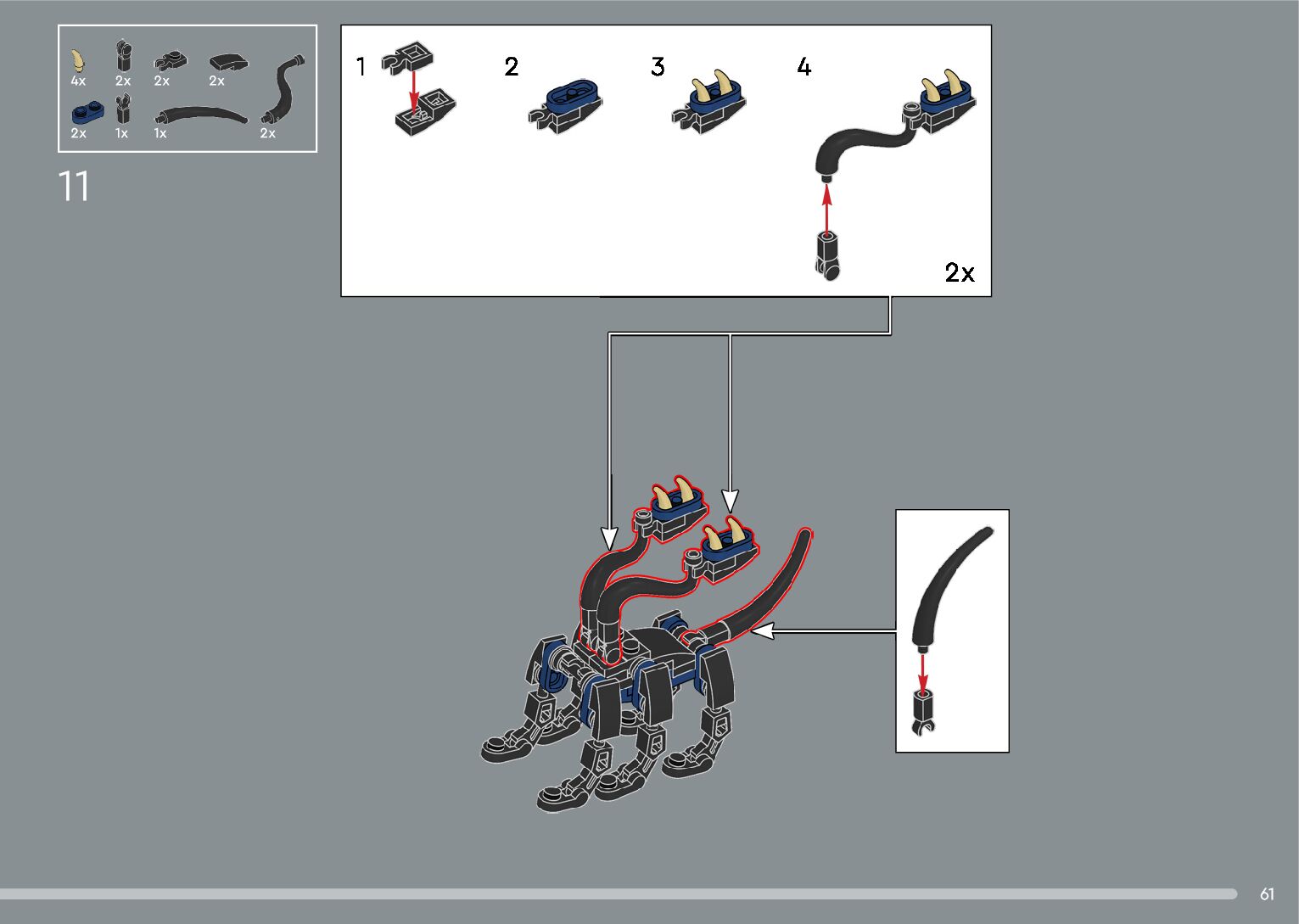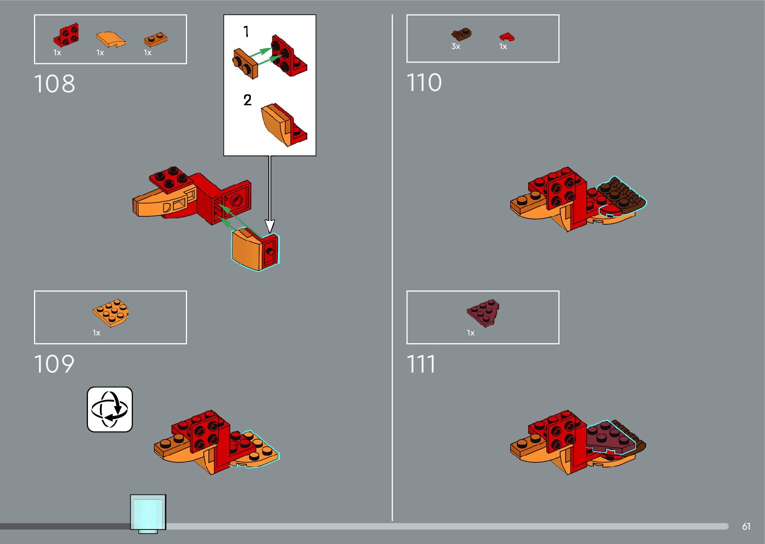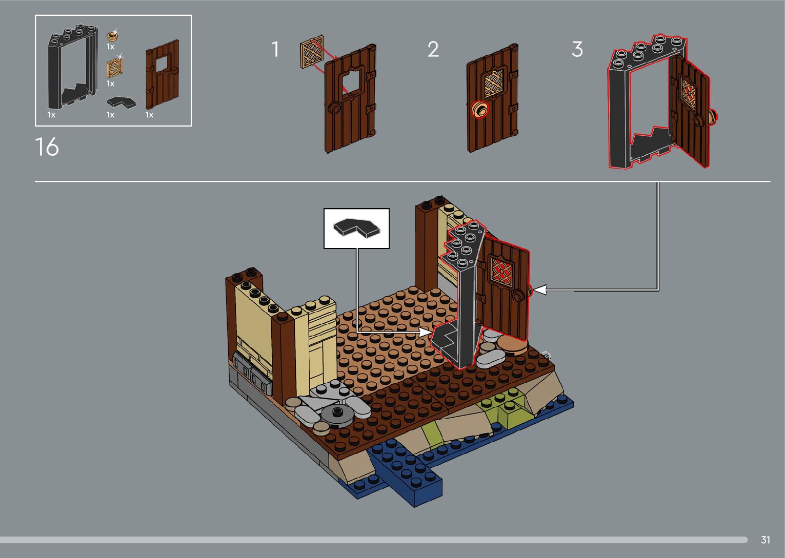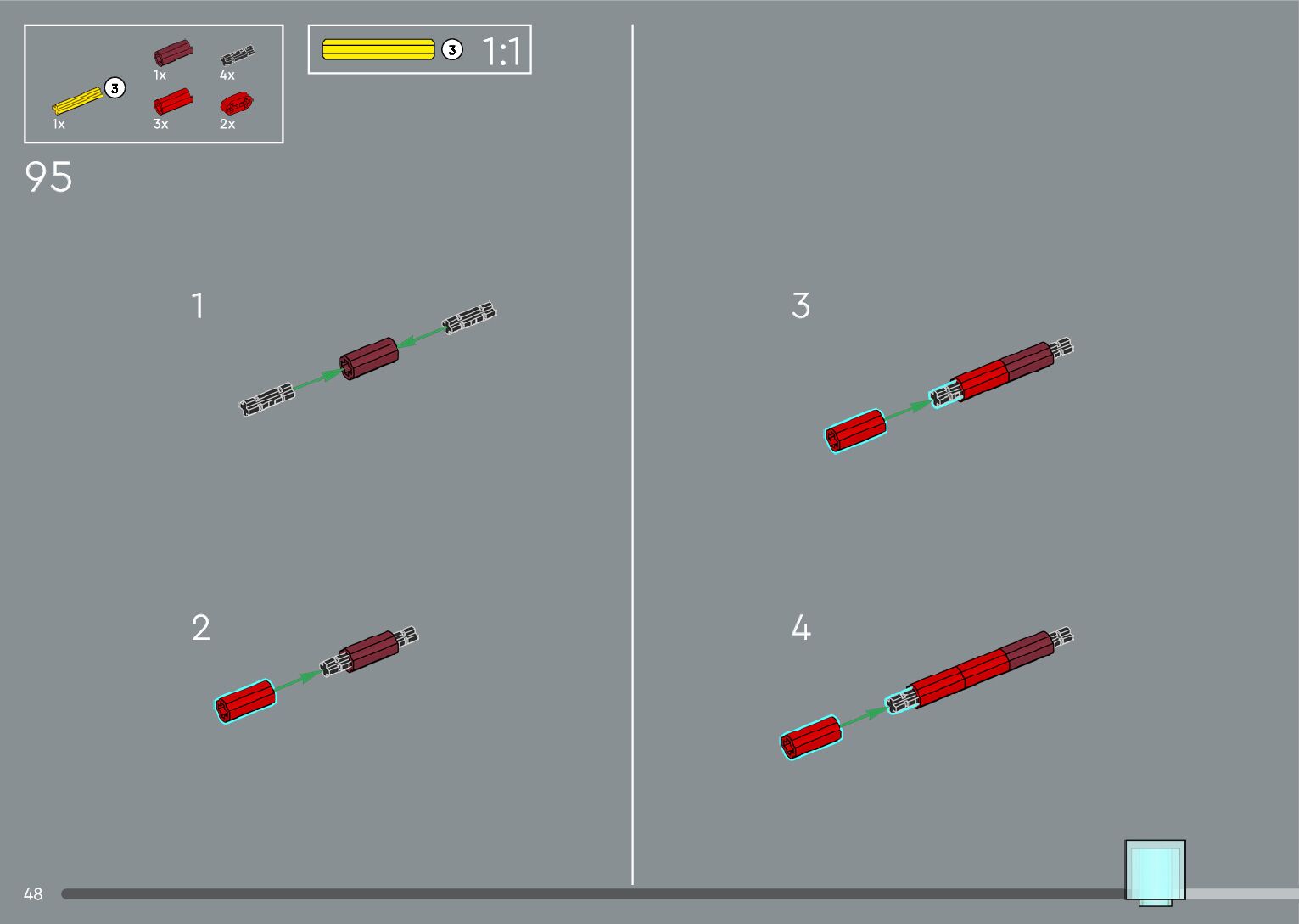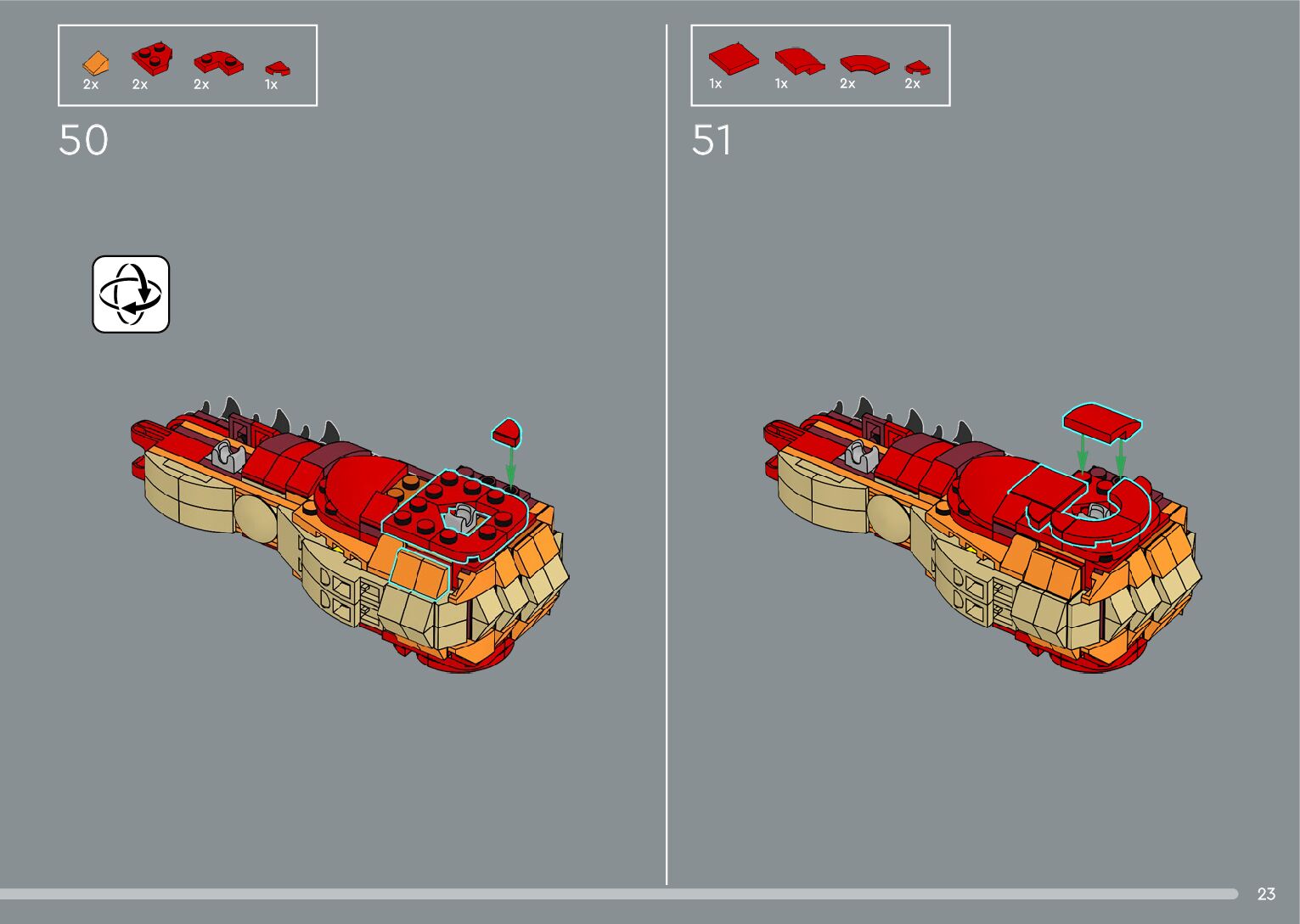 The assembly guide is prepared in a very understandable way for children and adult LEGO enthusiasts. A total of 556 picture galleries are shown, explaining the step-by-step construction stages for 4 different structures.