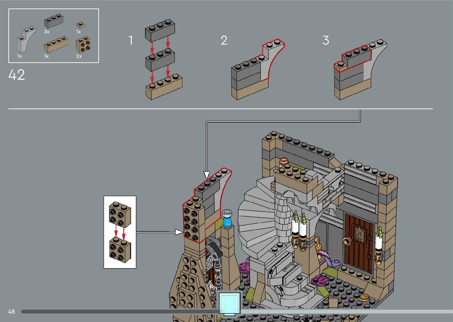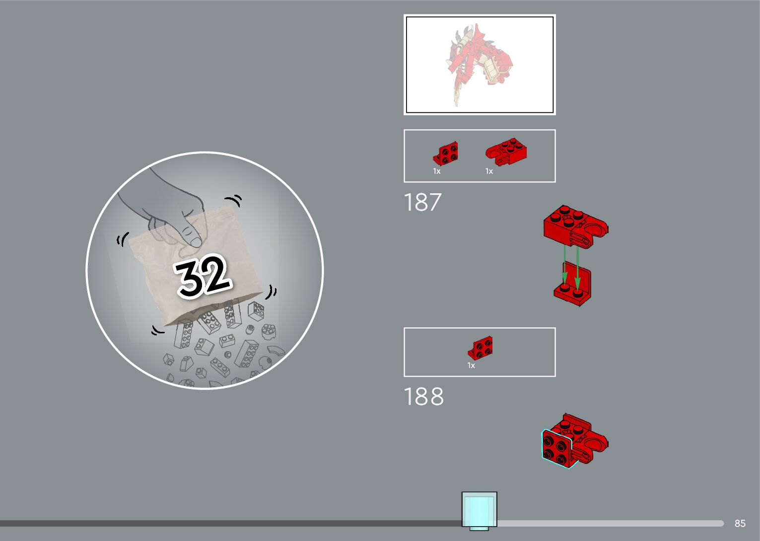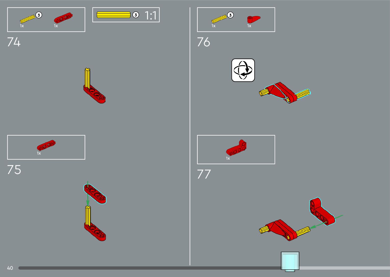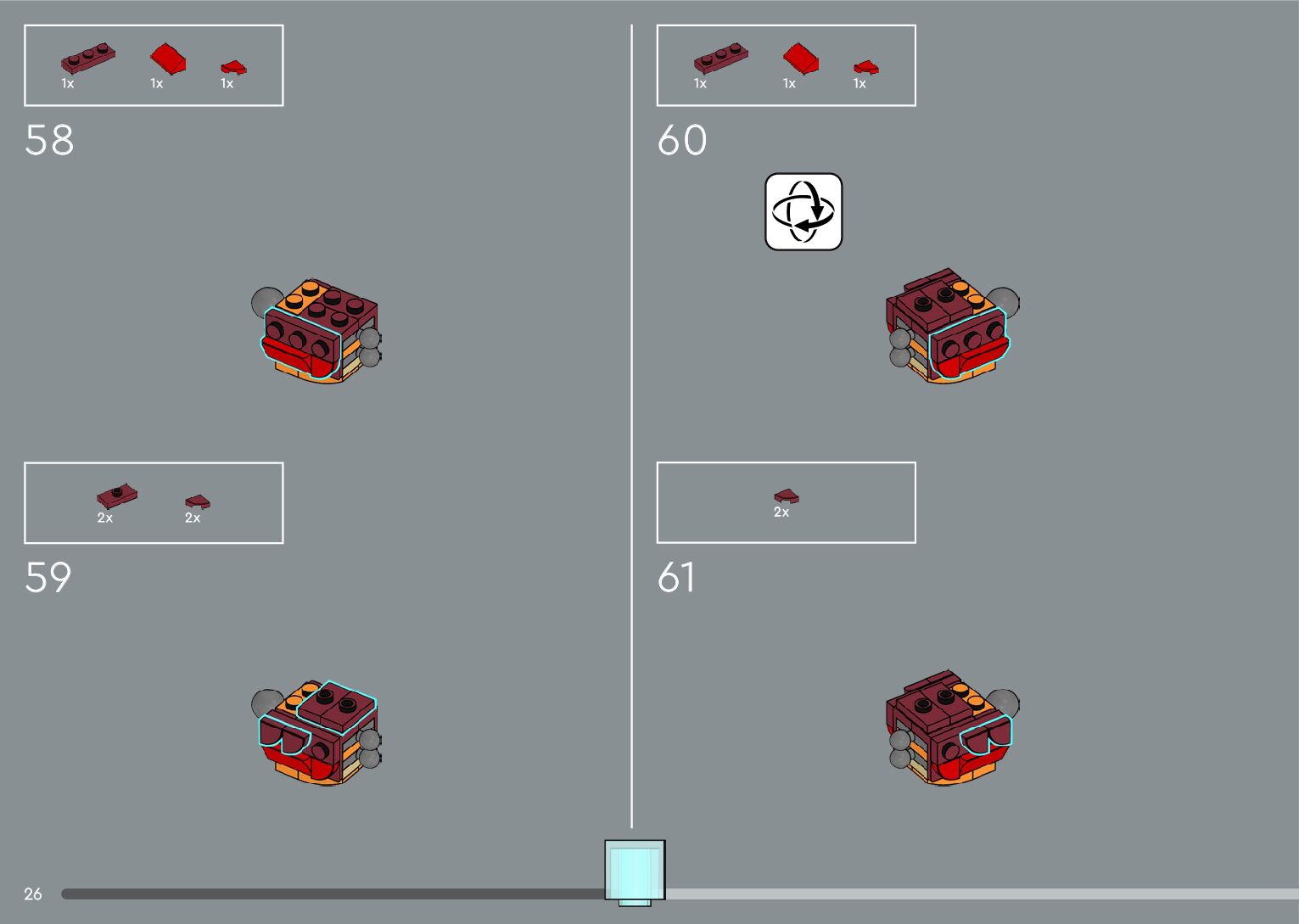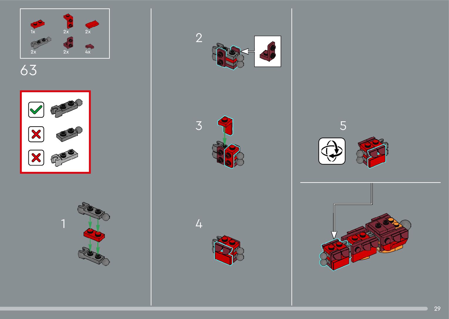 The assembly guide is prepared in a very understandable way for children and adult LEGO enthusiasts. A total of 556 picture galleries are shown, explaining the step-by-step construction stages for 4 different structures.