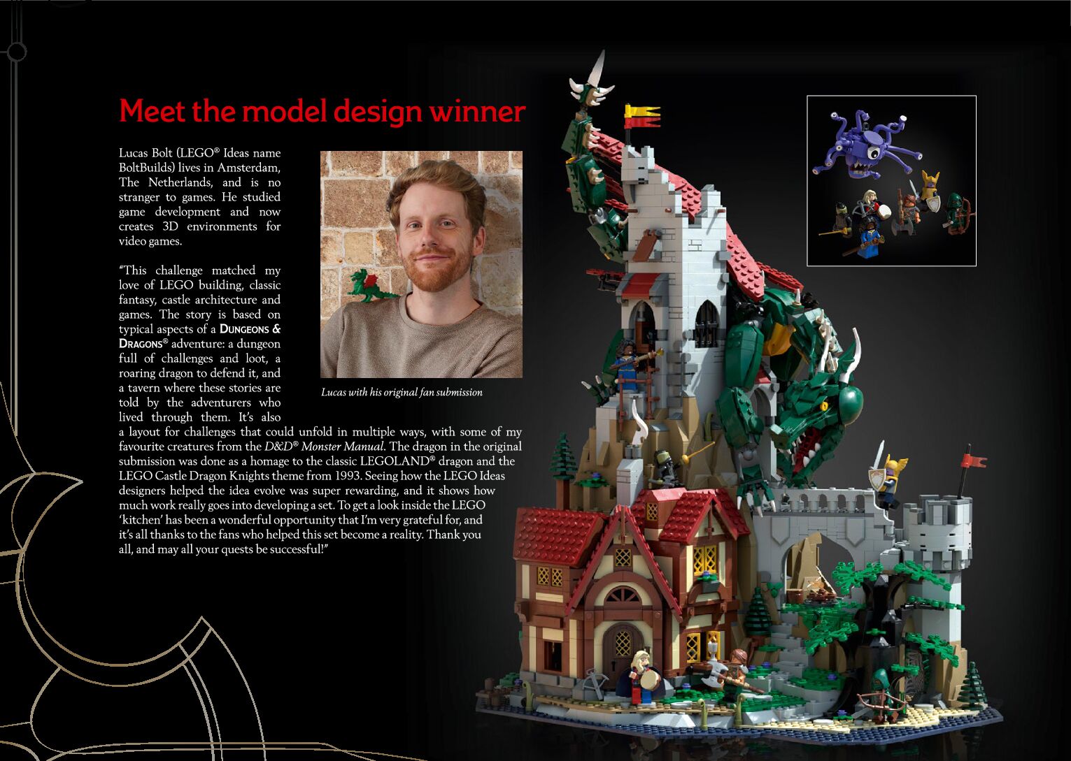 On this page you can find the original construction manual for the LEGO 21348 set. With the assembly manual you can easily learn how to build the 21348 Dungeons & Dragons: Red Dragon's Tale step by step. The set was released in 2024.