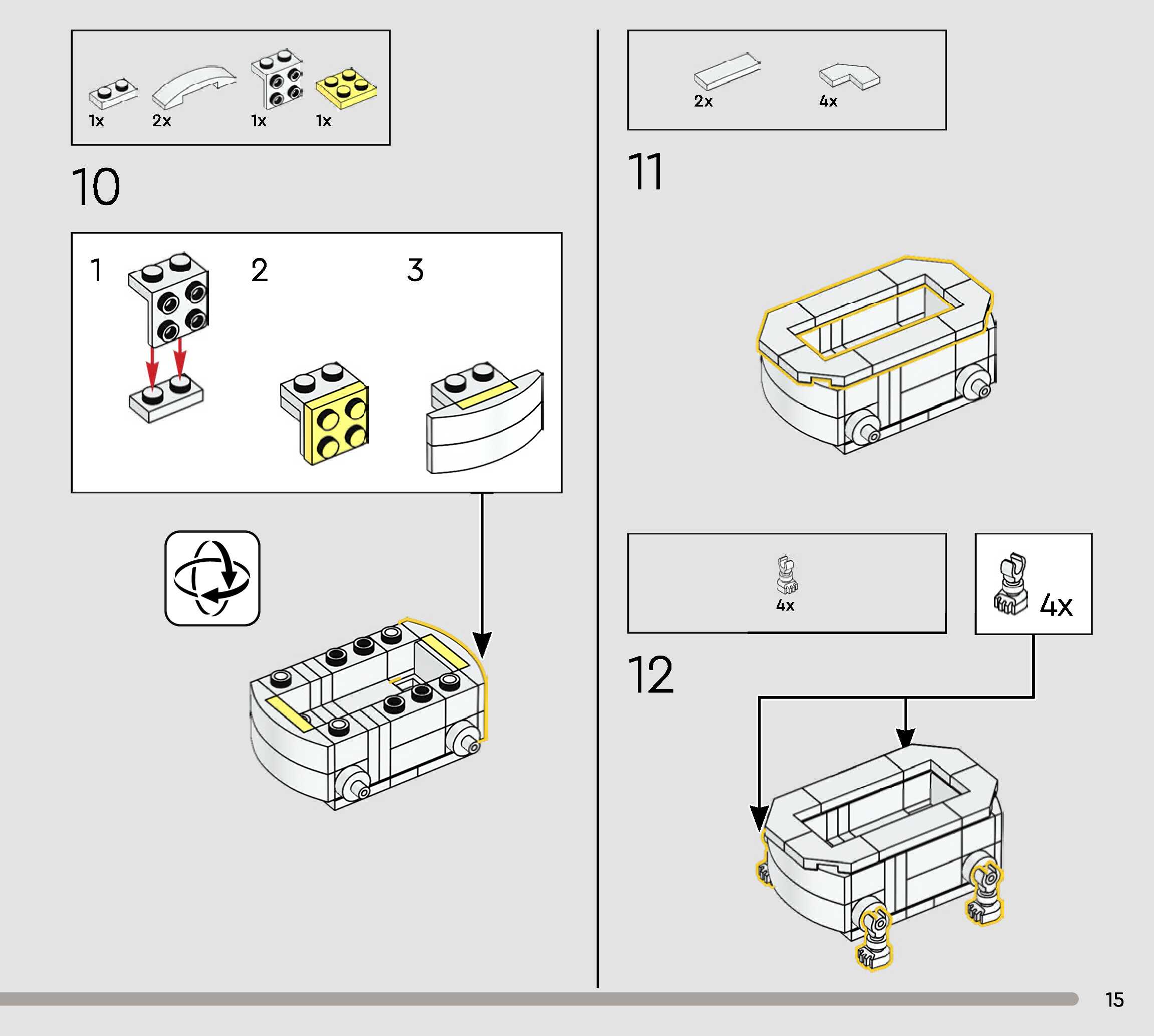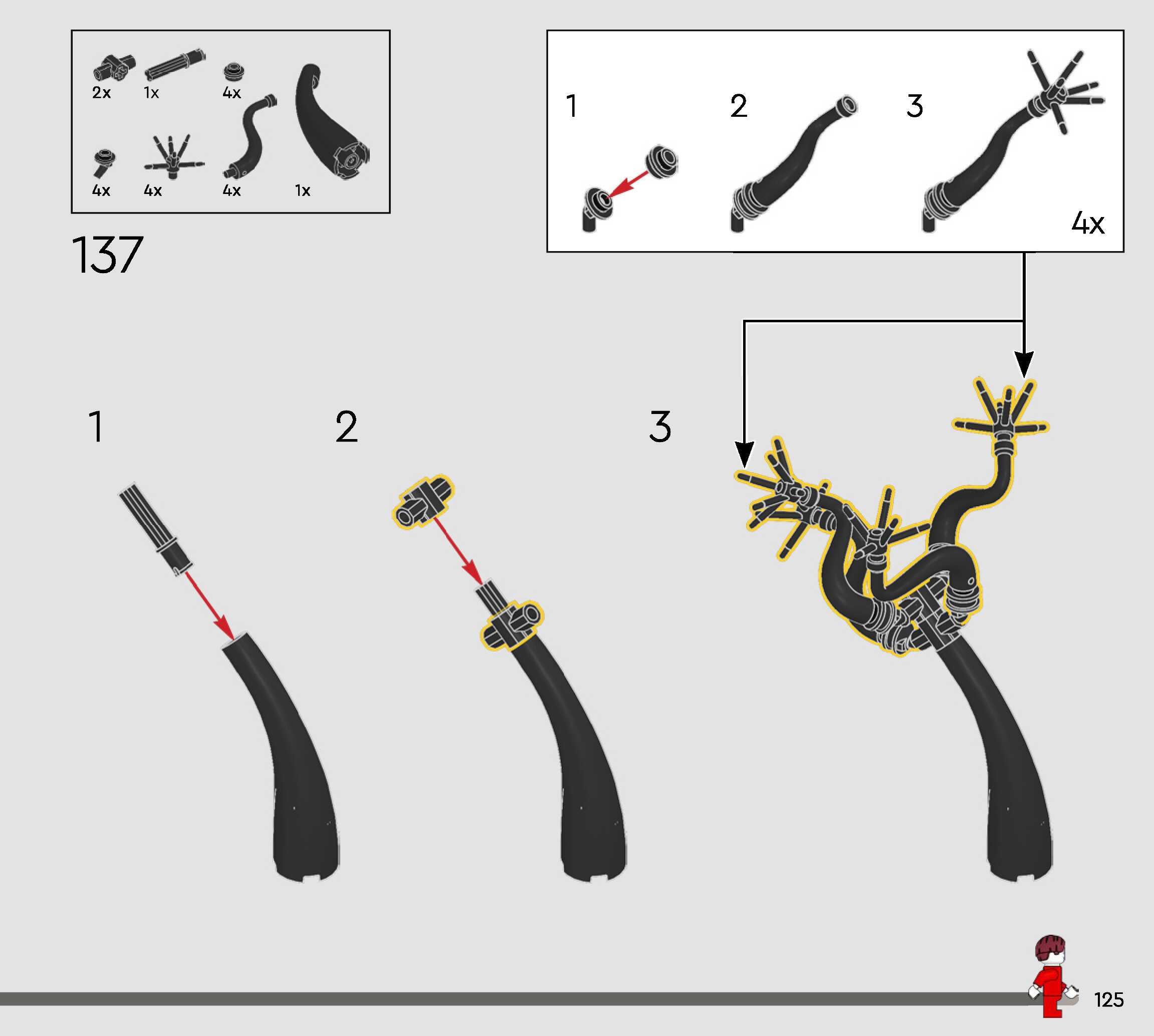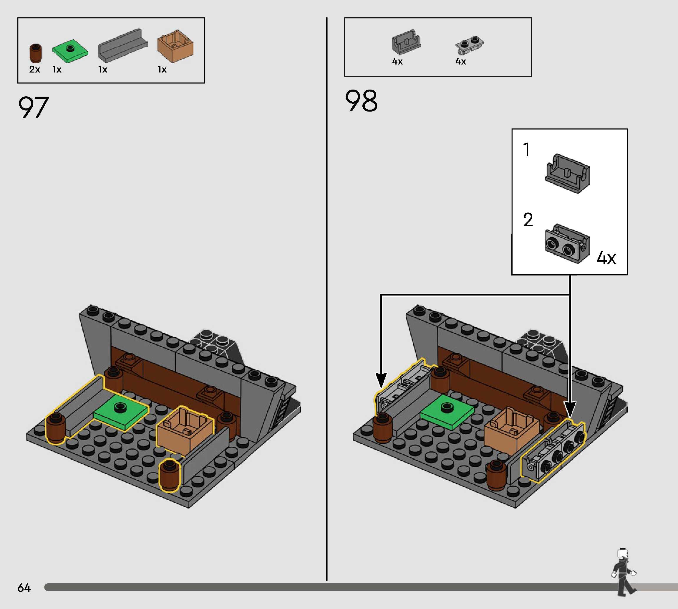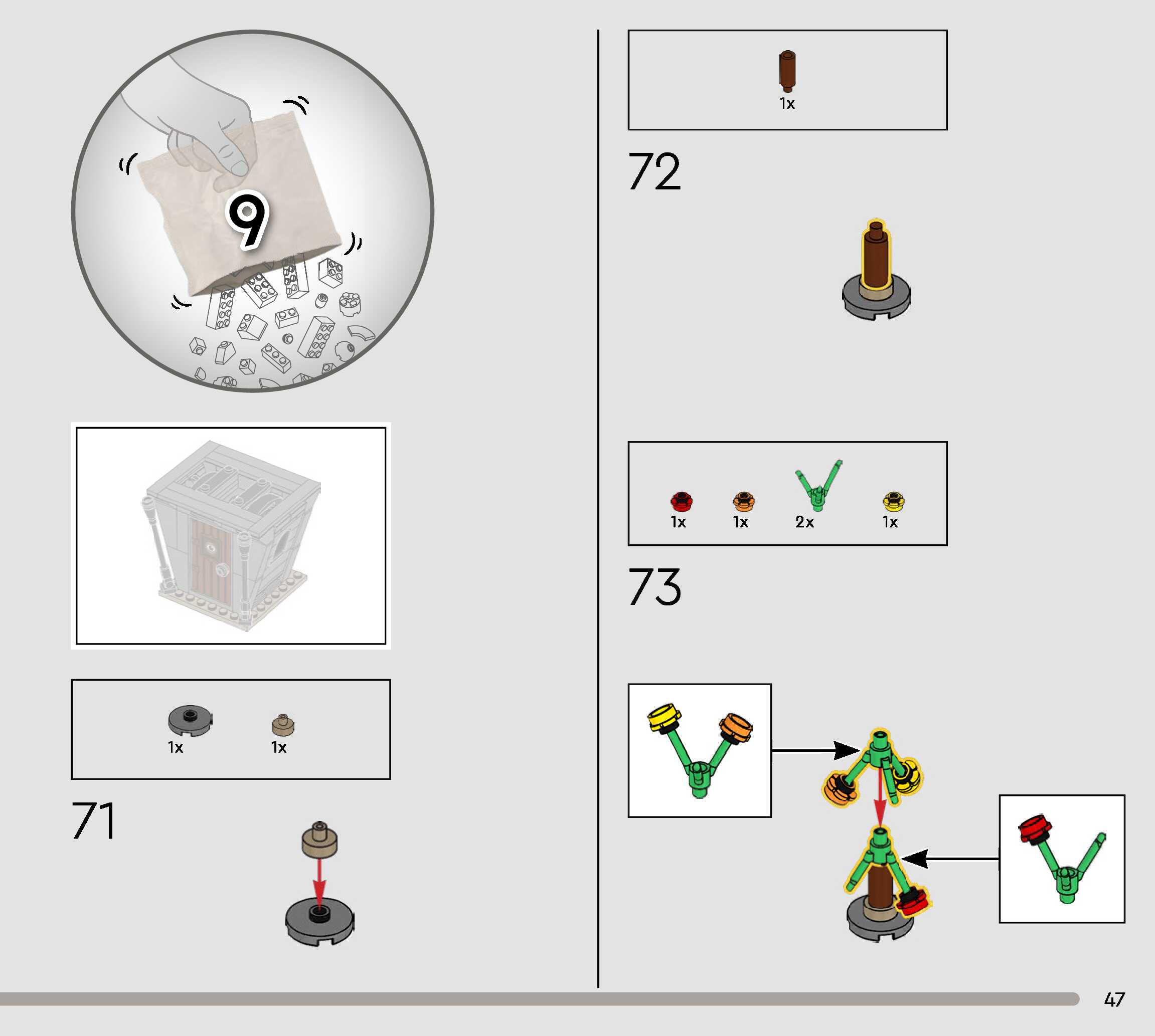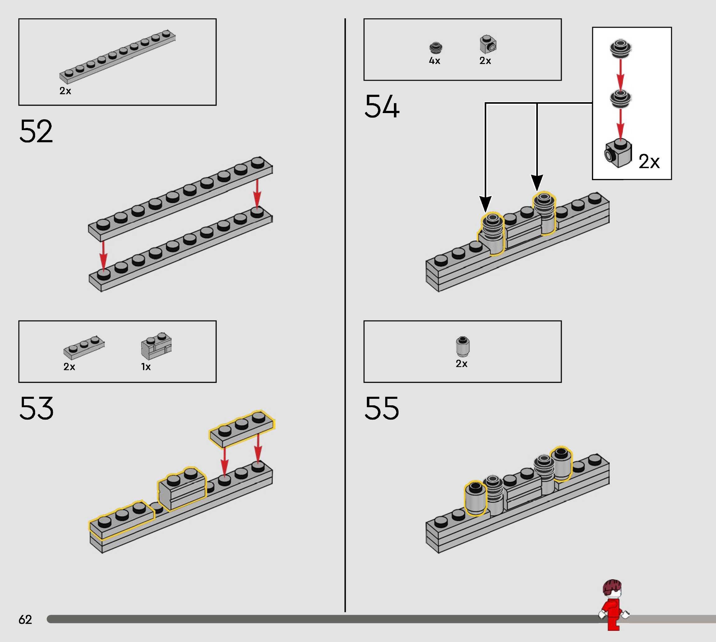 The assembly guide is prepared in a very understandable way for children and adult LEGO enthusiasts. A total of 332 picture galleries are shown, explaining the step-by-step construction stages for 3 different structures.