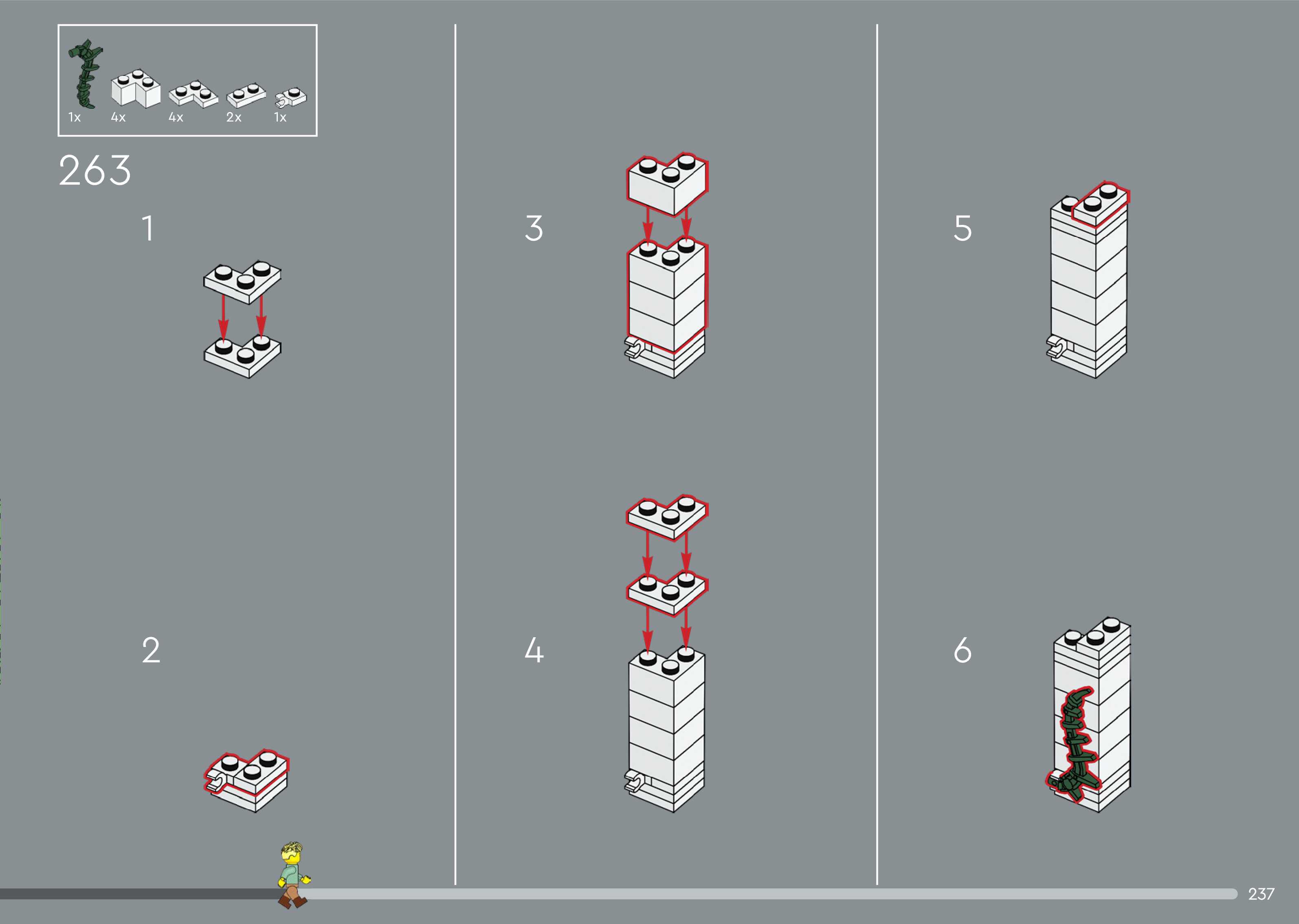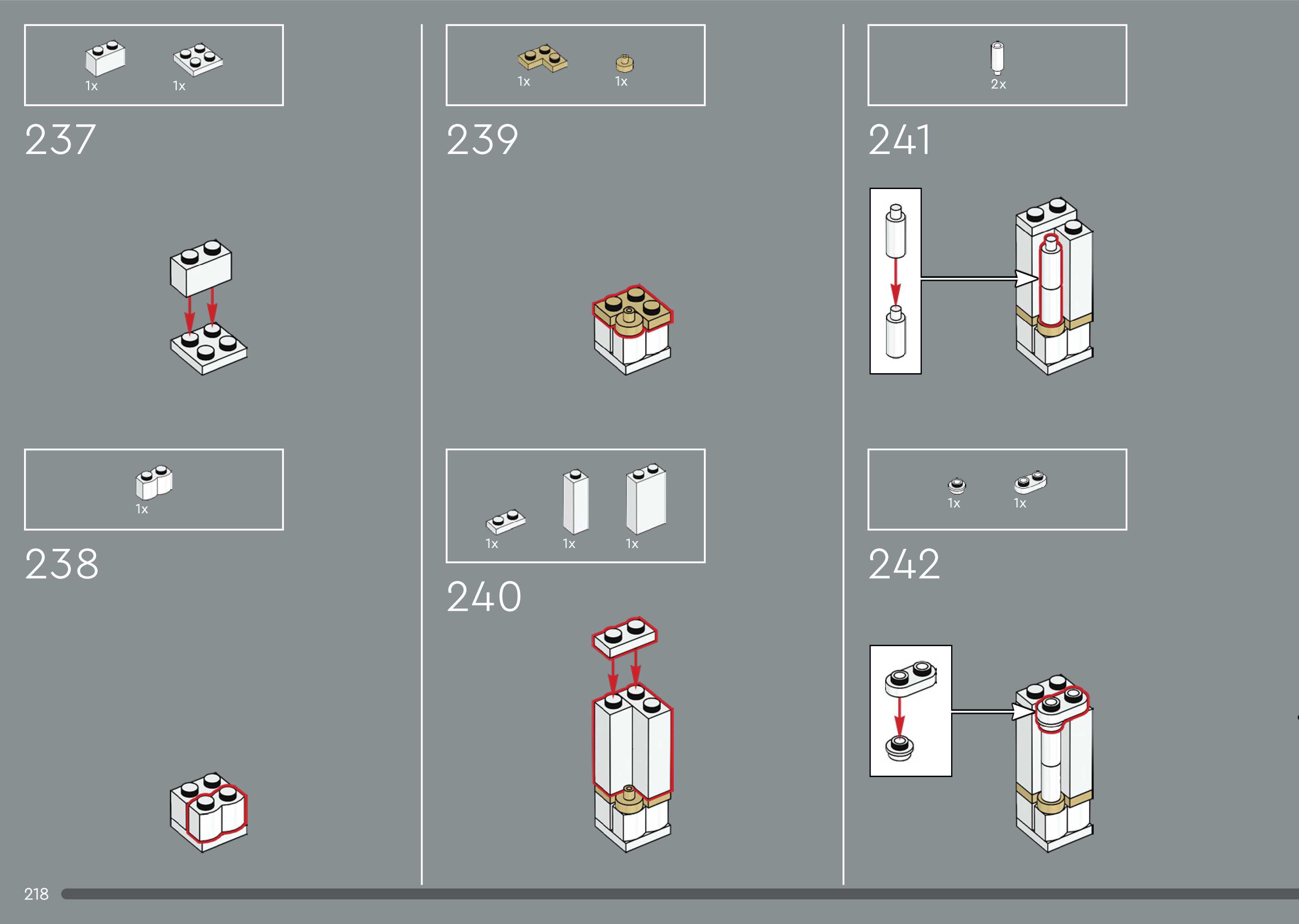 The assembly guide is prepared in a very understandable way for children and adult LEGO enthusiasts. A total of 396 picture galleries are shown, explaining the step-by-step construction stages for 1 different structures.