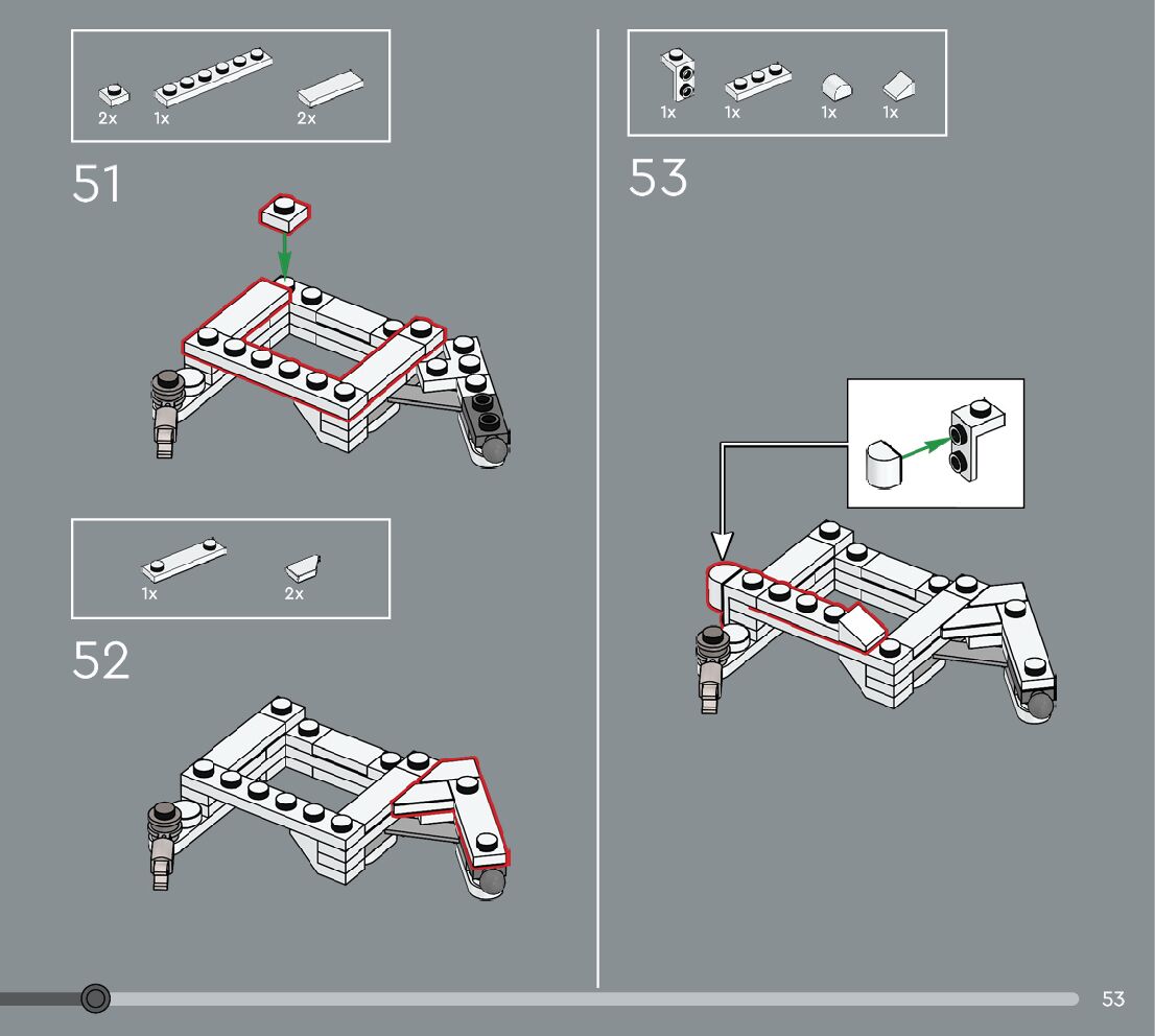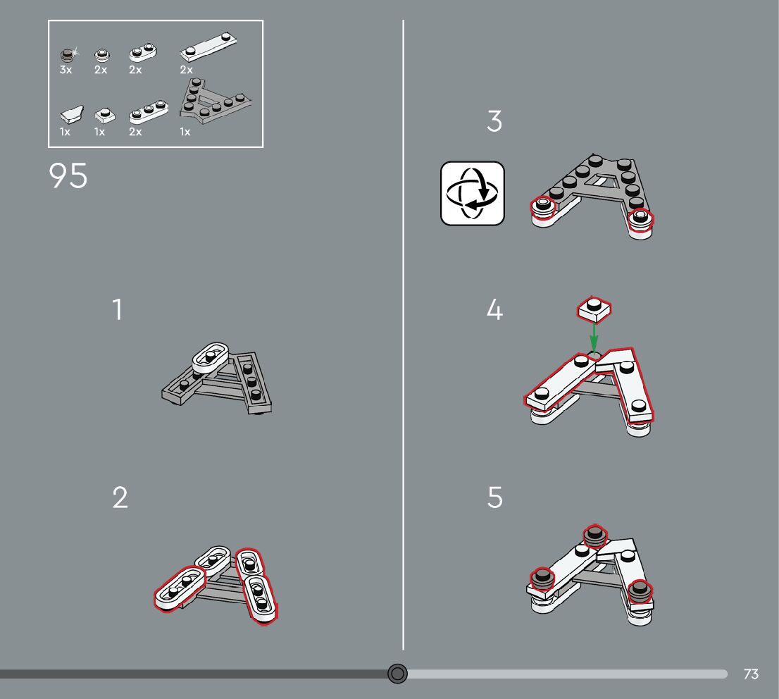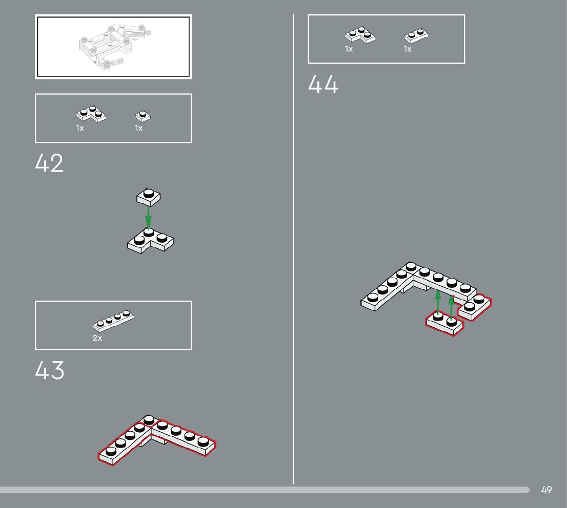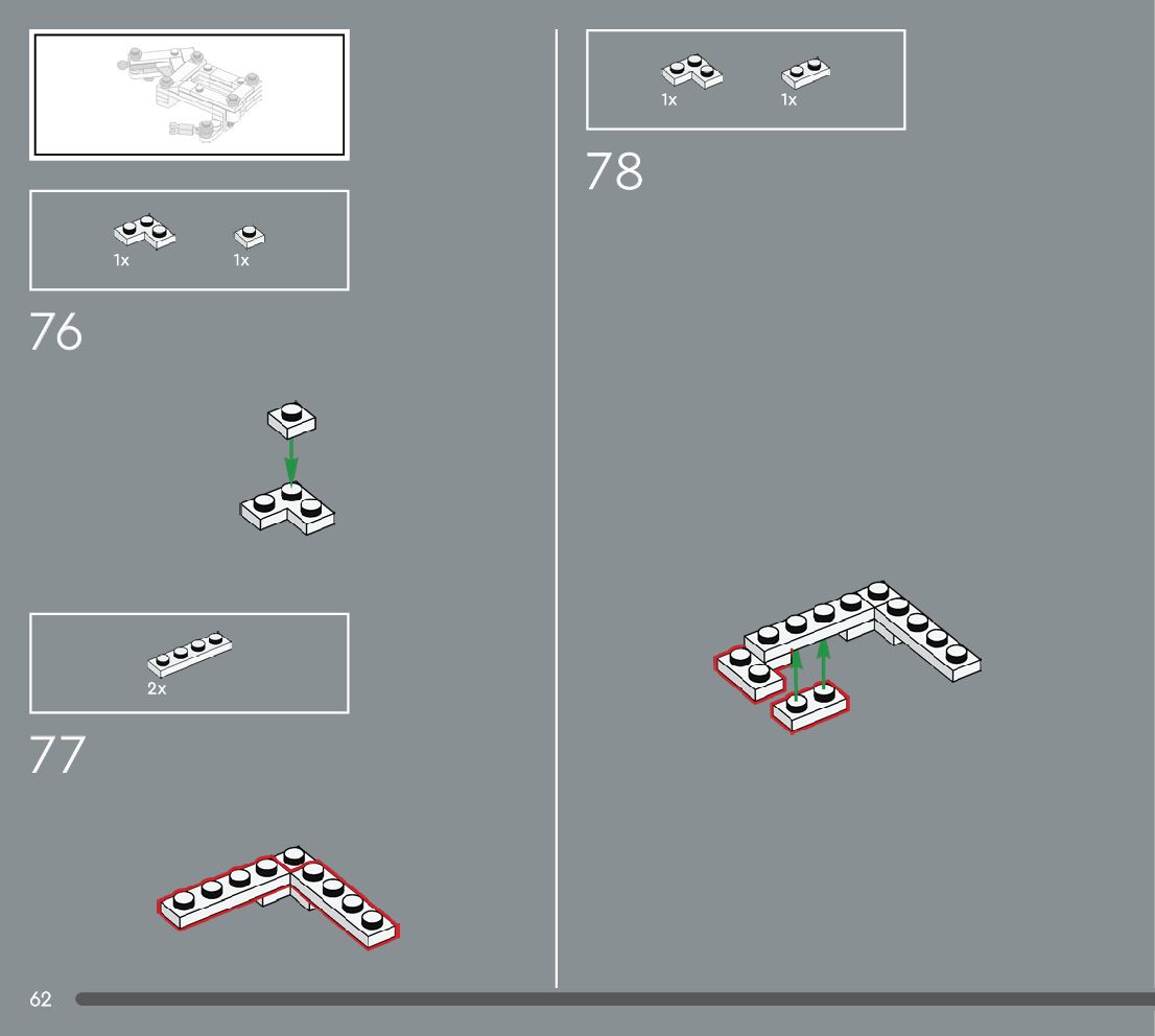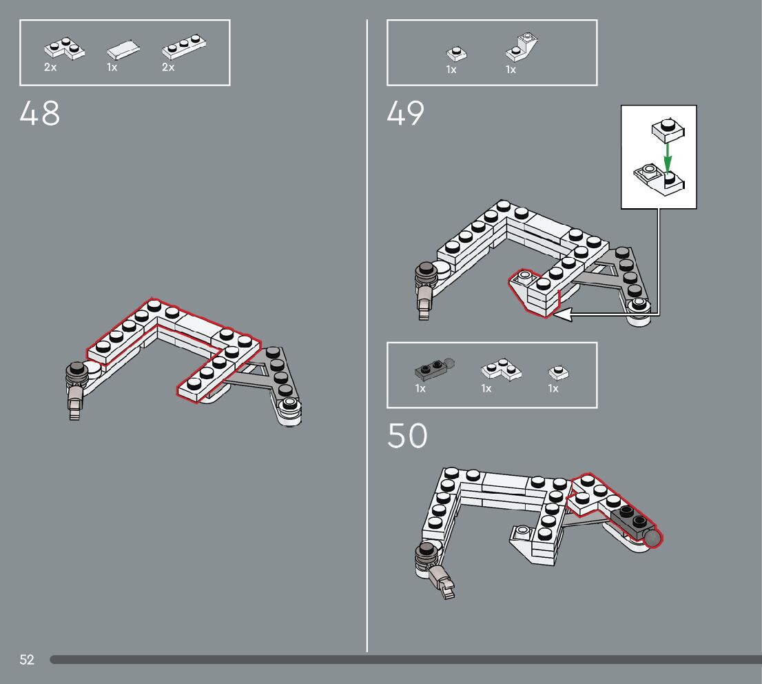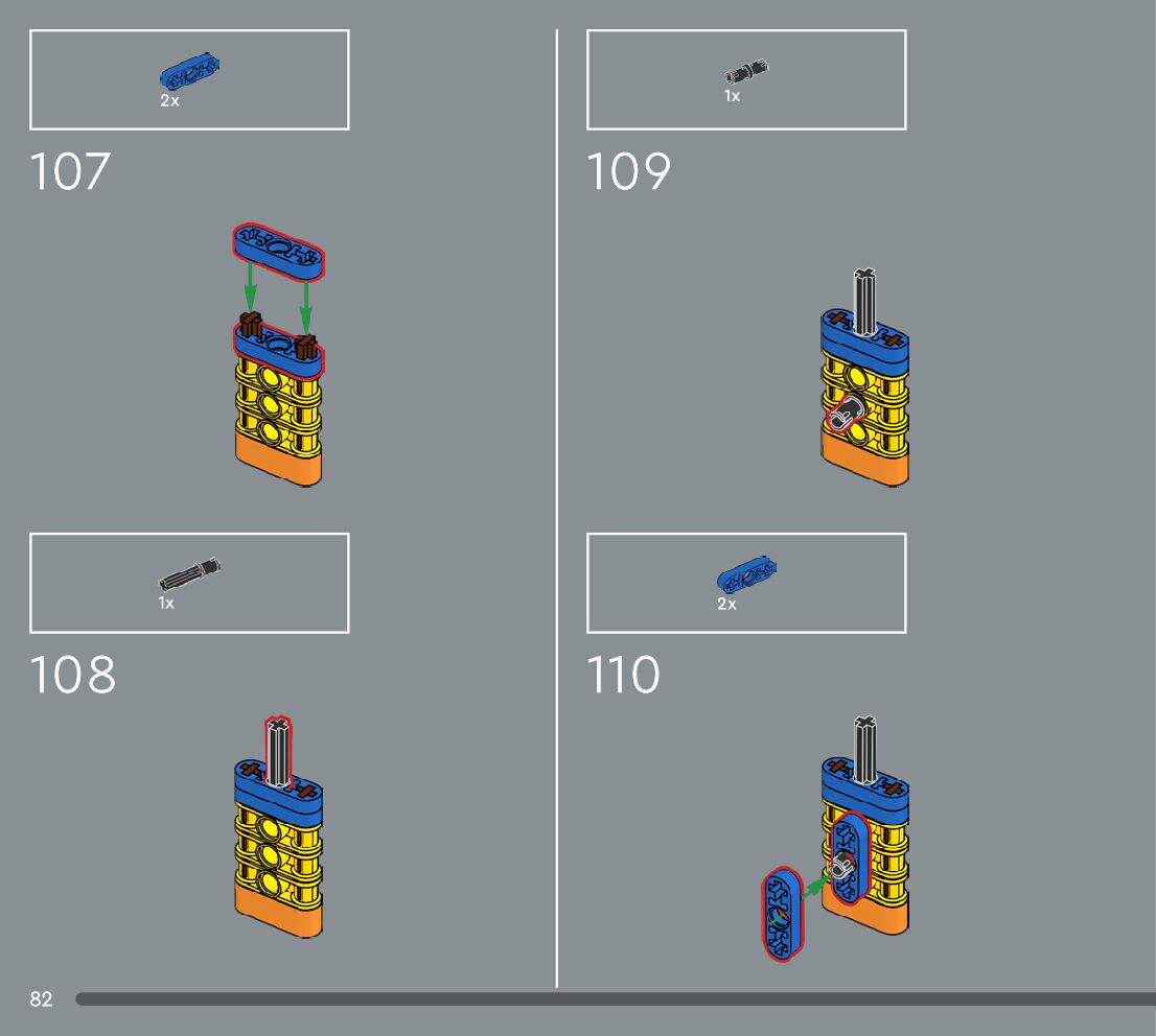 The assembly guide is prepared in a very understandable way for children and adult LEGO enthusiasts. A total of 100 picture galleries are shown, explaining the step-by-step construction stages for 1 different structures.