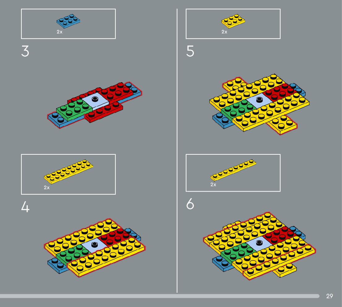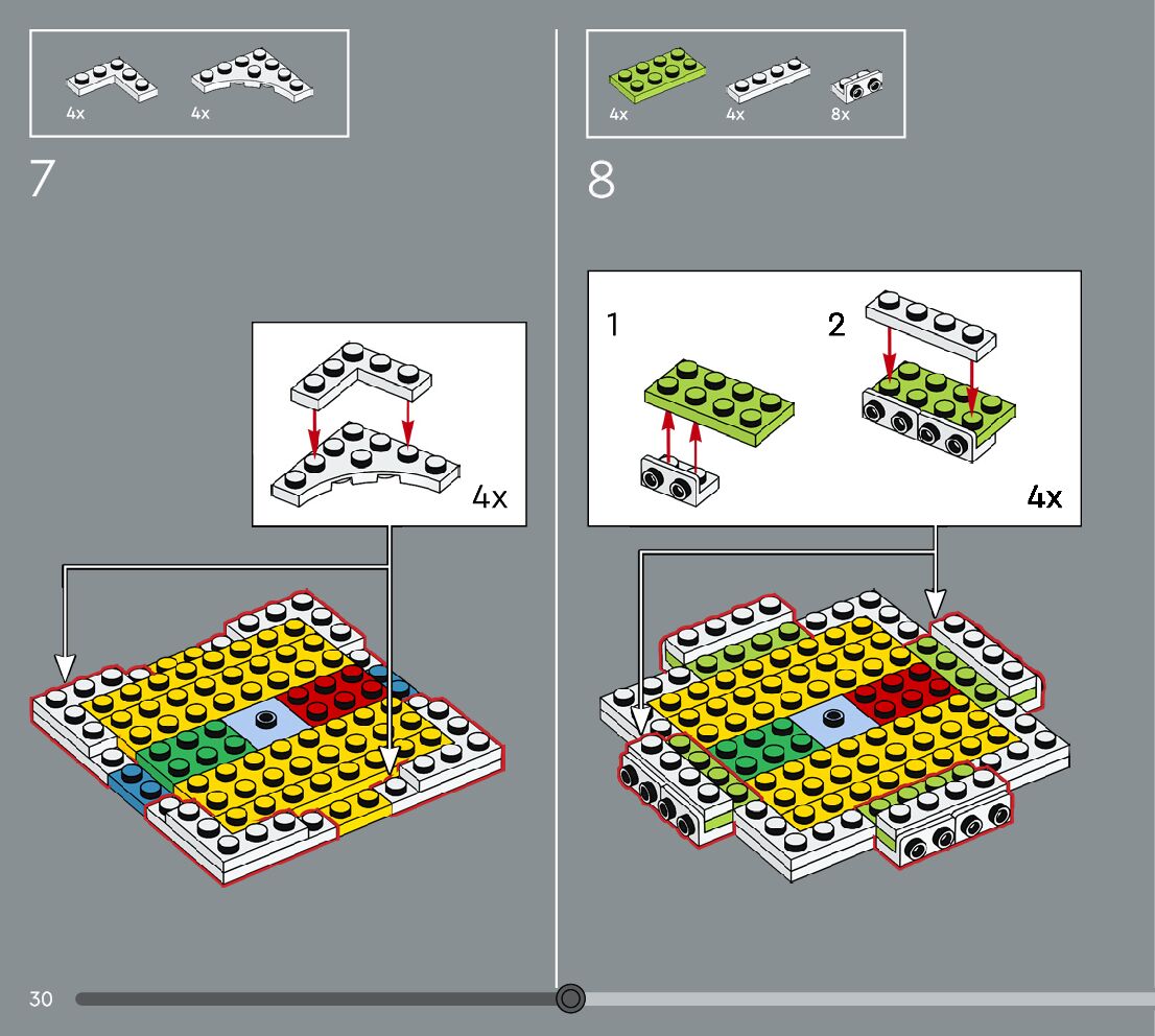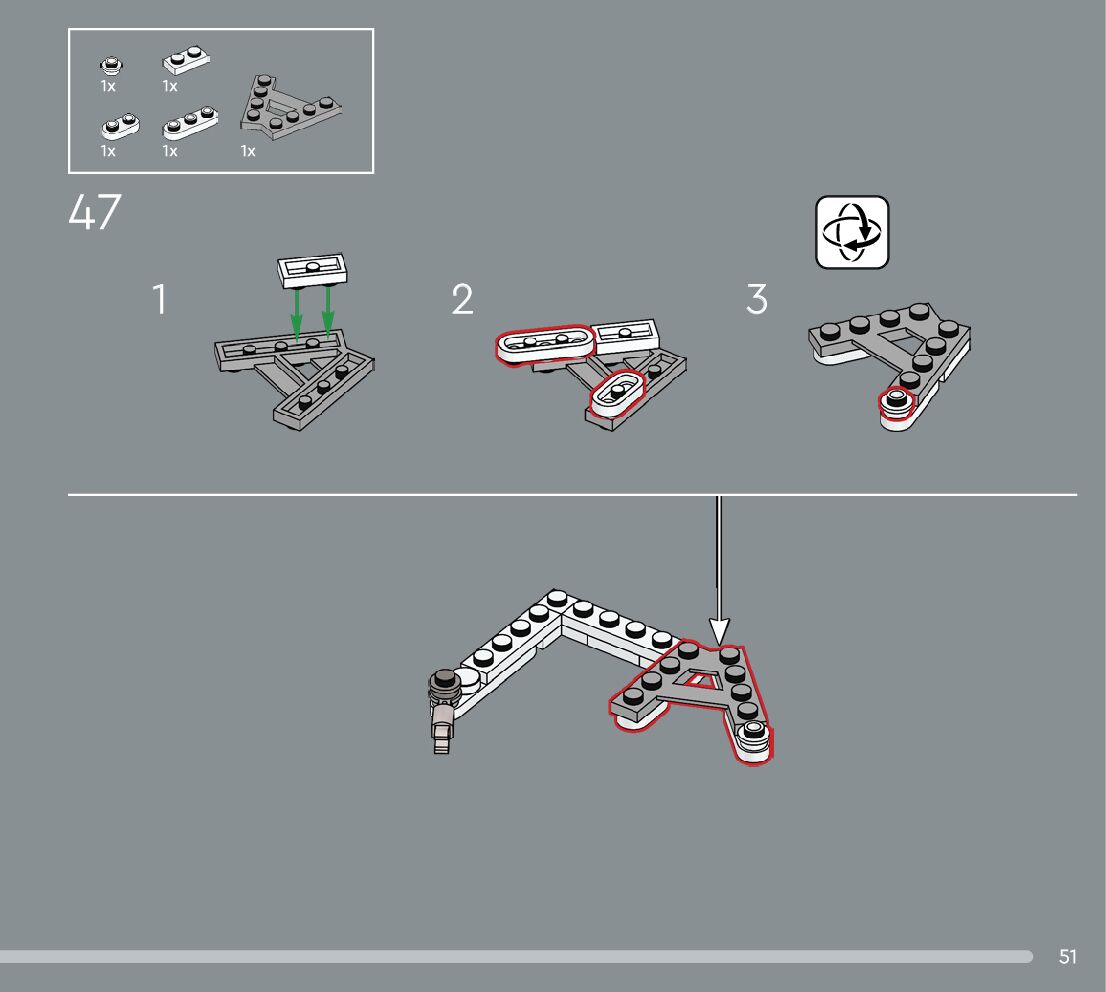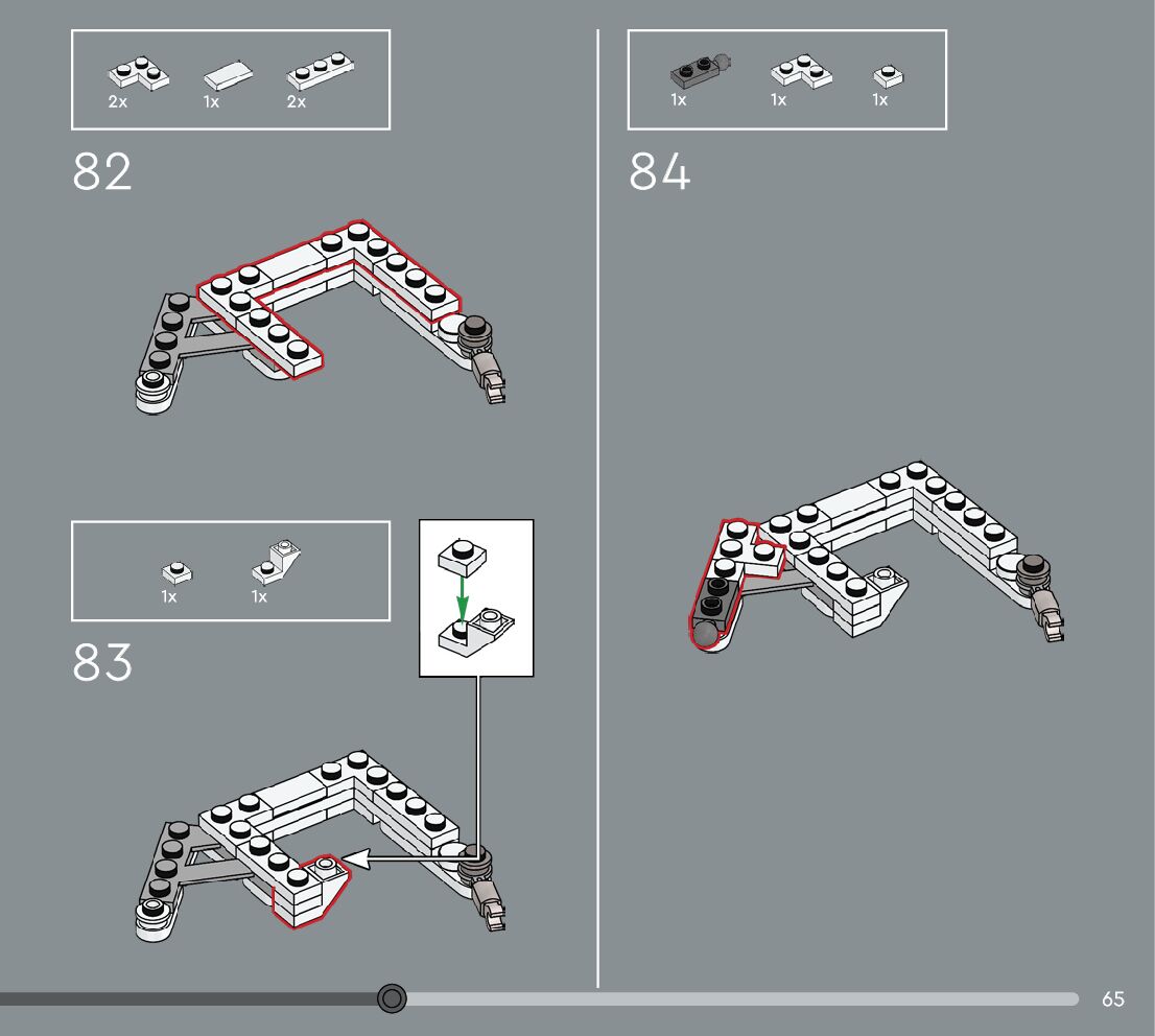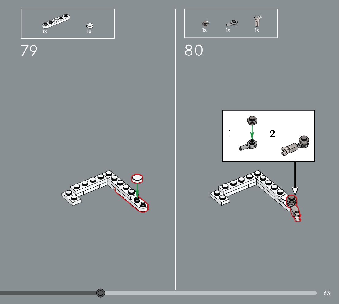 The assembly guide is prepared in a very understandable way for children and adult LEGO enthusiasts. A total of 100 picture galleries are shown, explaining the step-by-step construction stages for 1 different structures.