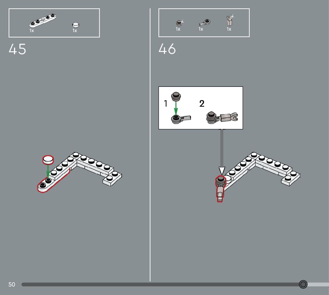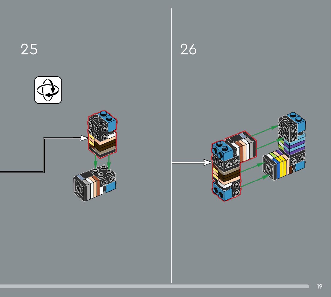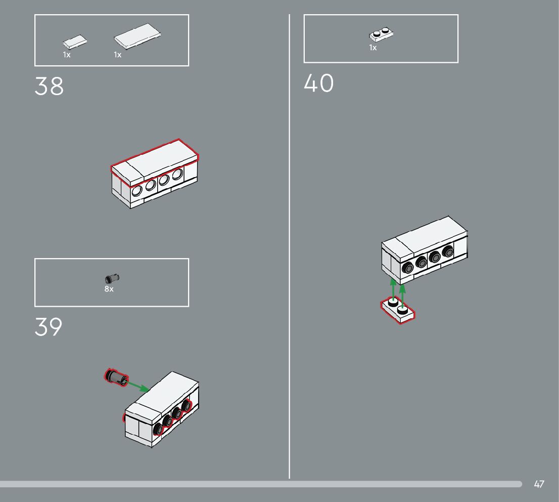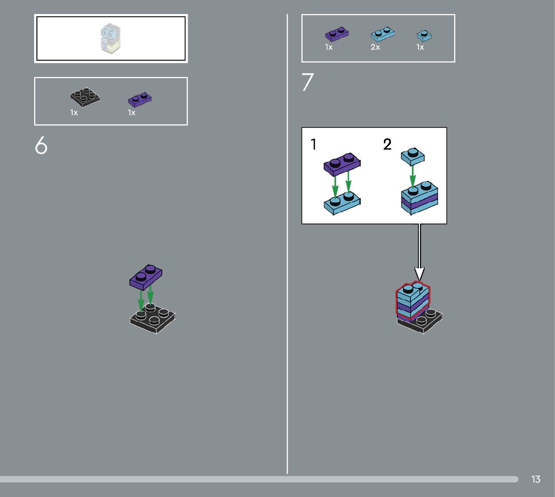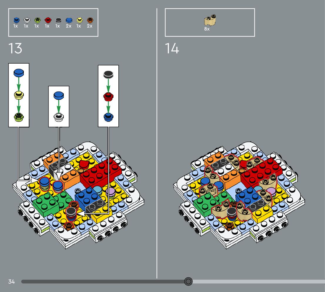 The assembly guide is prepared in a very understandable way for children and adult LEGO enthusiasts. A total of 100 picture galleries are shown, explaining the step-by-step construction stages for 1 different structures.
